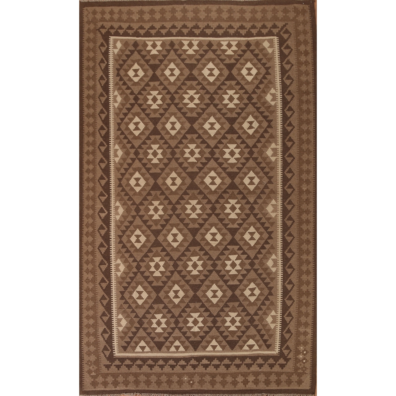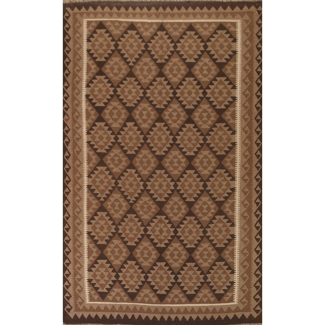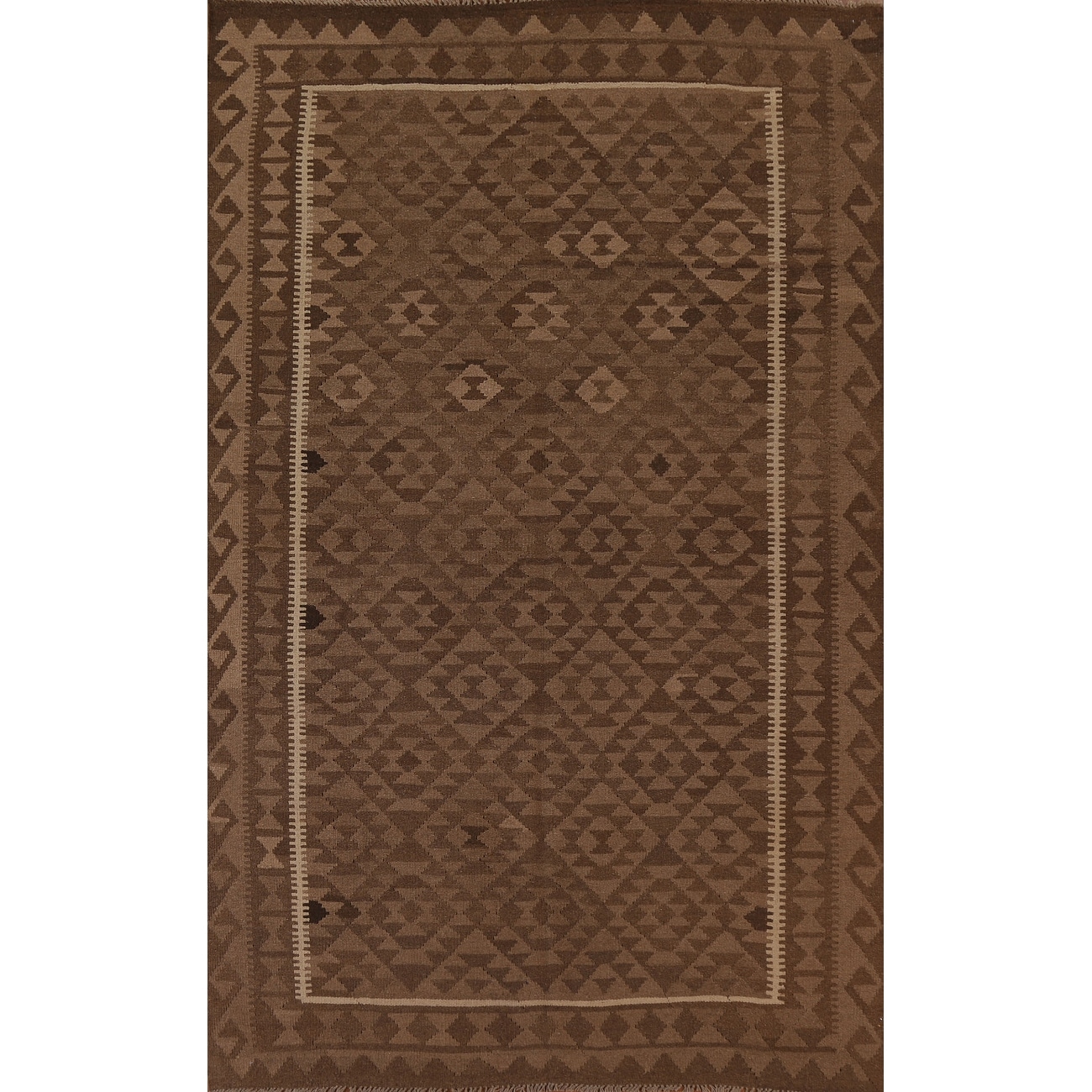 Brown Tribal Geometric Kilim Oriental Area Rug Flat-woven Wool Carpet - 5'7" x 8'3"