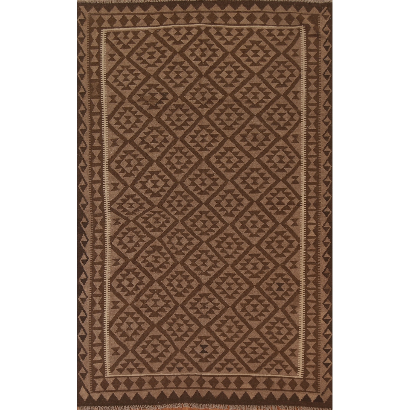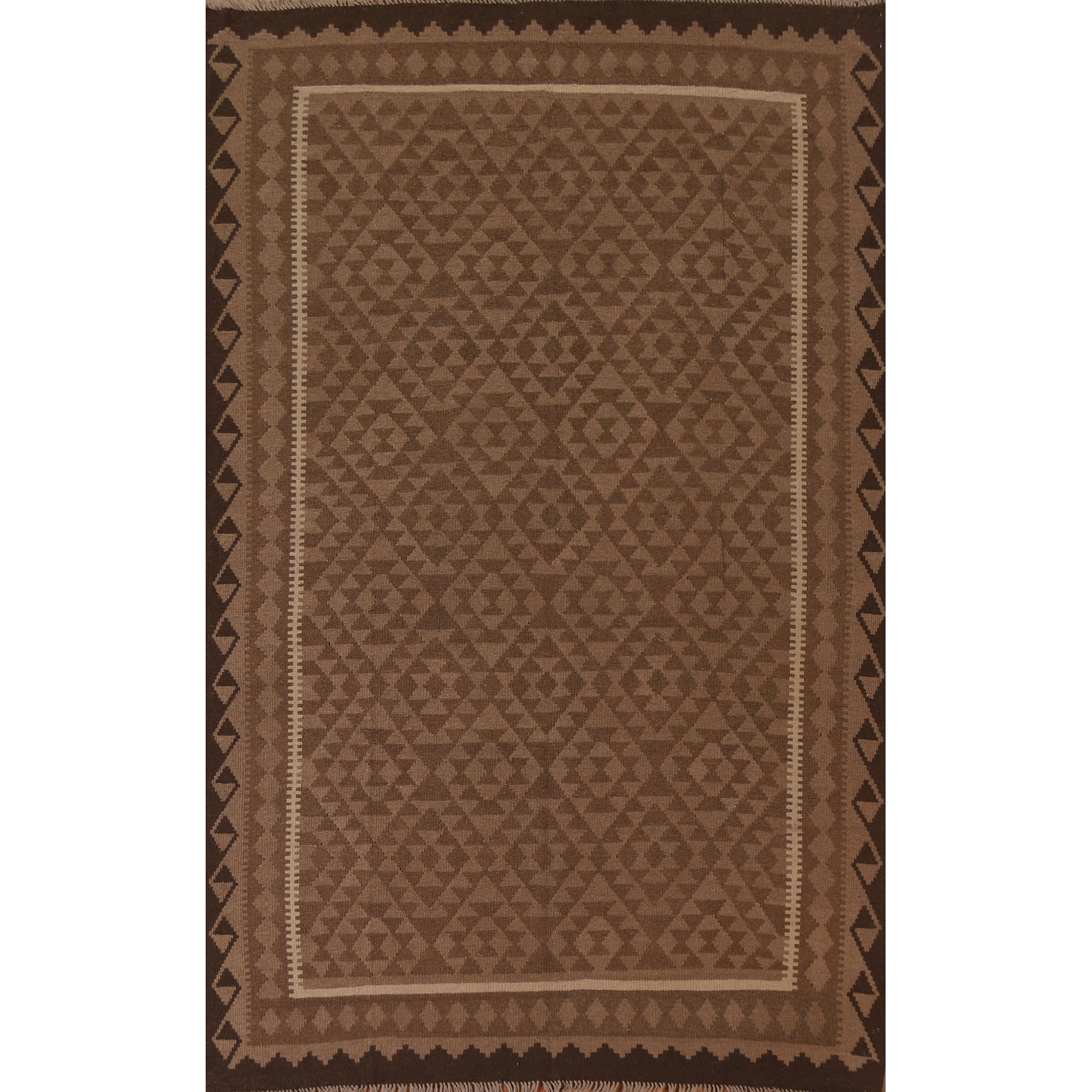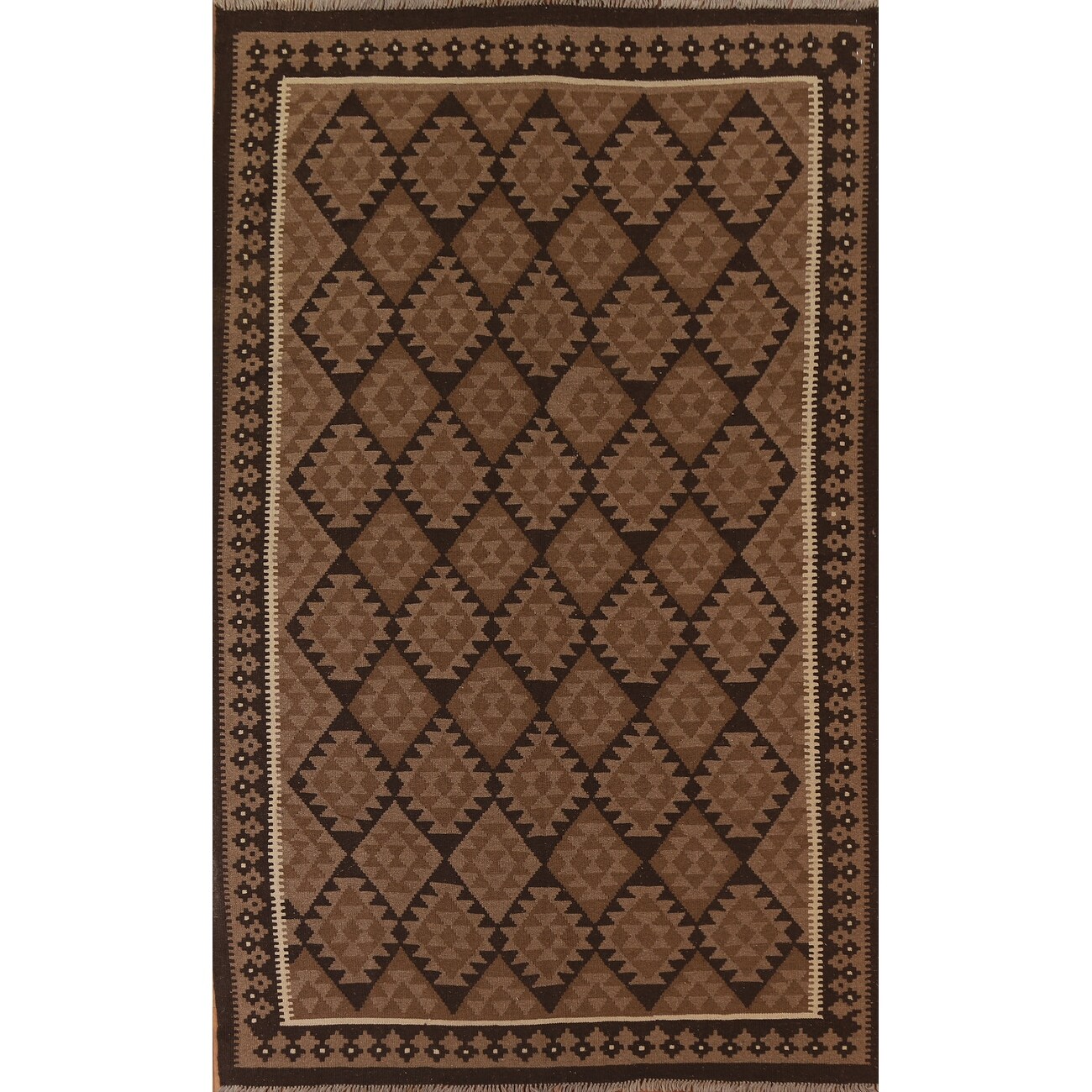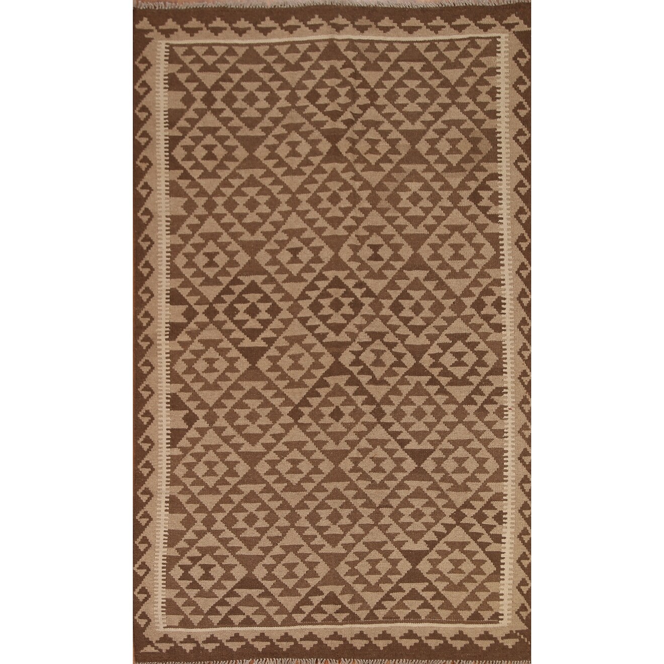 Brown Tribal Geometric Kilim Oriental Area Rug Flat-woven Wool Carpet - 5'7" x 8'3"