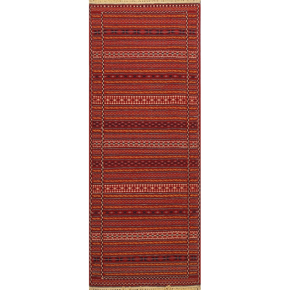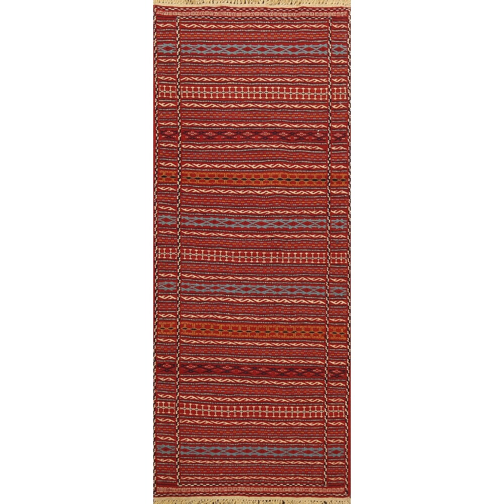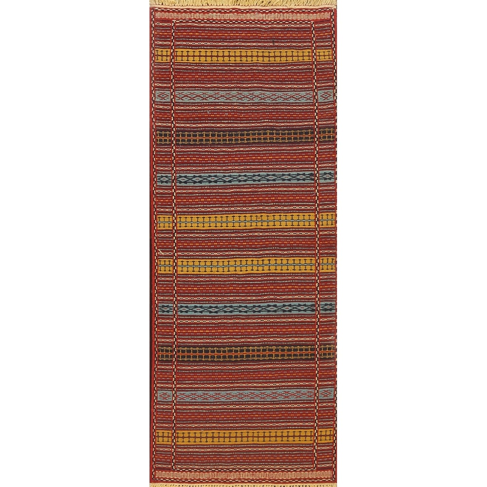Tribal Kilim Sirjan Persian Striped Runner Rug Flat-woven Wool Carpet - 2'5" x 6'9"