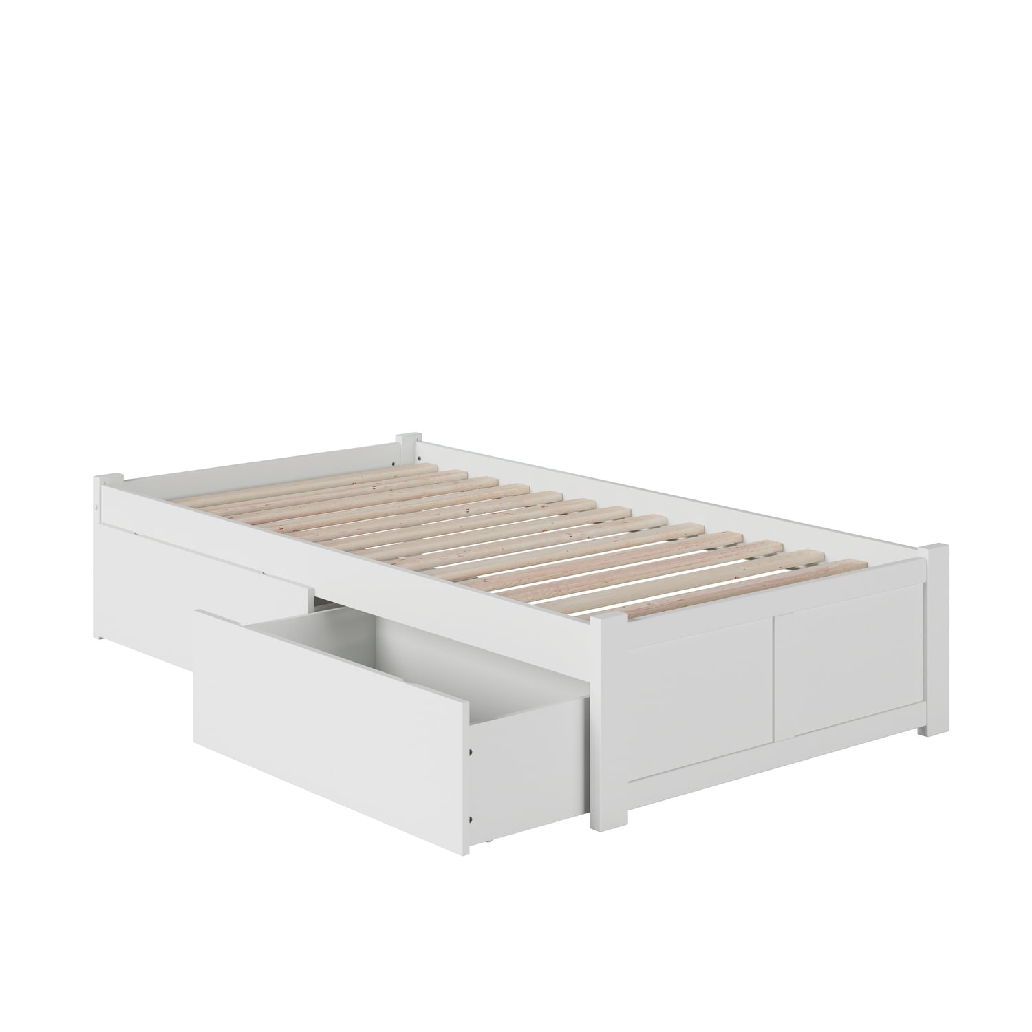 Concord Twin XL Platform Bed with Flat Panel Foot Board and 2 Urban Bed Drawers in White