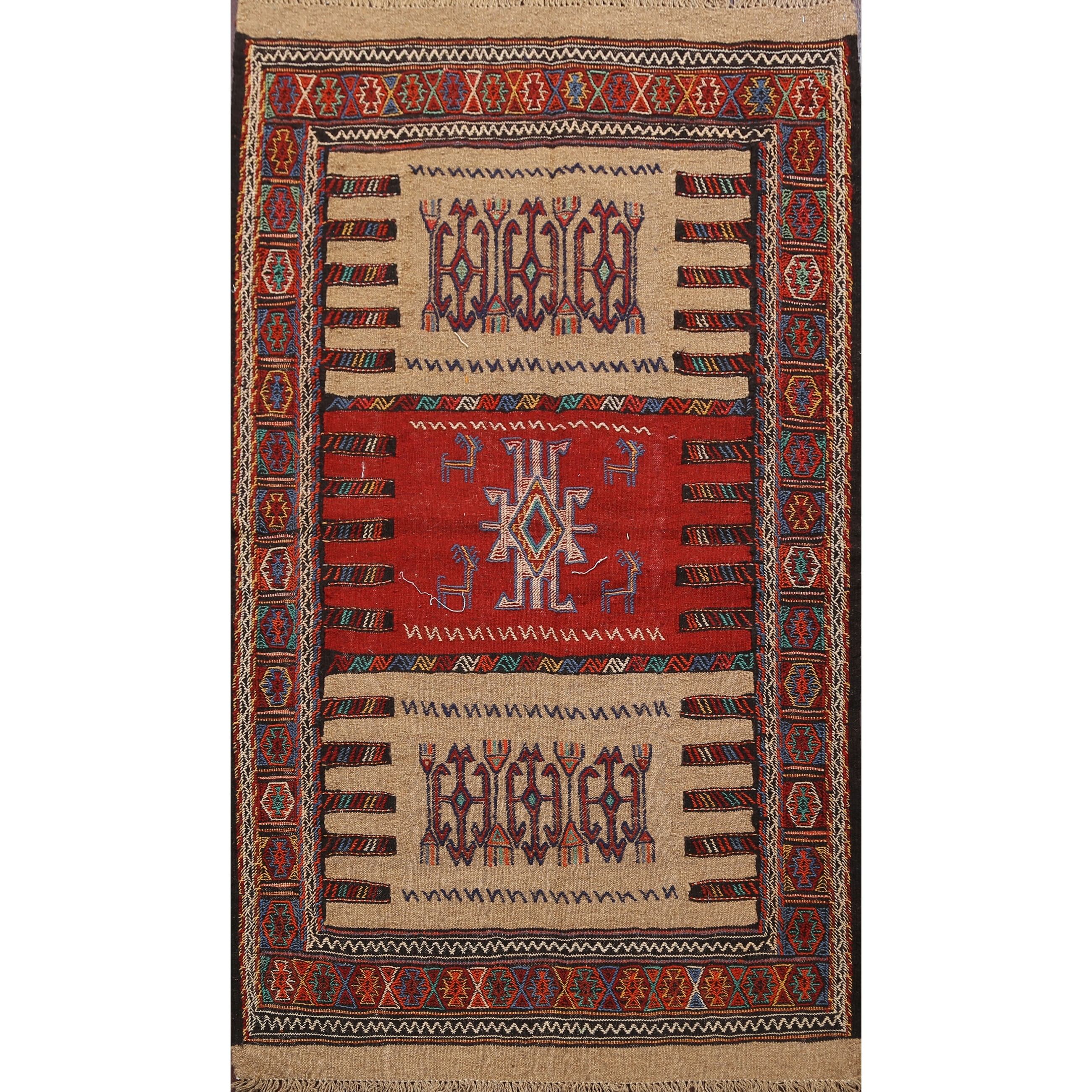 Tribal Sumak Kilim Persian Foyer Size Area Rug Flat-Woven Wool Carpet - 3'8" x 5'7"