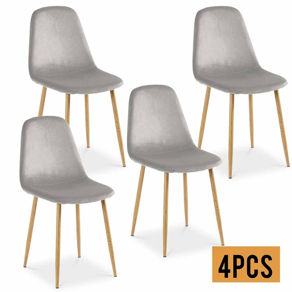 4 Pieces Velvet Upholstered Dining Chairs with Four Wooden Legs
