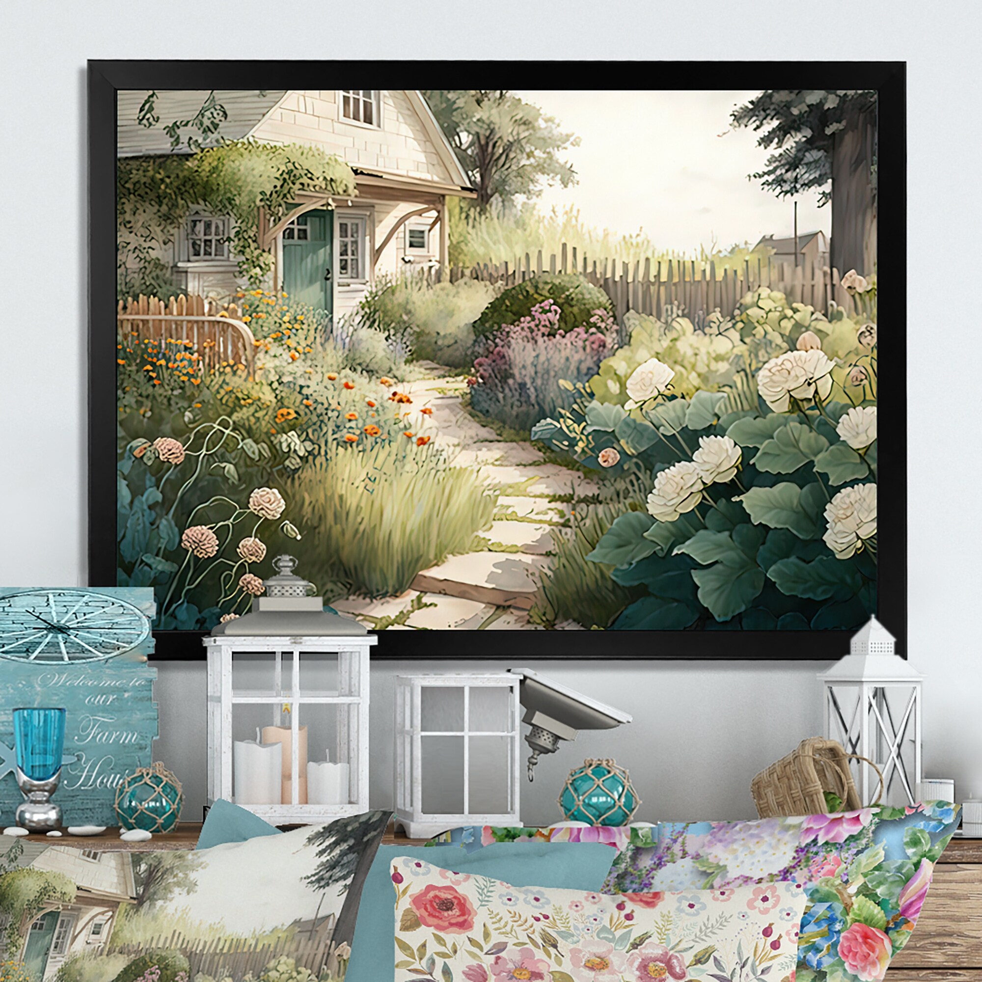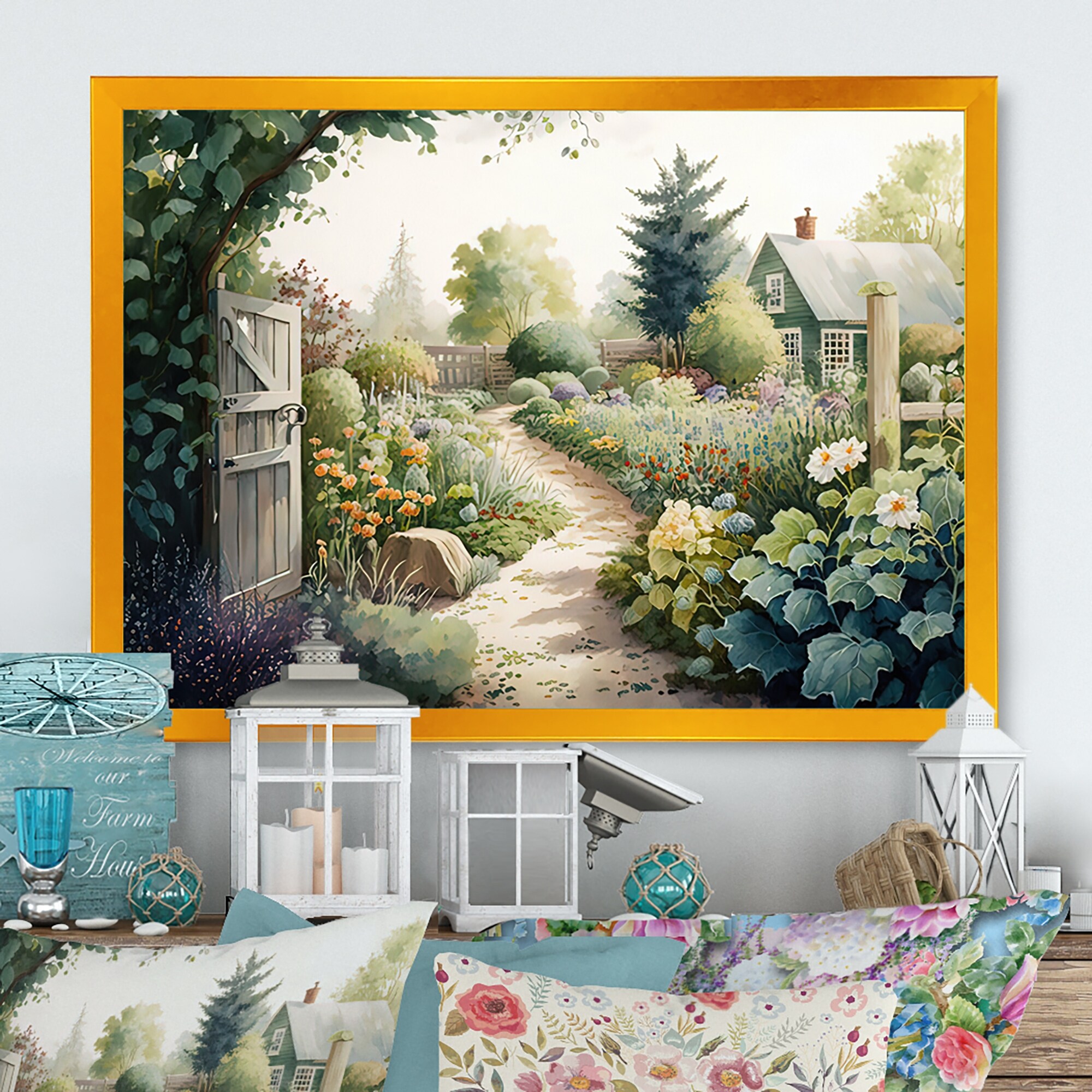Designart "Fresh Garden At the Cottage I" Landscape Framed Art Print