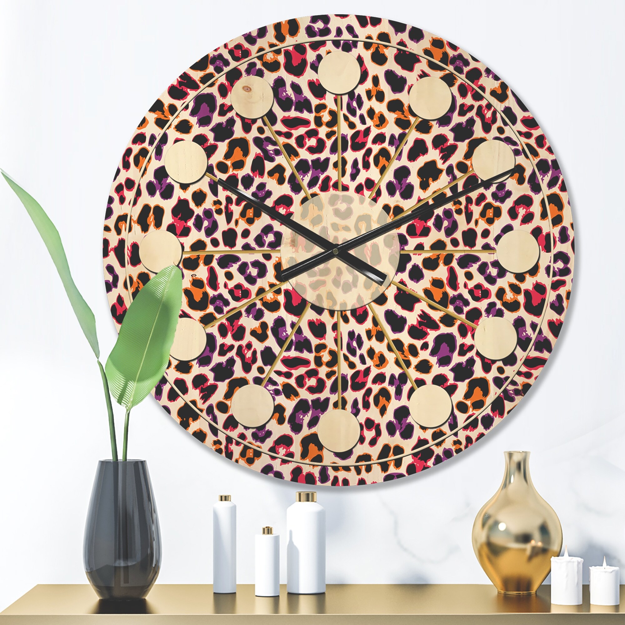 Designart 'Leopard Fur Safari VII' Mid-Century Modern Wood Wall Clock