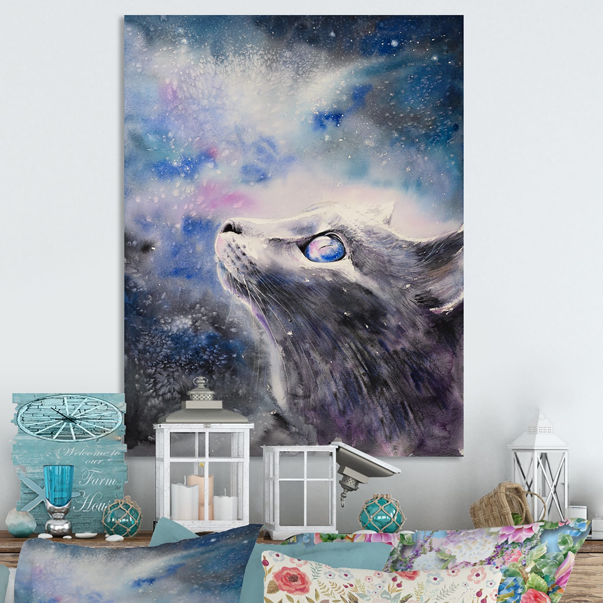Designart "Blue Cat in Futuristic Galaxy" Traditional Canvas Art Print