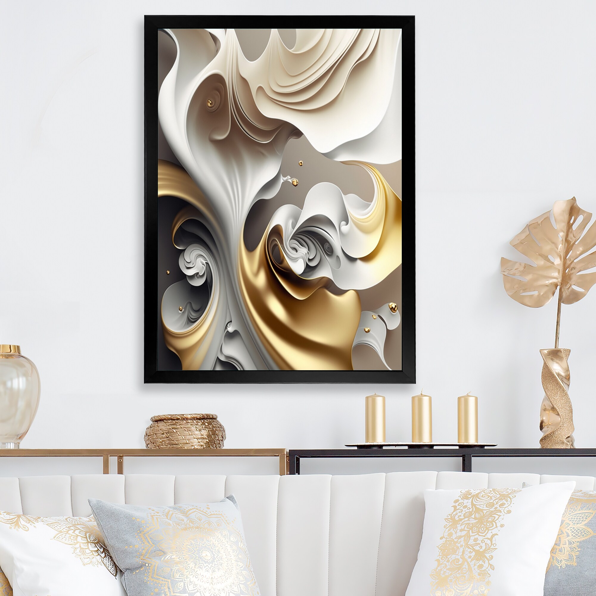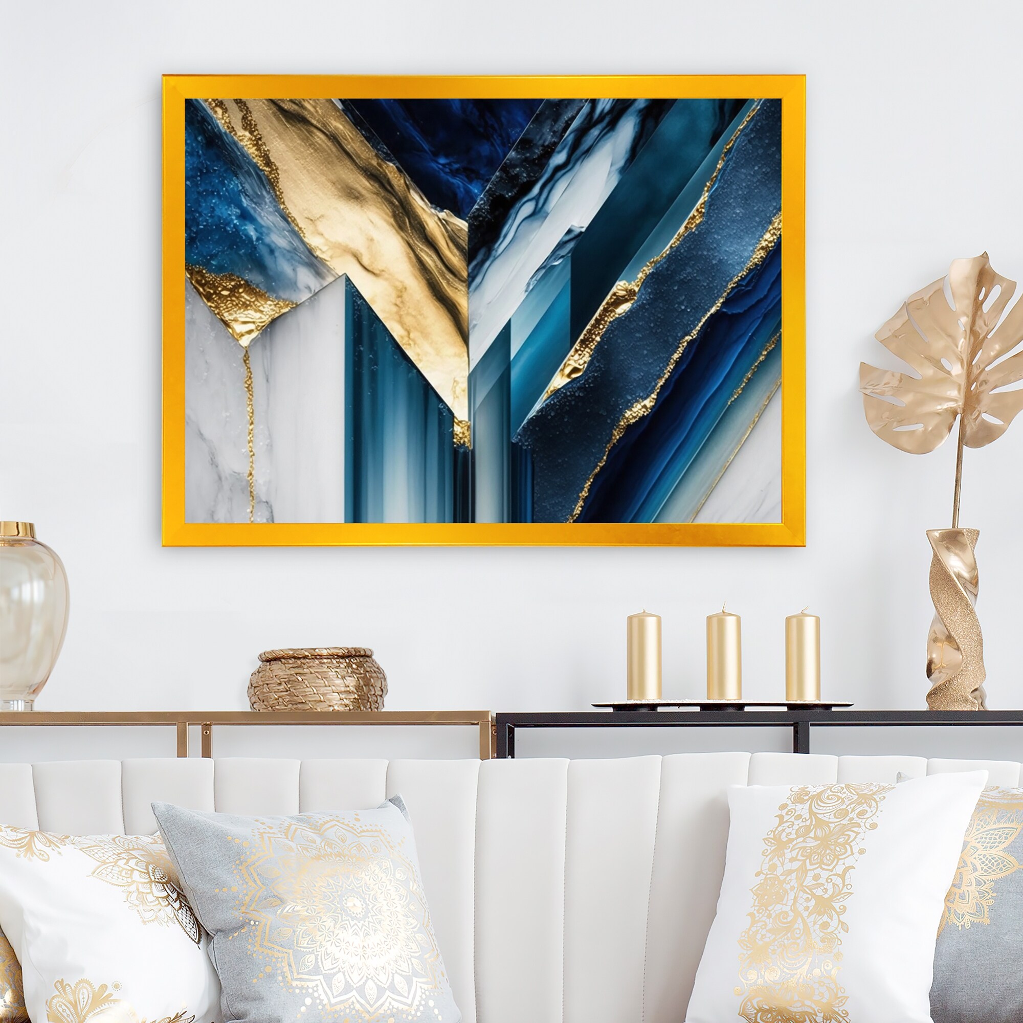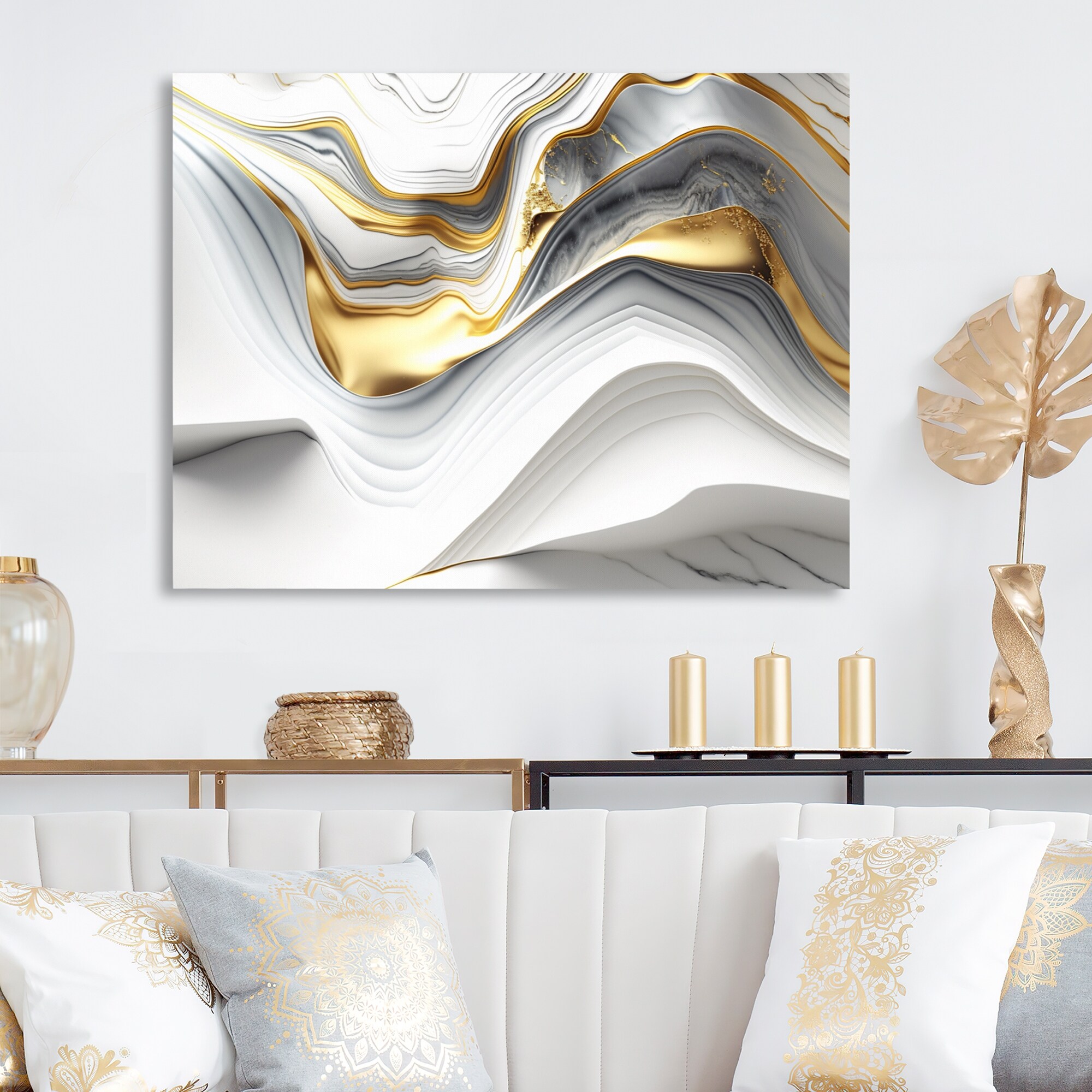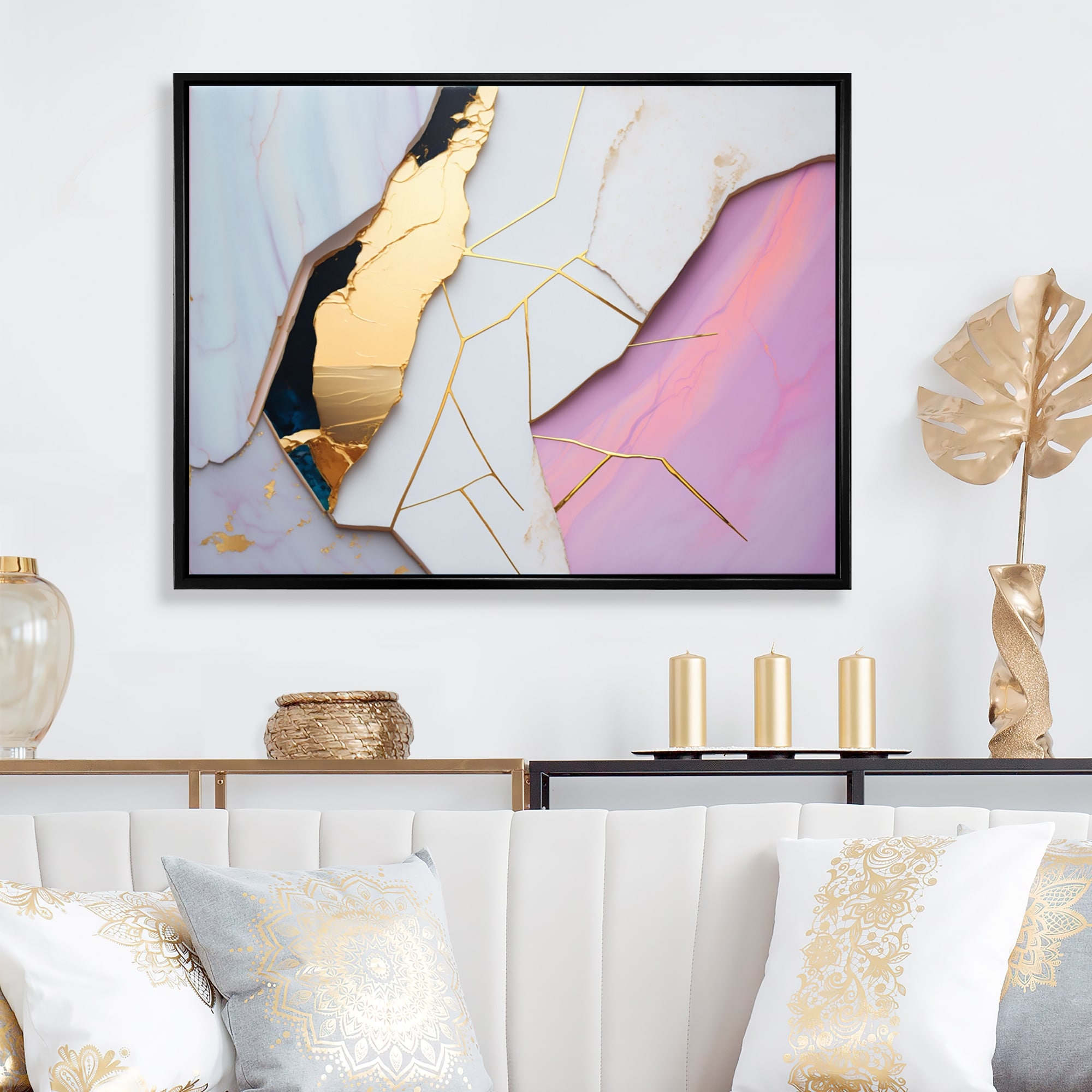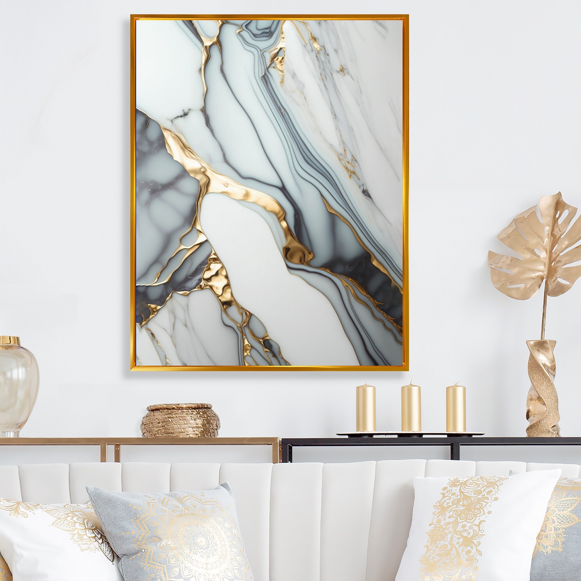 Designart "Abstract Geode Gold And White Marble V" Marble Abstract Framed Canvas Art Print