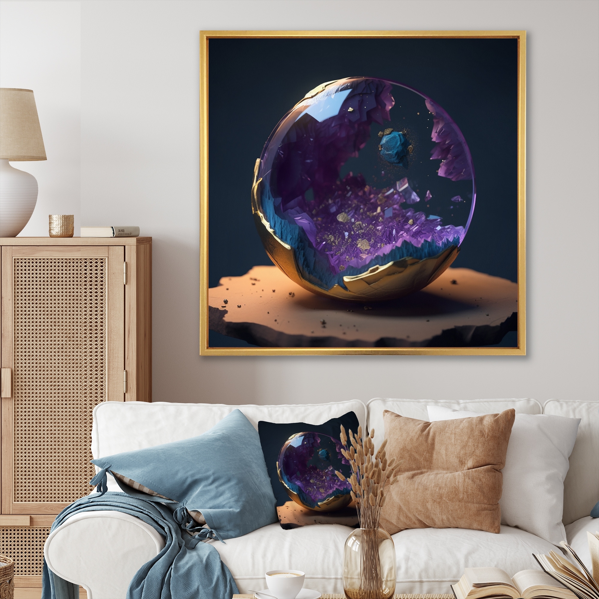Designart "Exploring The Depths of Purple Gold Geode Iii" Abstract Marble Framed Canvas Print