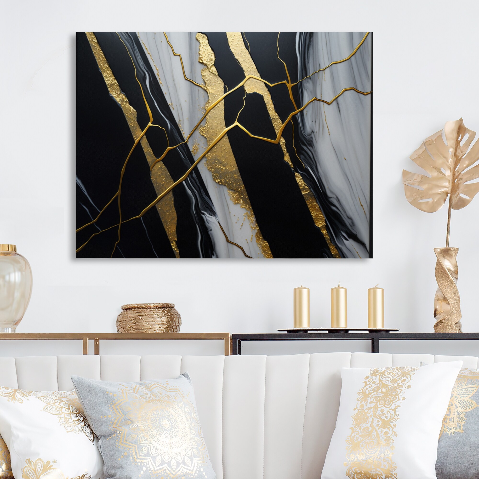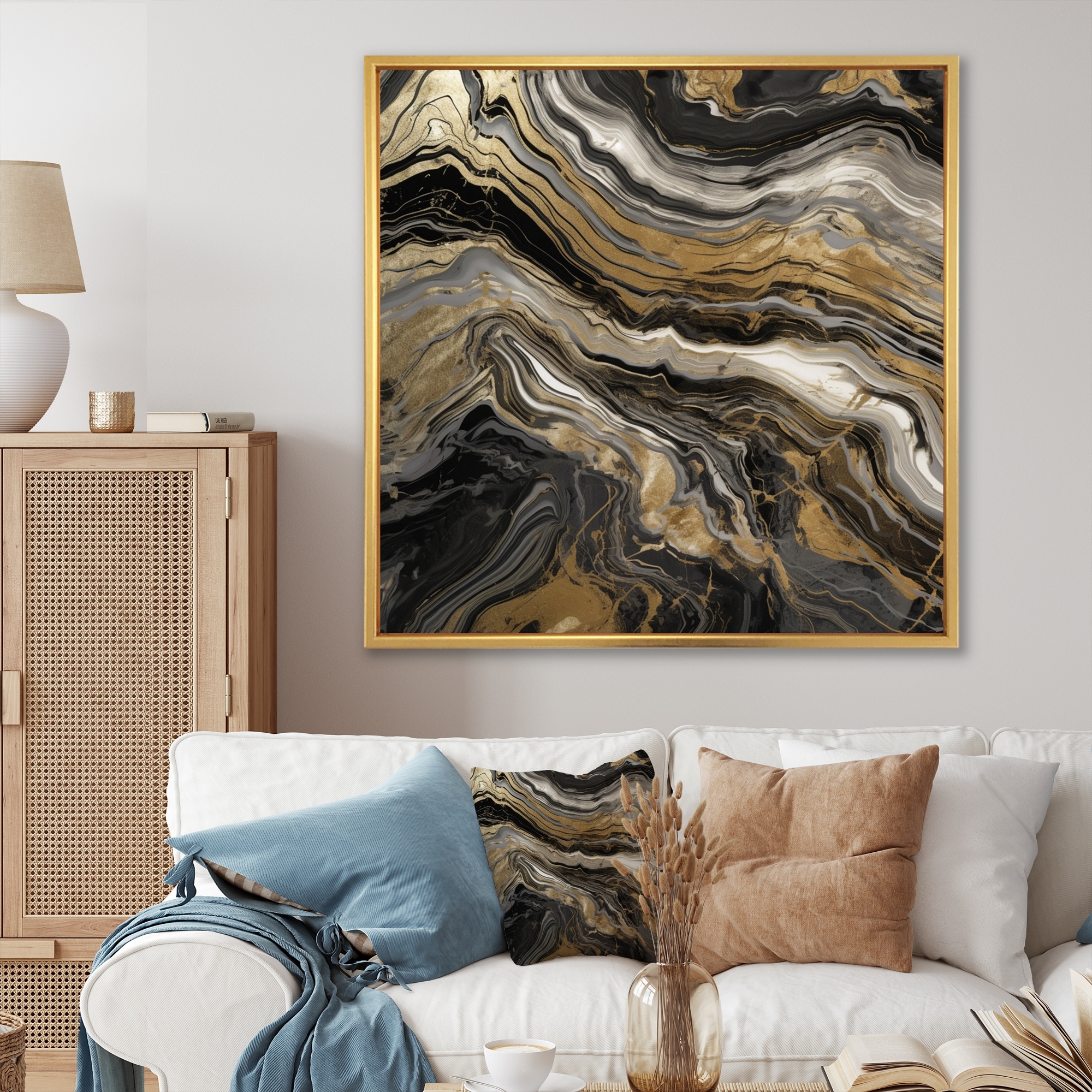 Designart "Exploring The Depths of Black Gold Geode Iii" Abstract Marble Framed Canvas Wall Art
