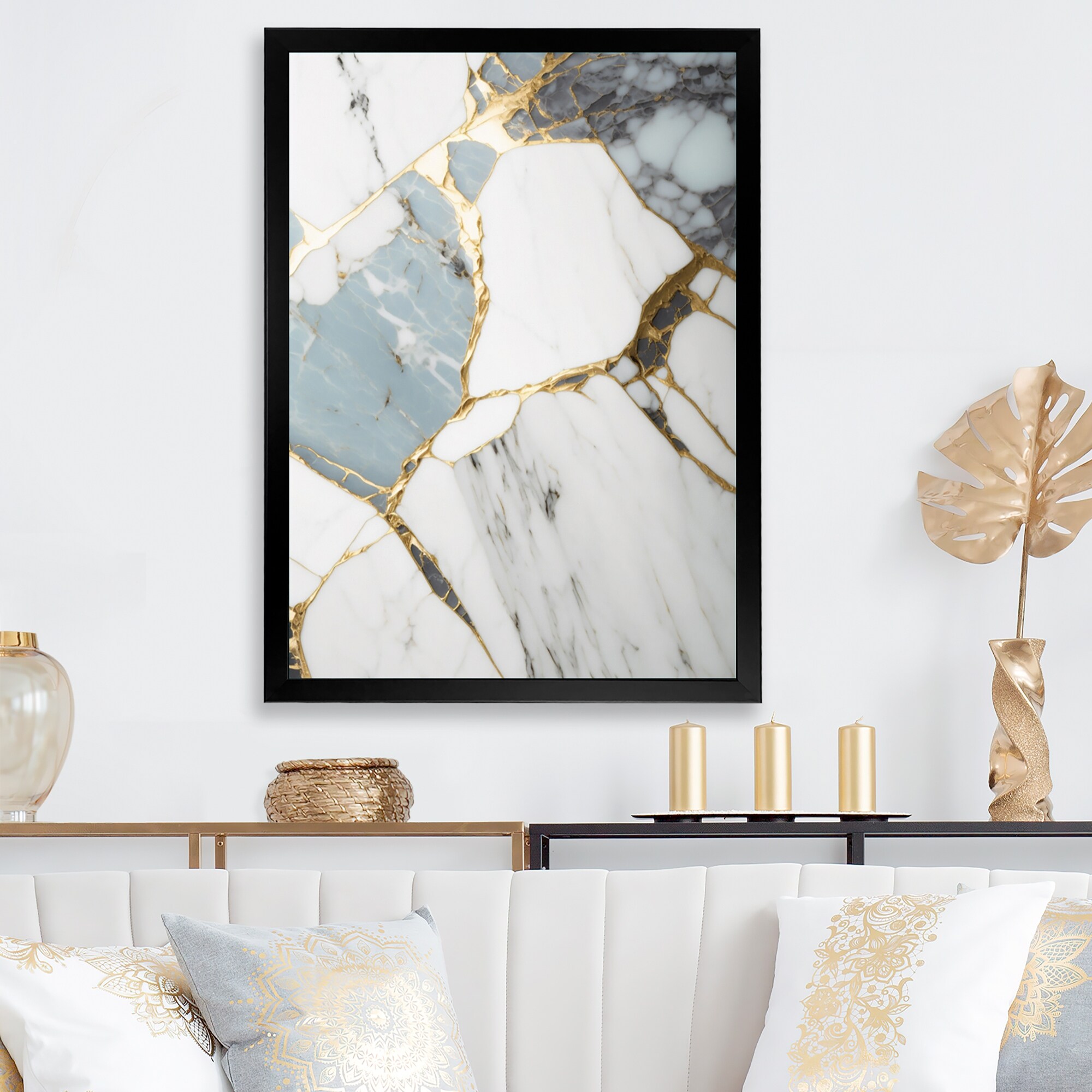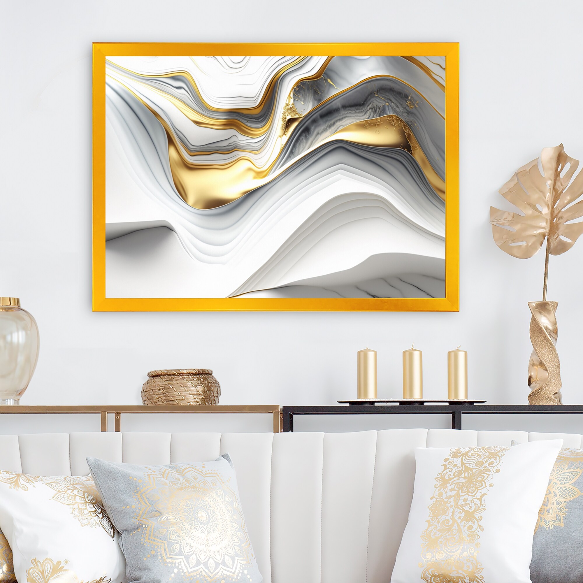 Designart "Abstract Geode Gold And White Marble I" Marble Abstract Framed Art Print