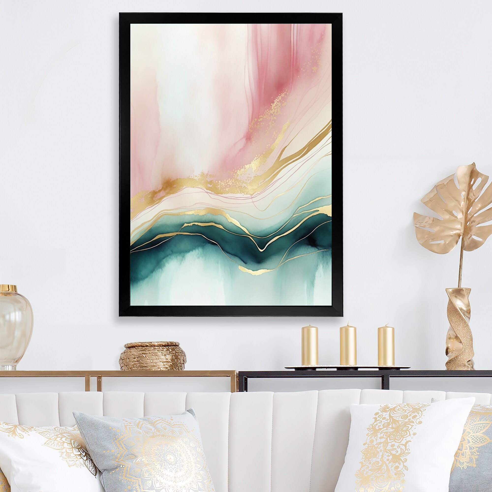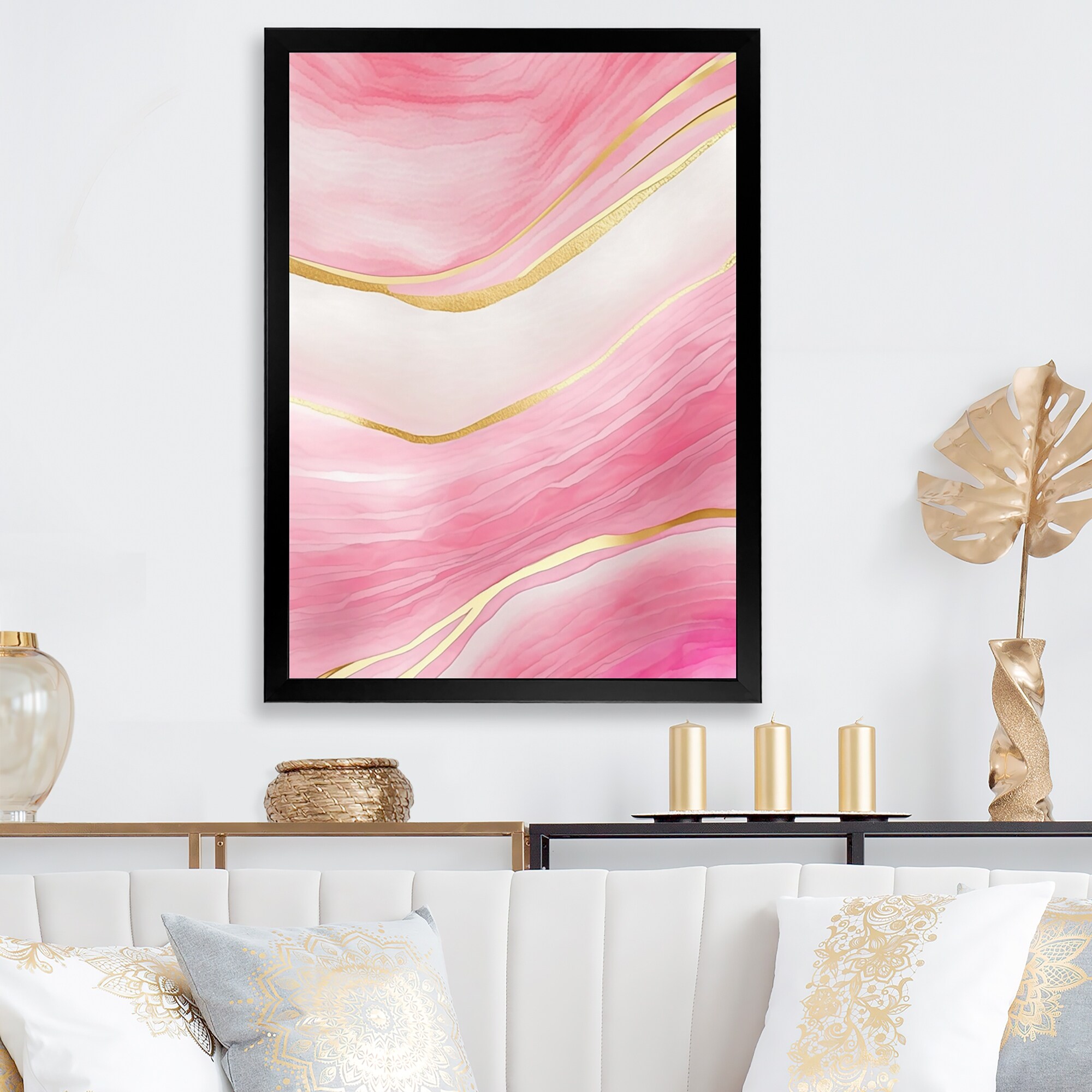 Designart "Abstract Geode Marble Waves Pink II" Marble Abstract Framed Art Print