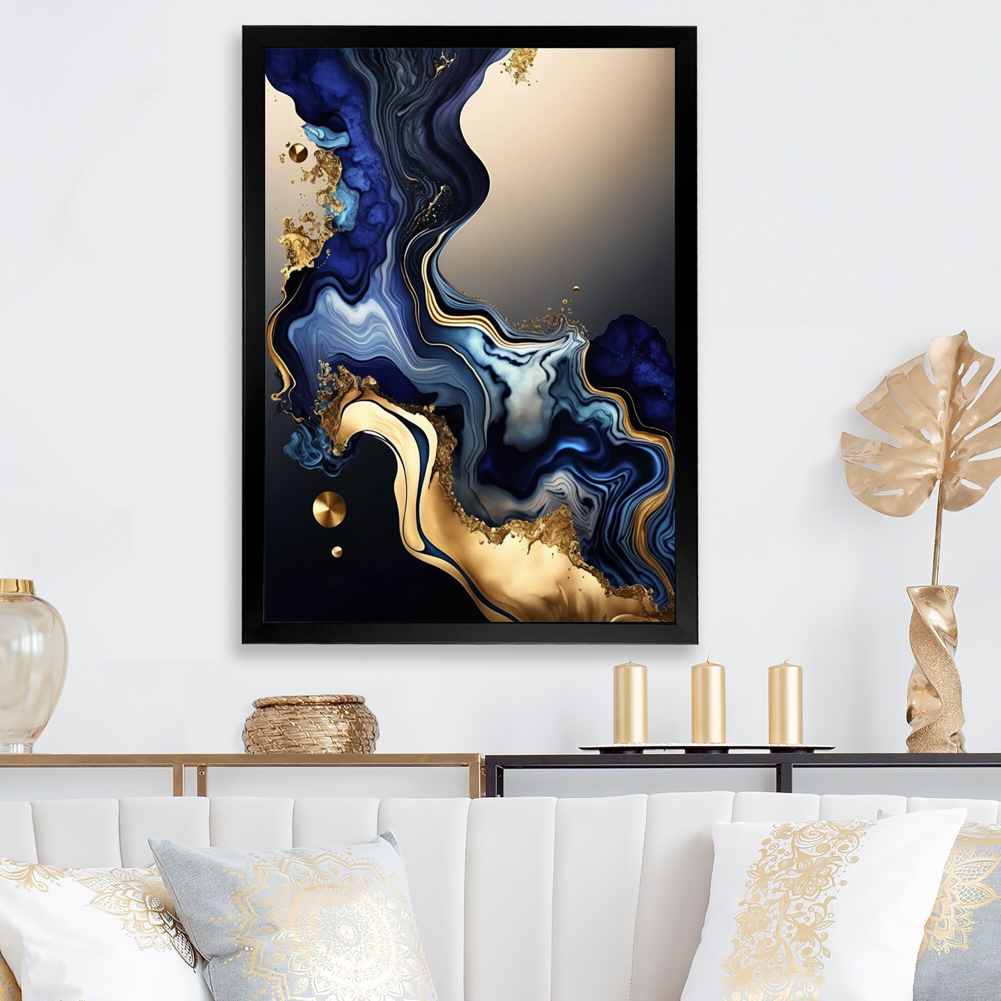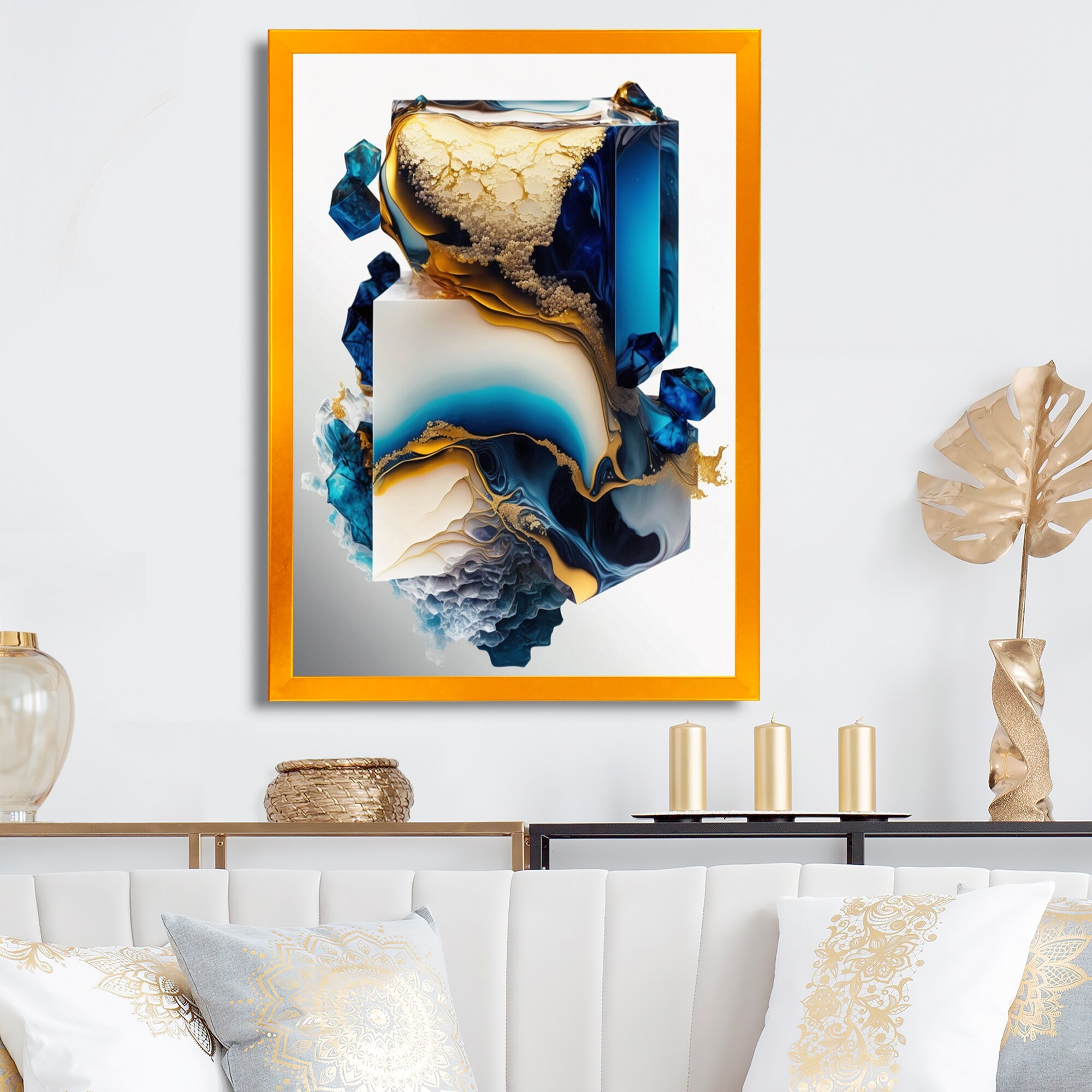 Designart "Abstract Marble Geode Blue III" Liquid ink Framed Art Print