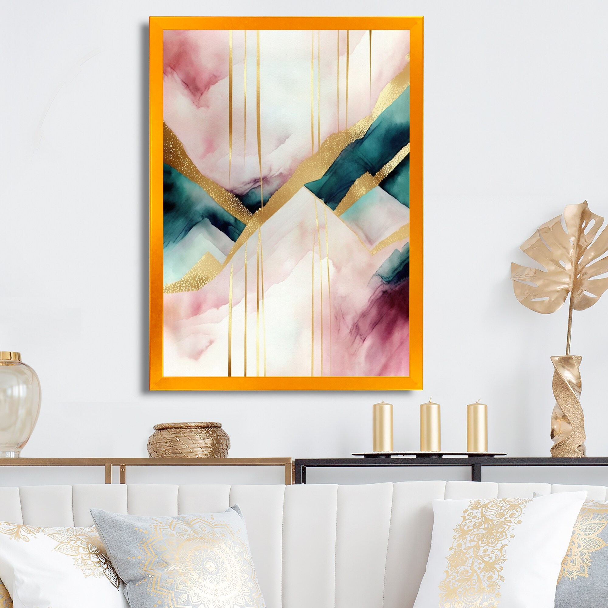 Designart "Abstract Geode Pink And Green Marble II" Marble Abstract Framed Art Print