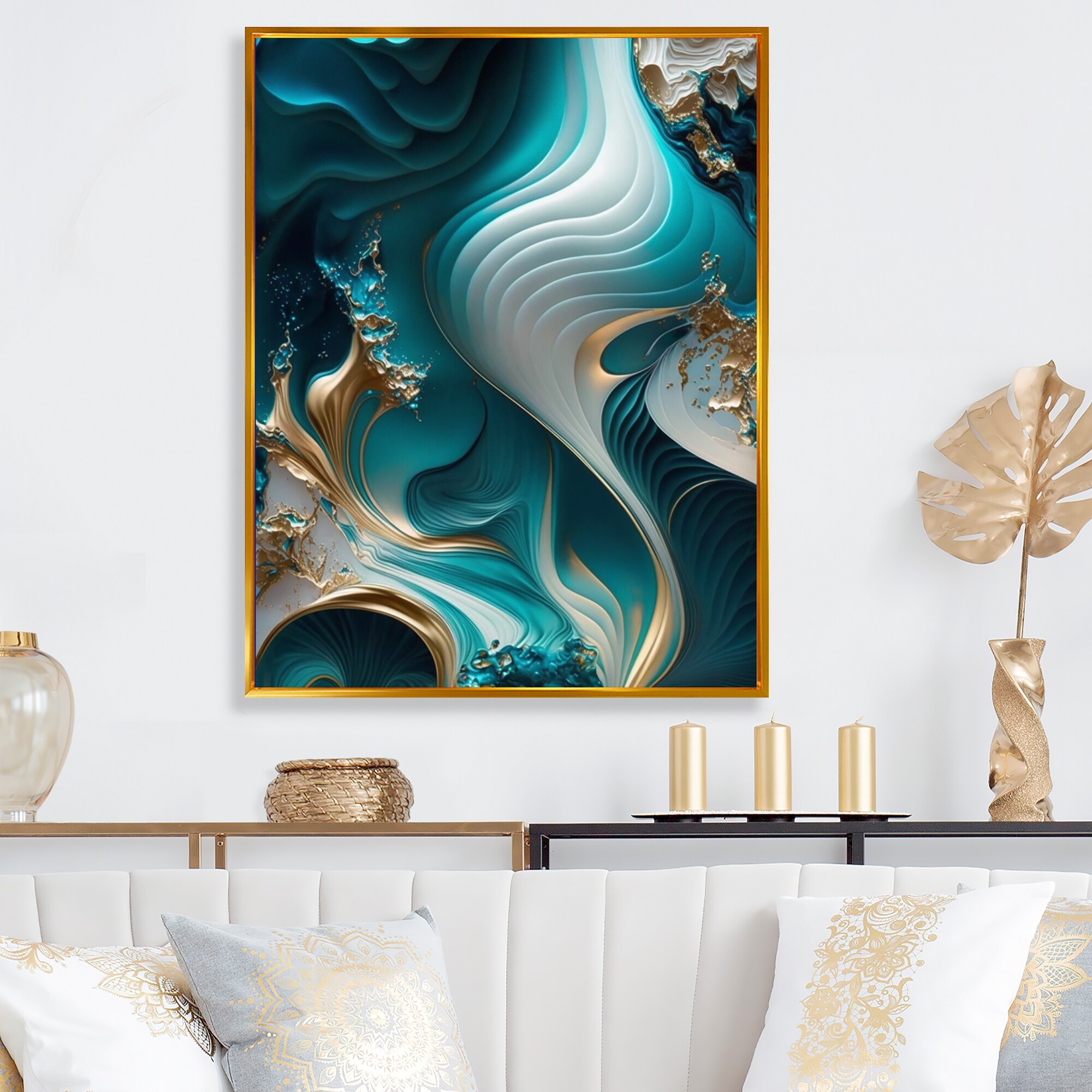 Designart "Abstract Geode Turquoise II" Marble Abstract Framed Canvas Art Print