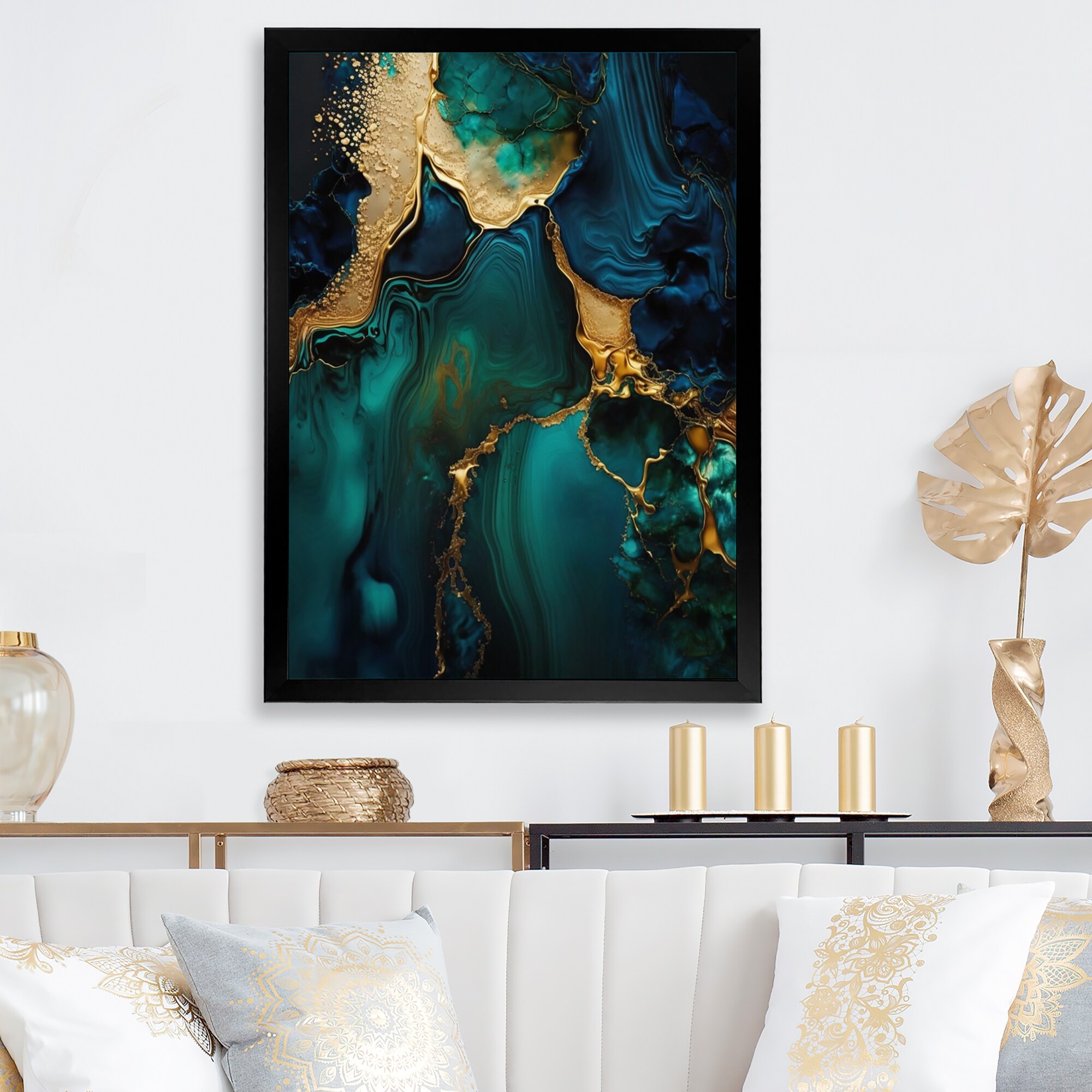 Designart "Abstract Geode Marble Green And Gold" Marble Abstract Framed Art Print