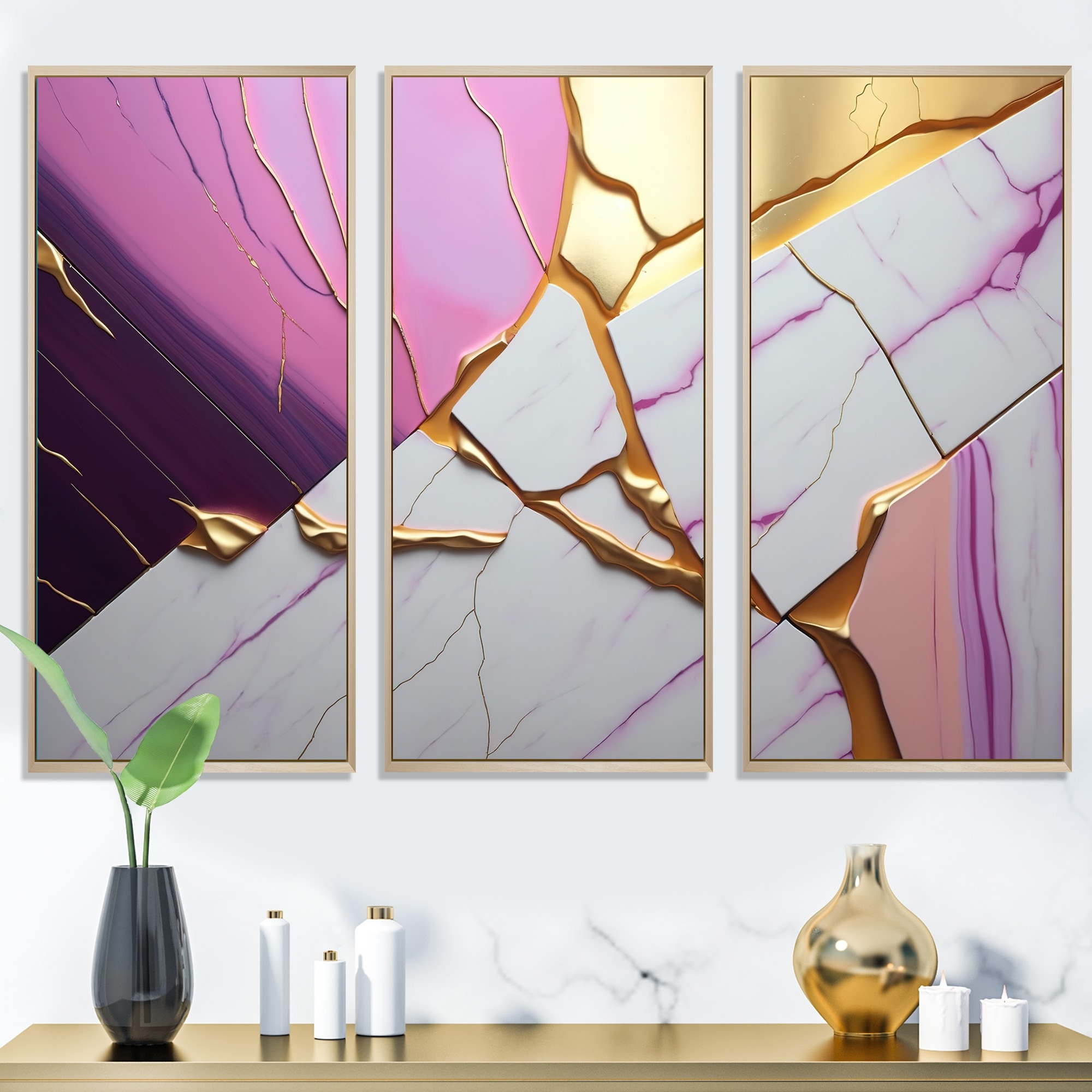 Designart "Abstract Geode Gold And Purple Marble" Abstract Marble Framed Canvas Art Print - 3 Panels