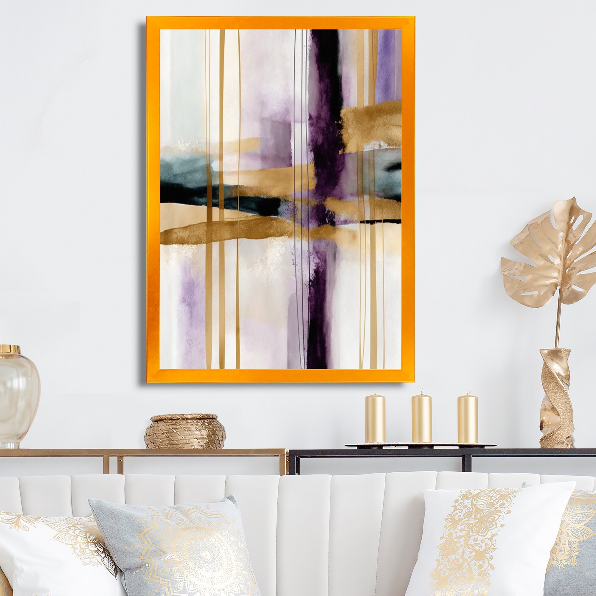 Designart "Abstract Geode Geometric Purple And Gold I" Animals Framed Art Print
