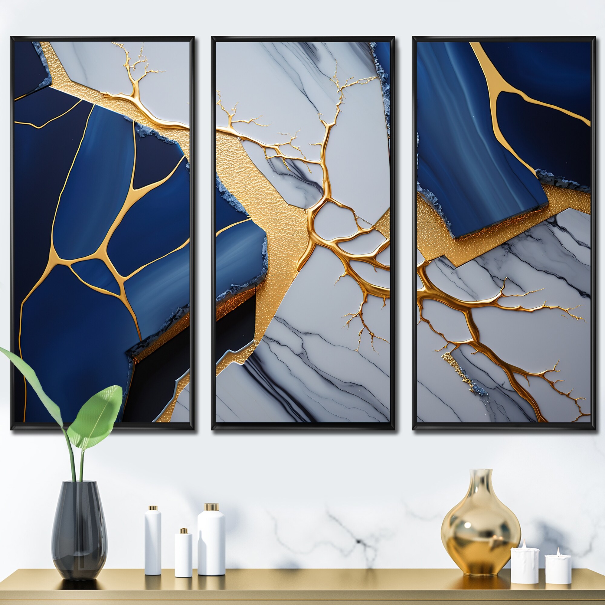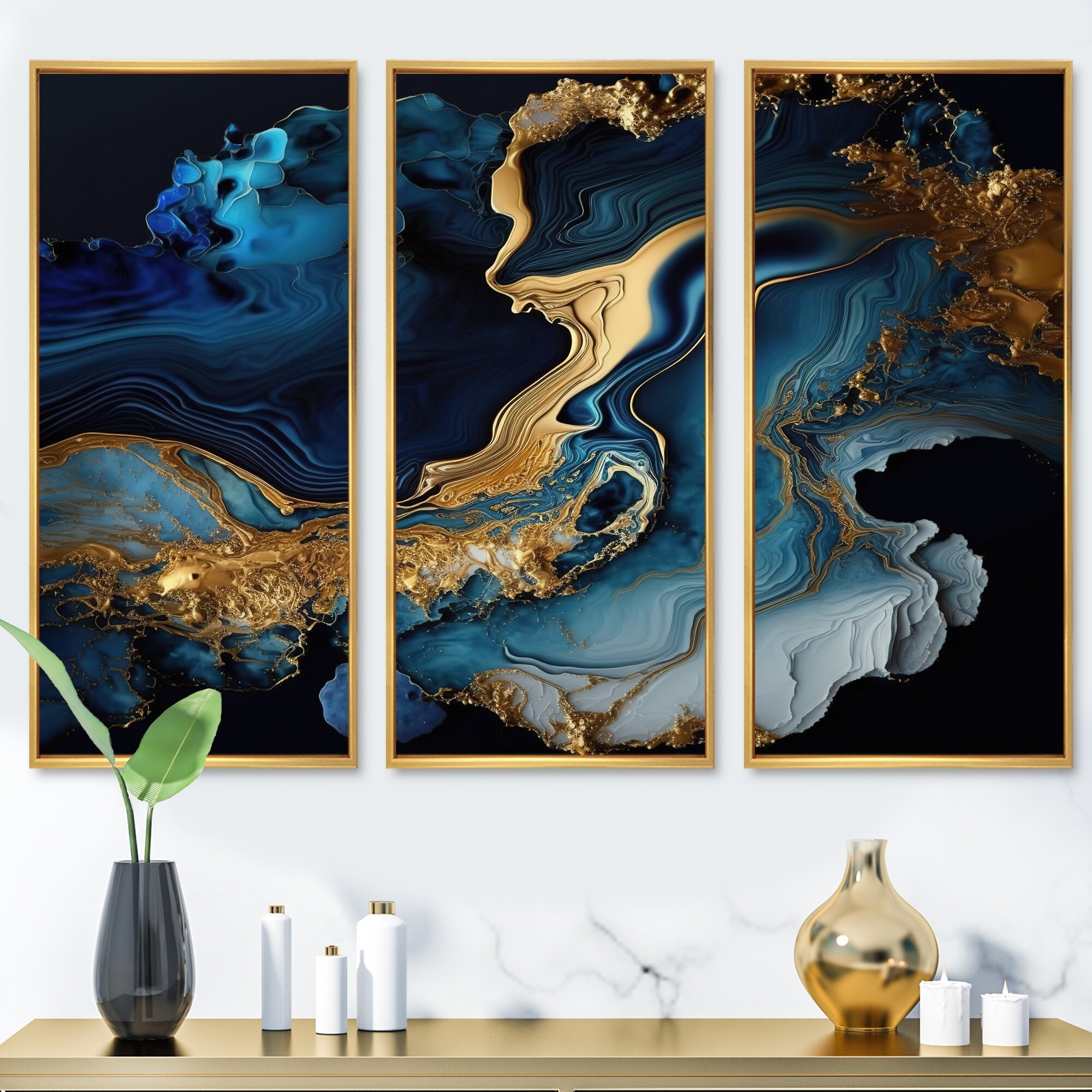 Designart "Abstract Geode Marble Blue III" Abstract Marble Framed Canvas Art Print - 3 Panels