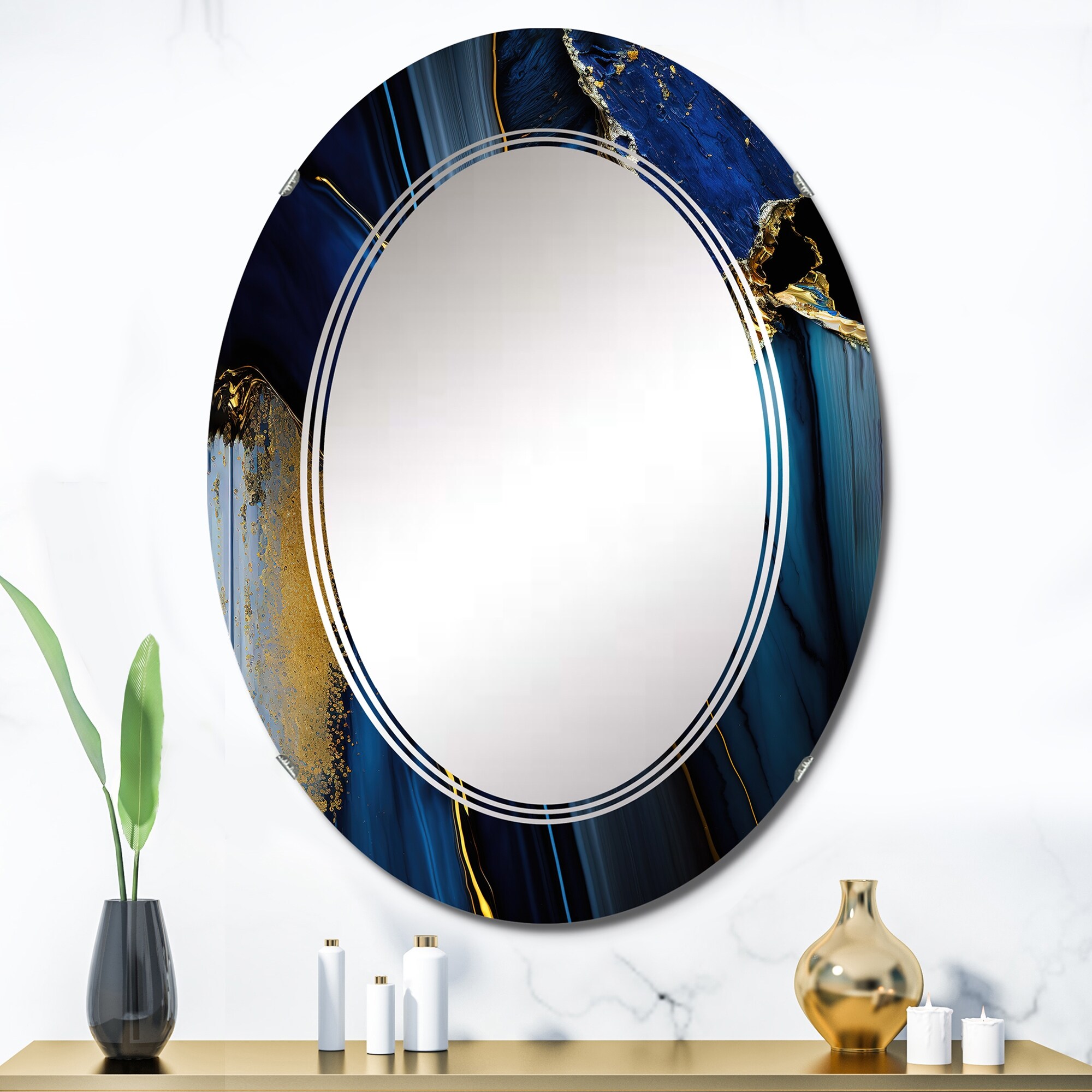 Designart 'Abstract Geode Blue IV' Printed Abstract Marble Wall Mirror