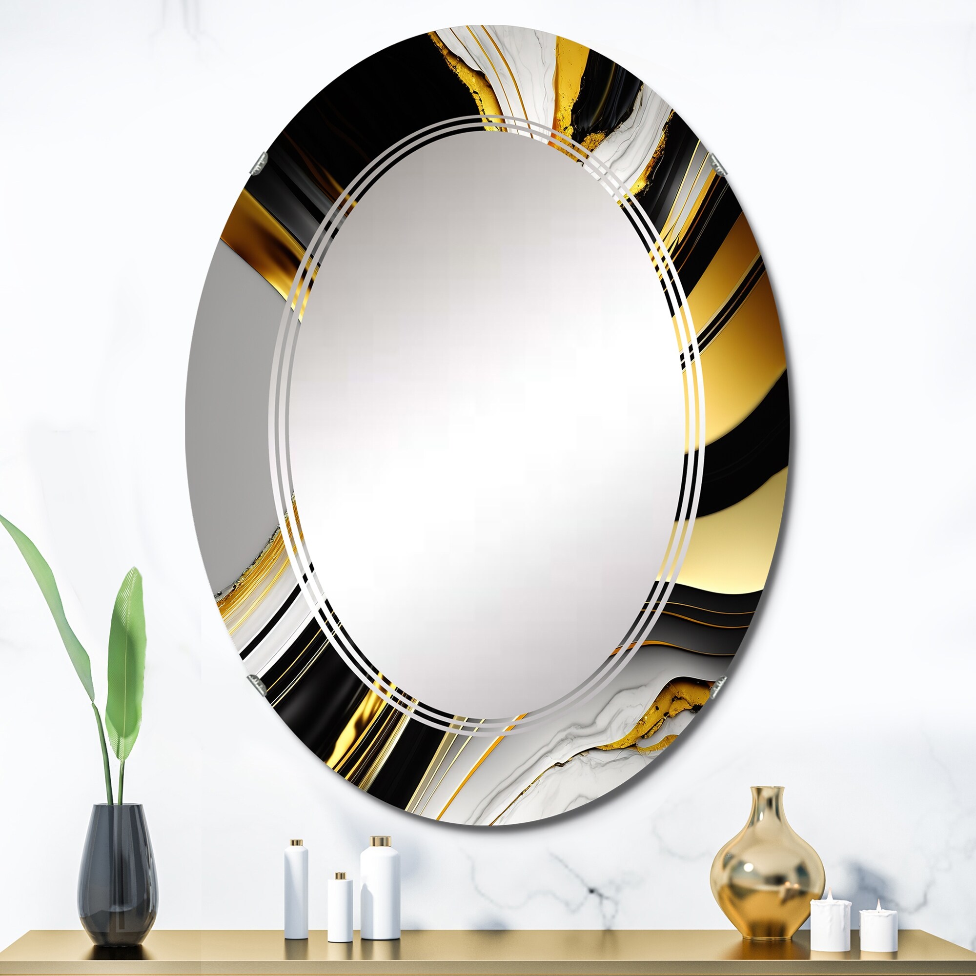 Designart 'Abstract Geode Marble Waves Gold II' Printed Modern Waves Wall Mirror