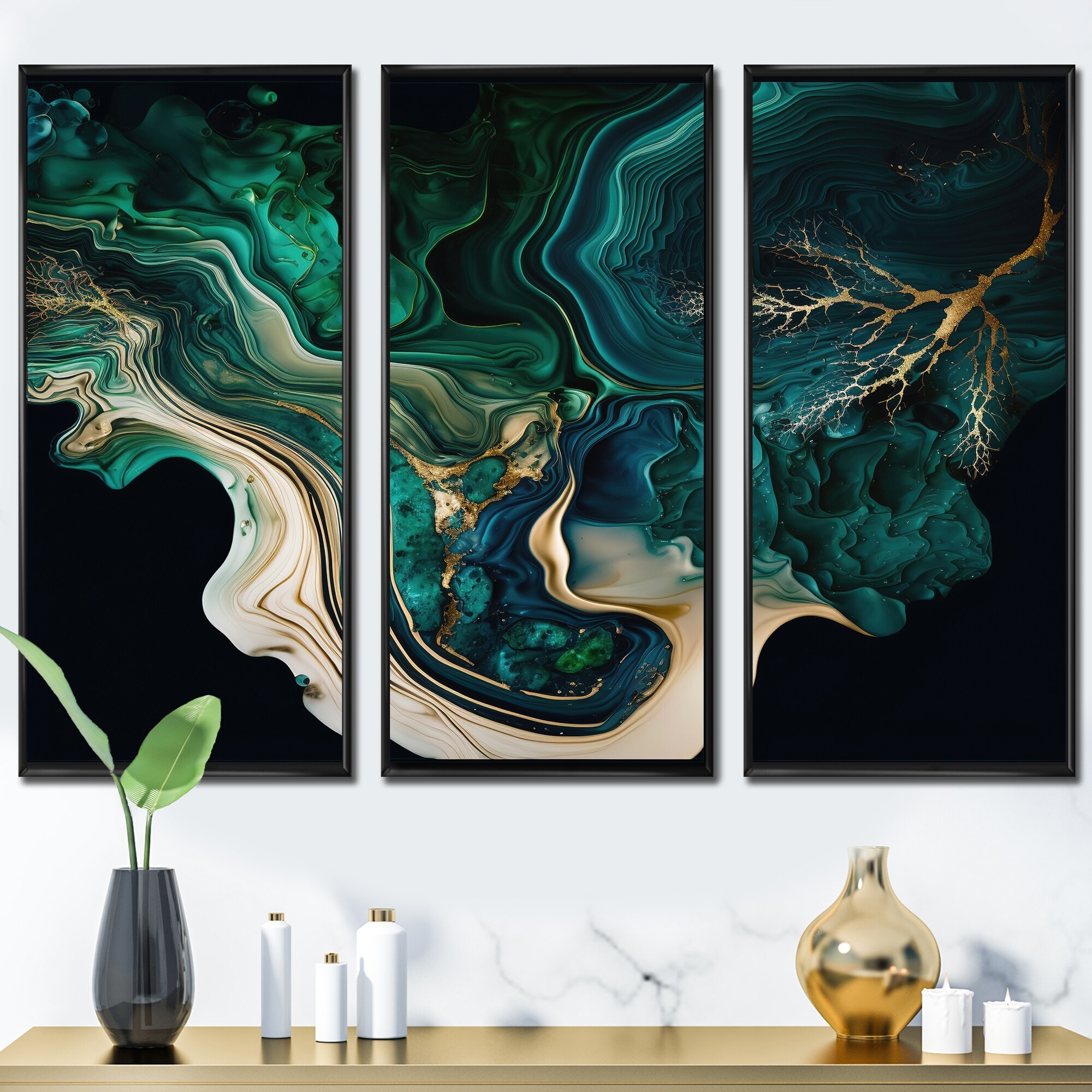 Designart "Abstract Geode Marble Green And Blue II" Abstract Marble Framed Canvas Art Print - 3 Panels
