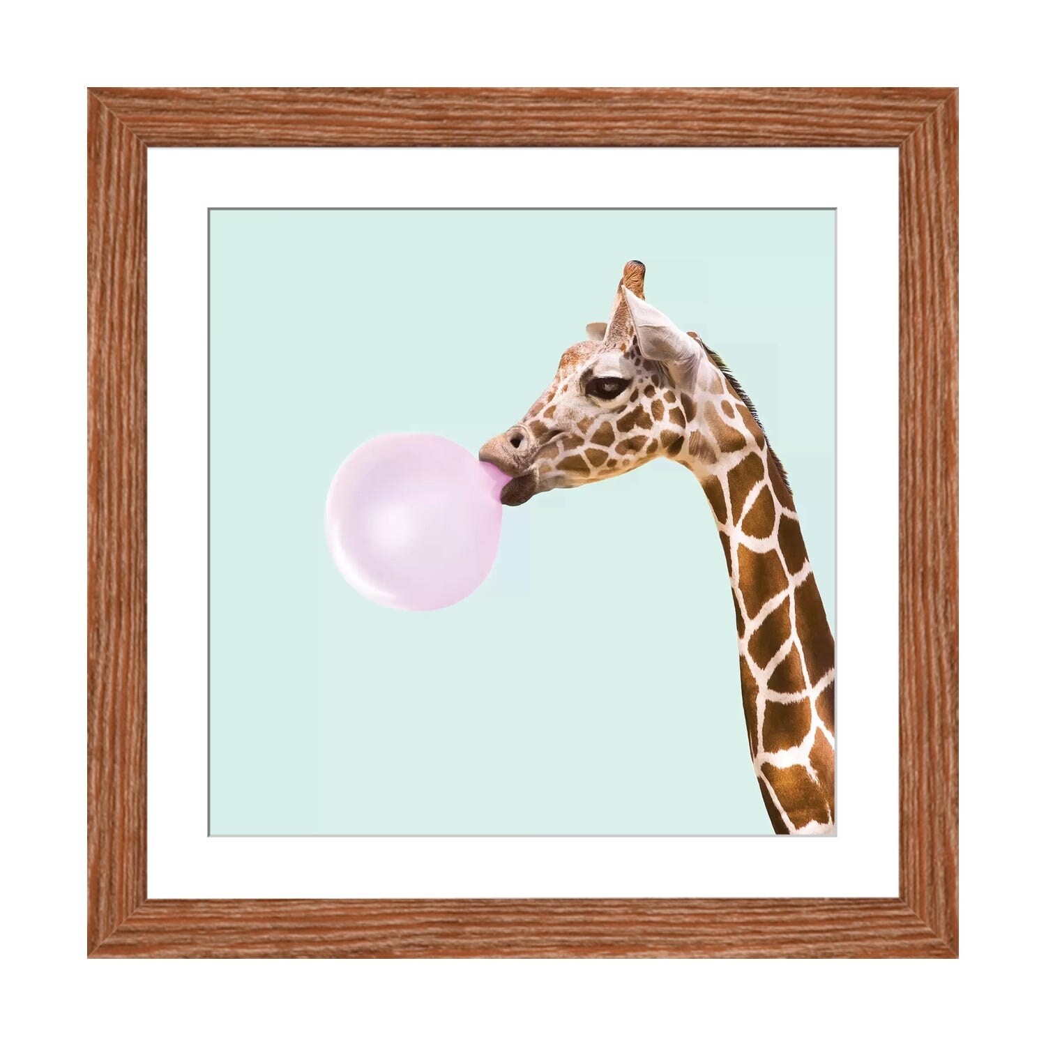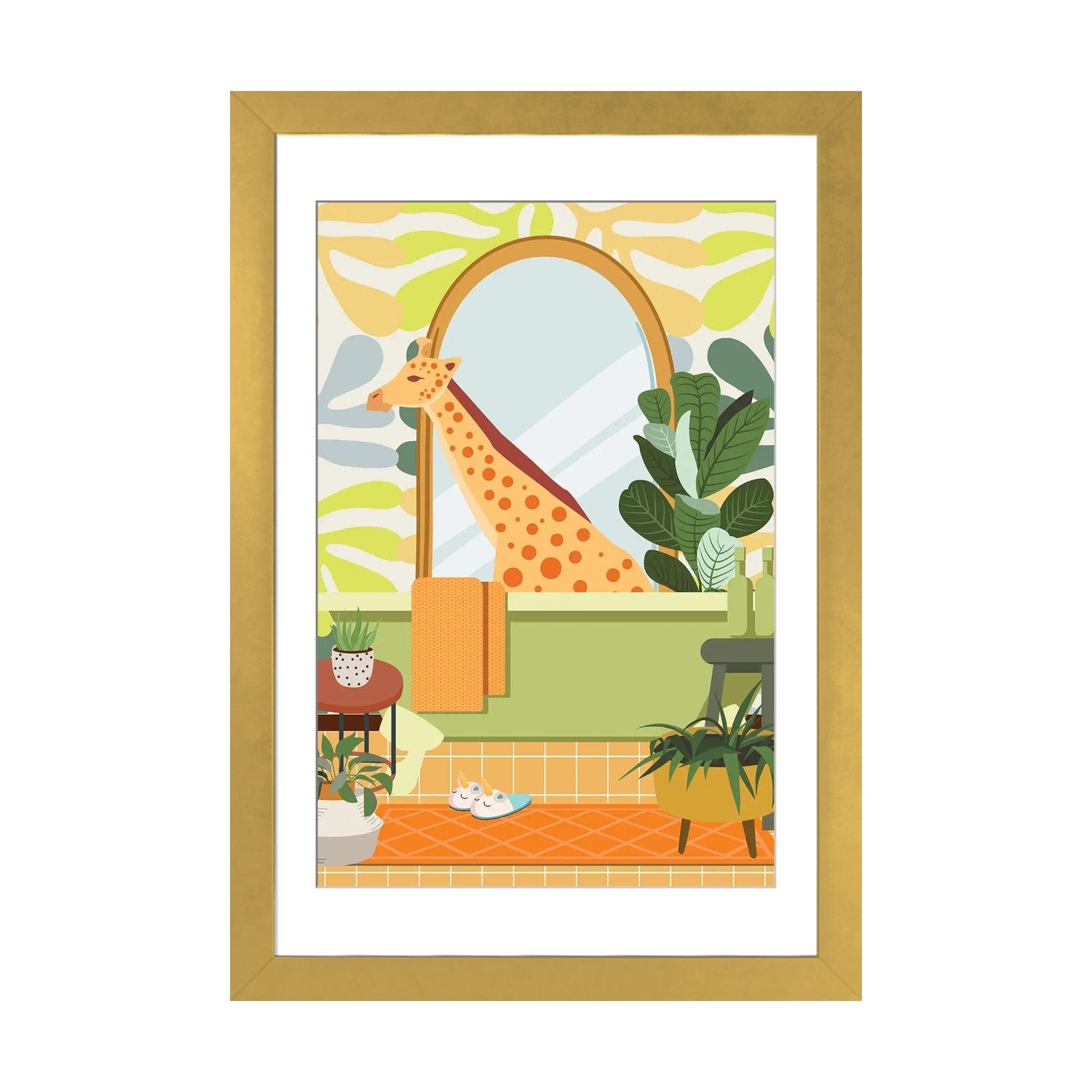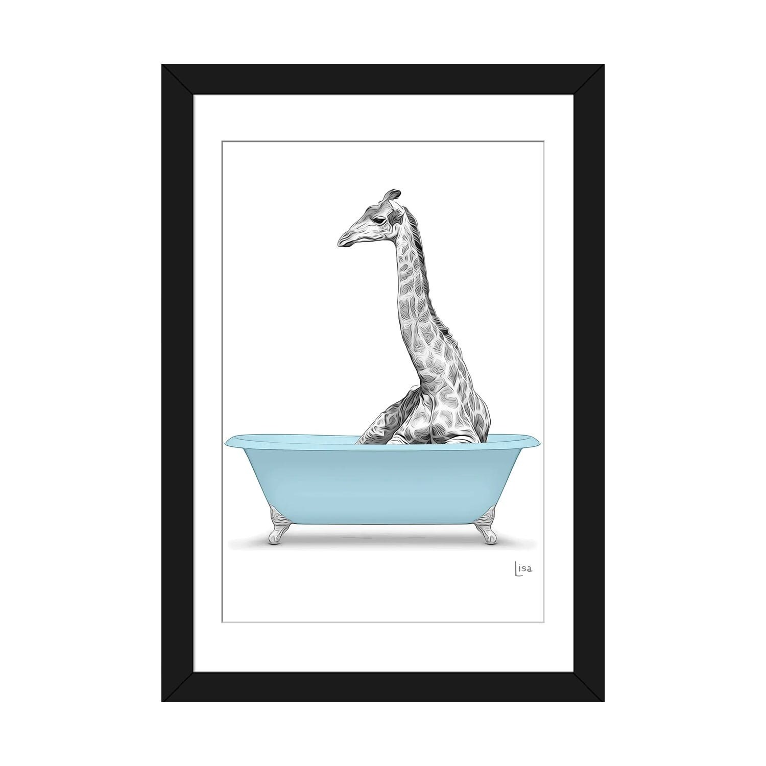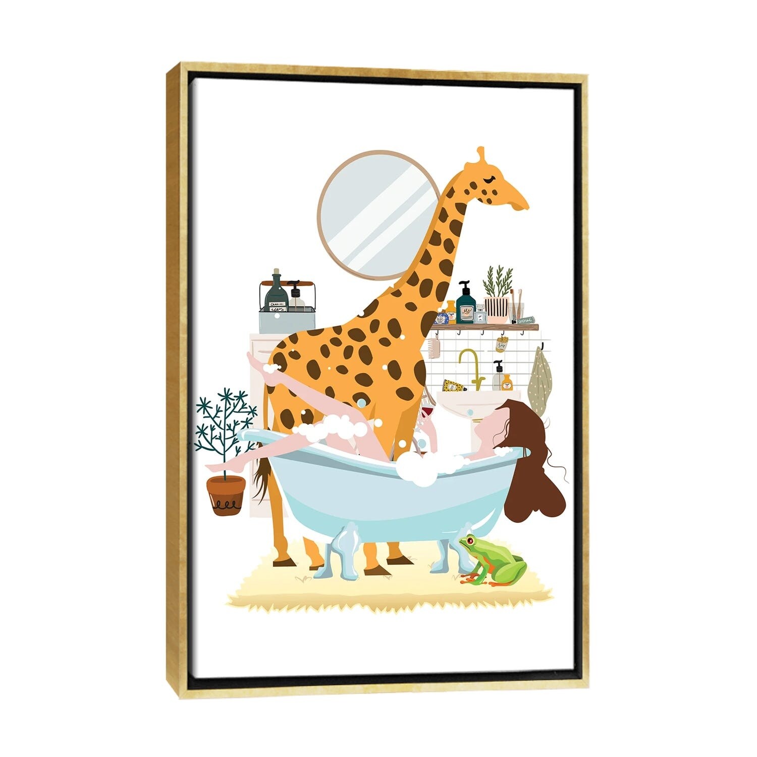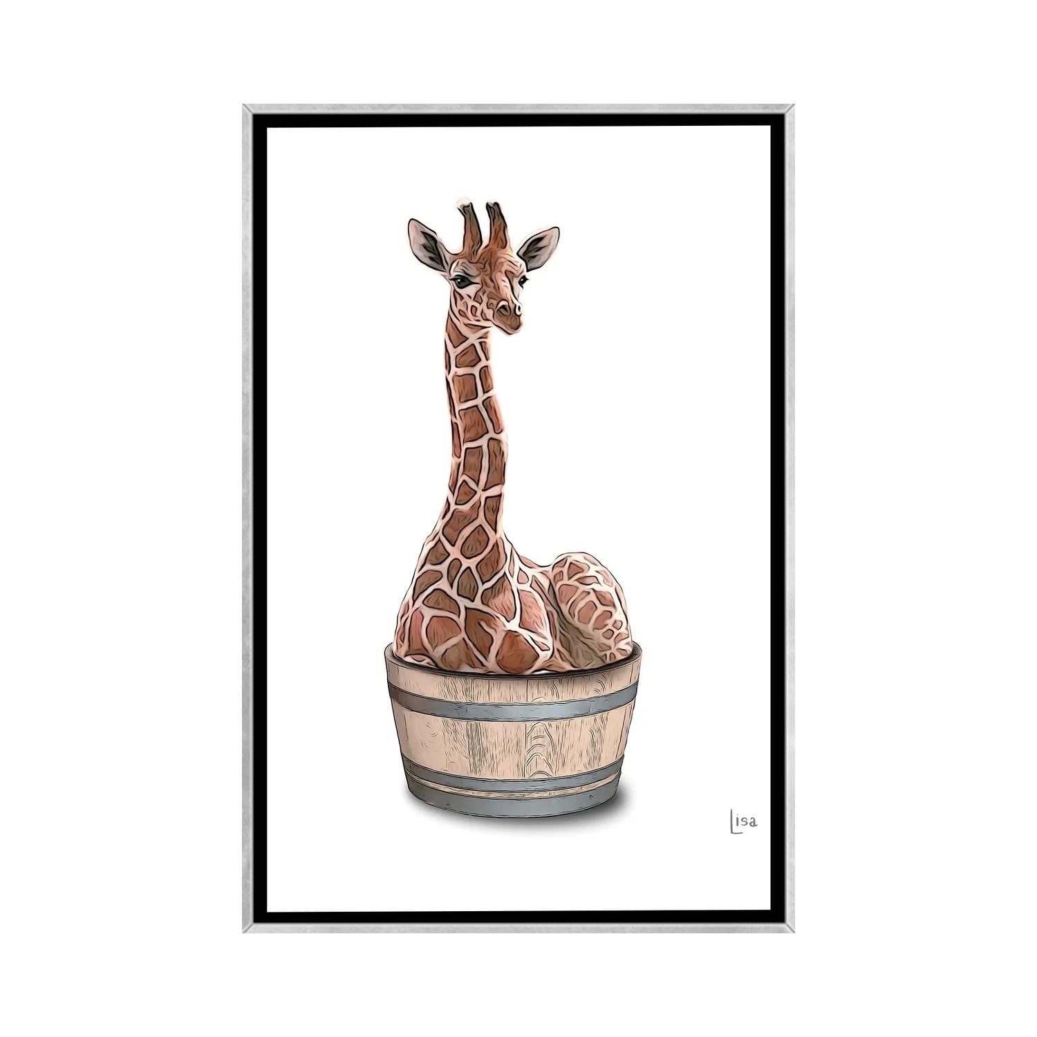 iCanvas "Giraffe In the Tub Color" by Printable Lisa's Pets Framed