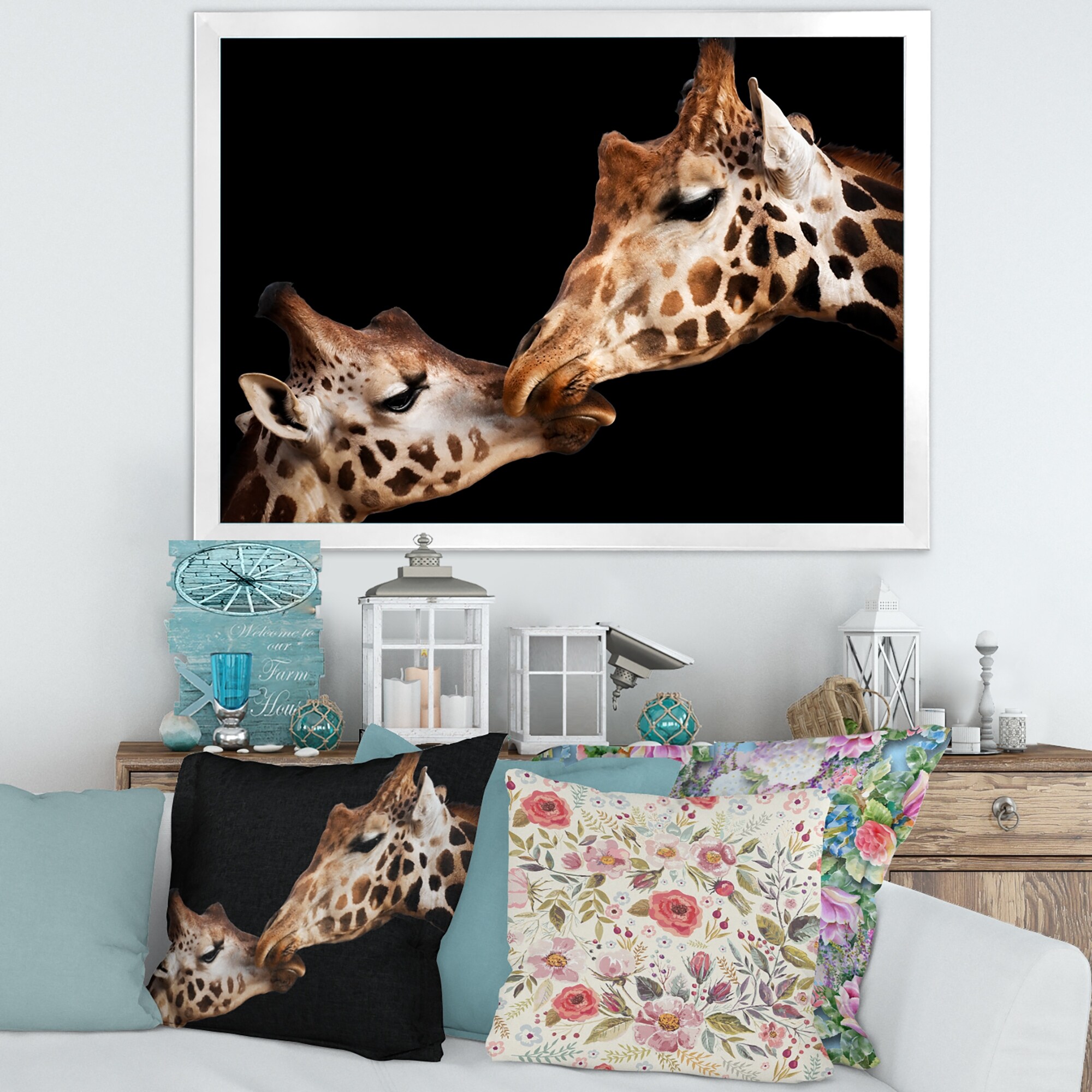 Designart "Portrait of Two Giraffes Kissing II" Farmhouse Framed Art Print