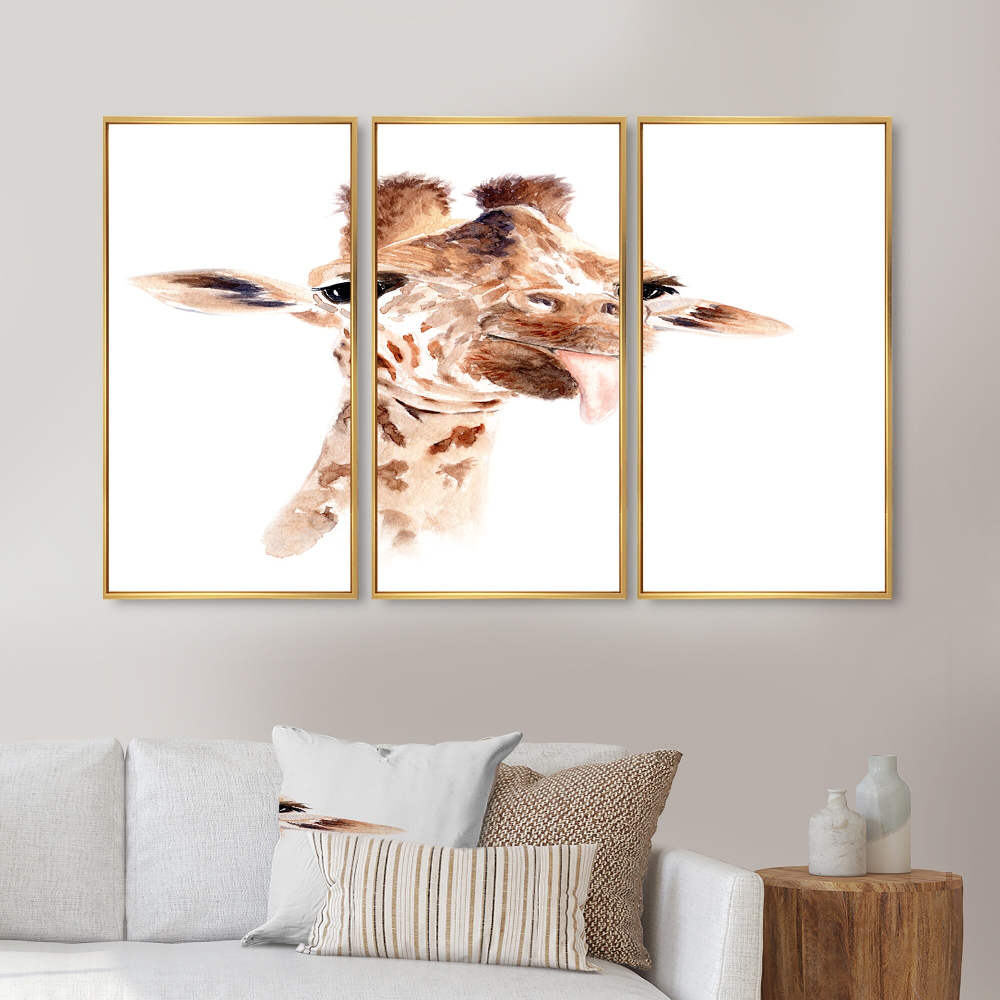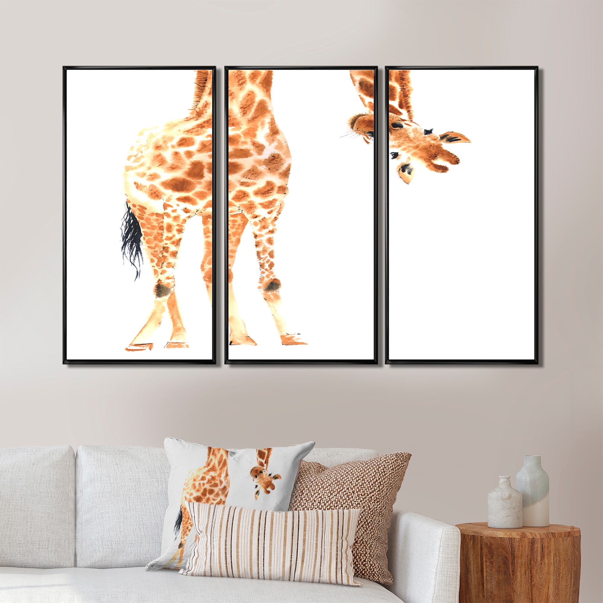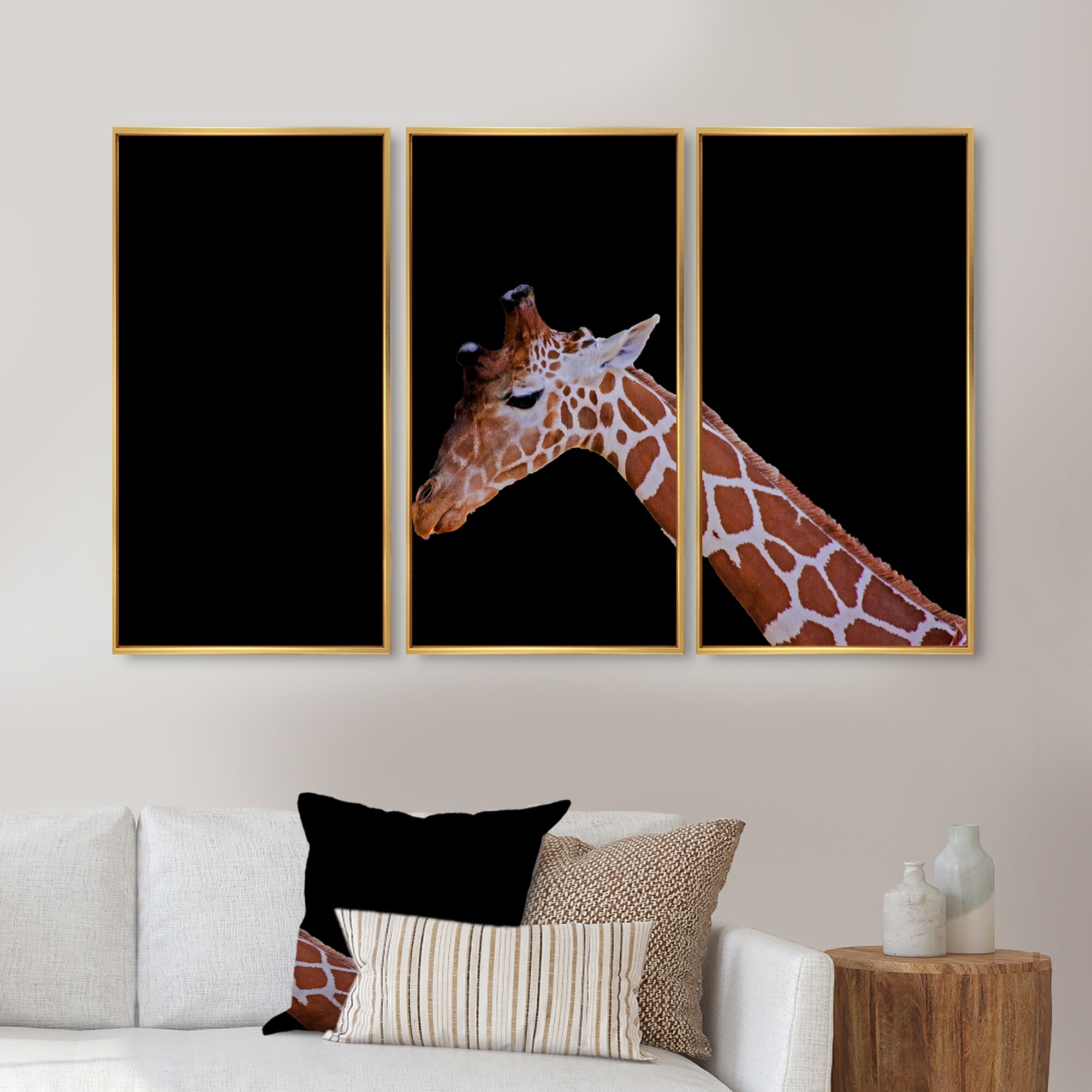 Designart "Portrait of a Giraffe V" Farmhouse Framed Canvas Wall Art Print Set of 3 - 4 Colors of Frames