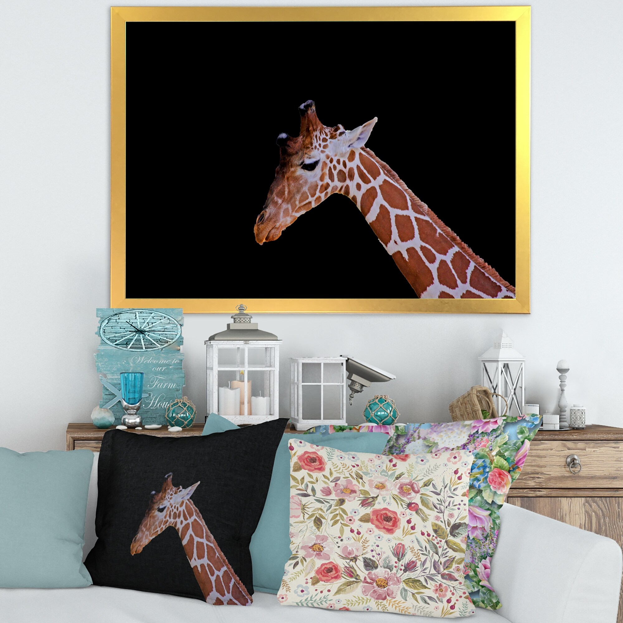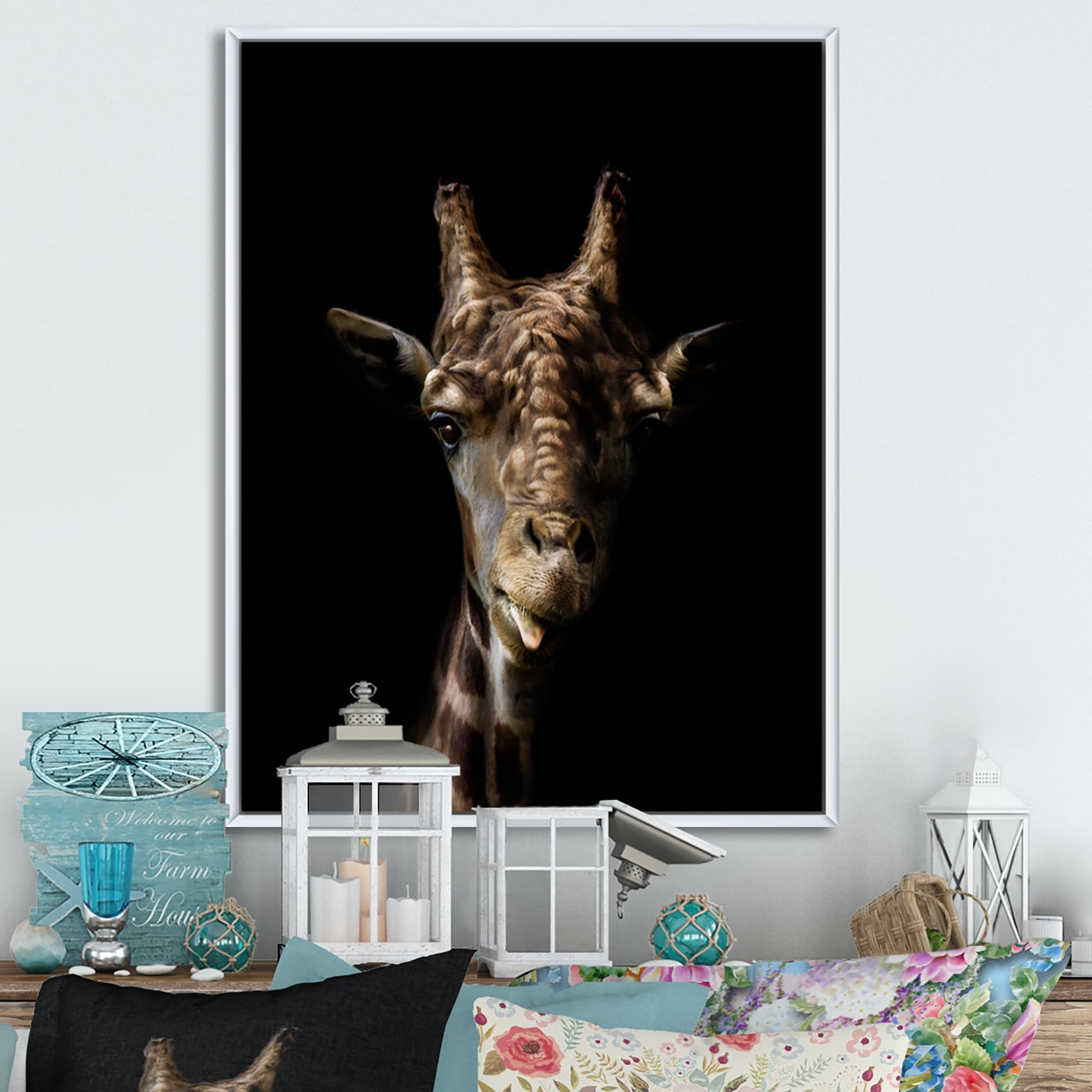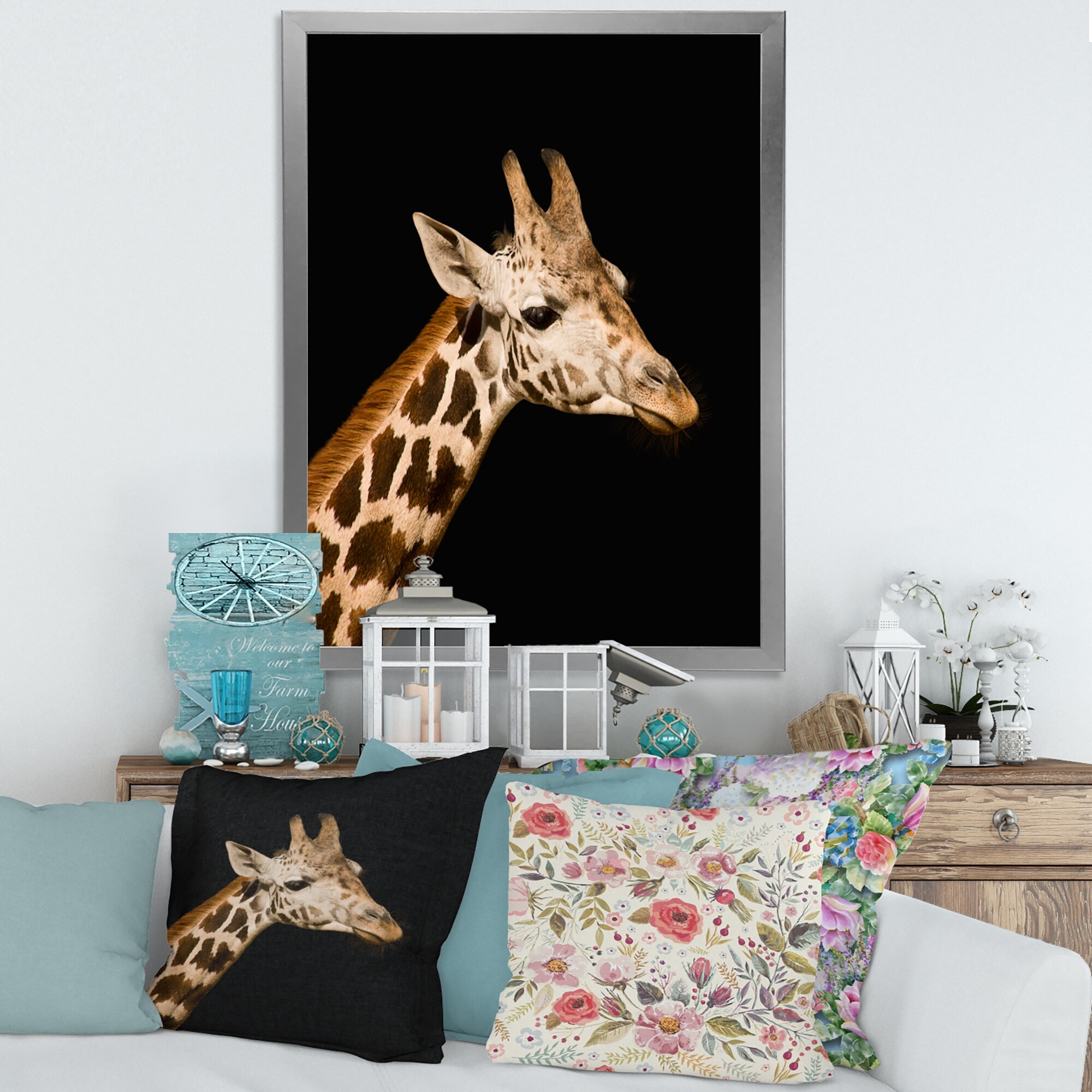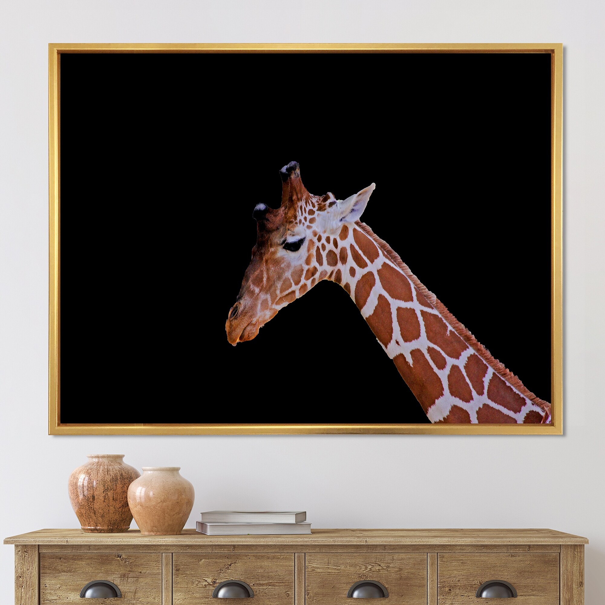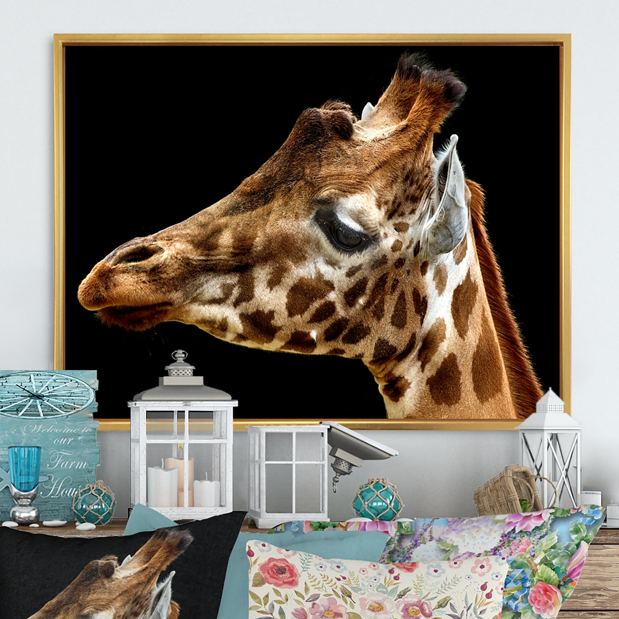 Designart "Close Up Giraffe on Black" Traditional Framed Canvas Art Print