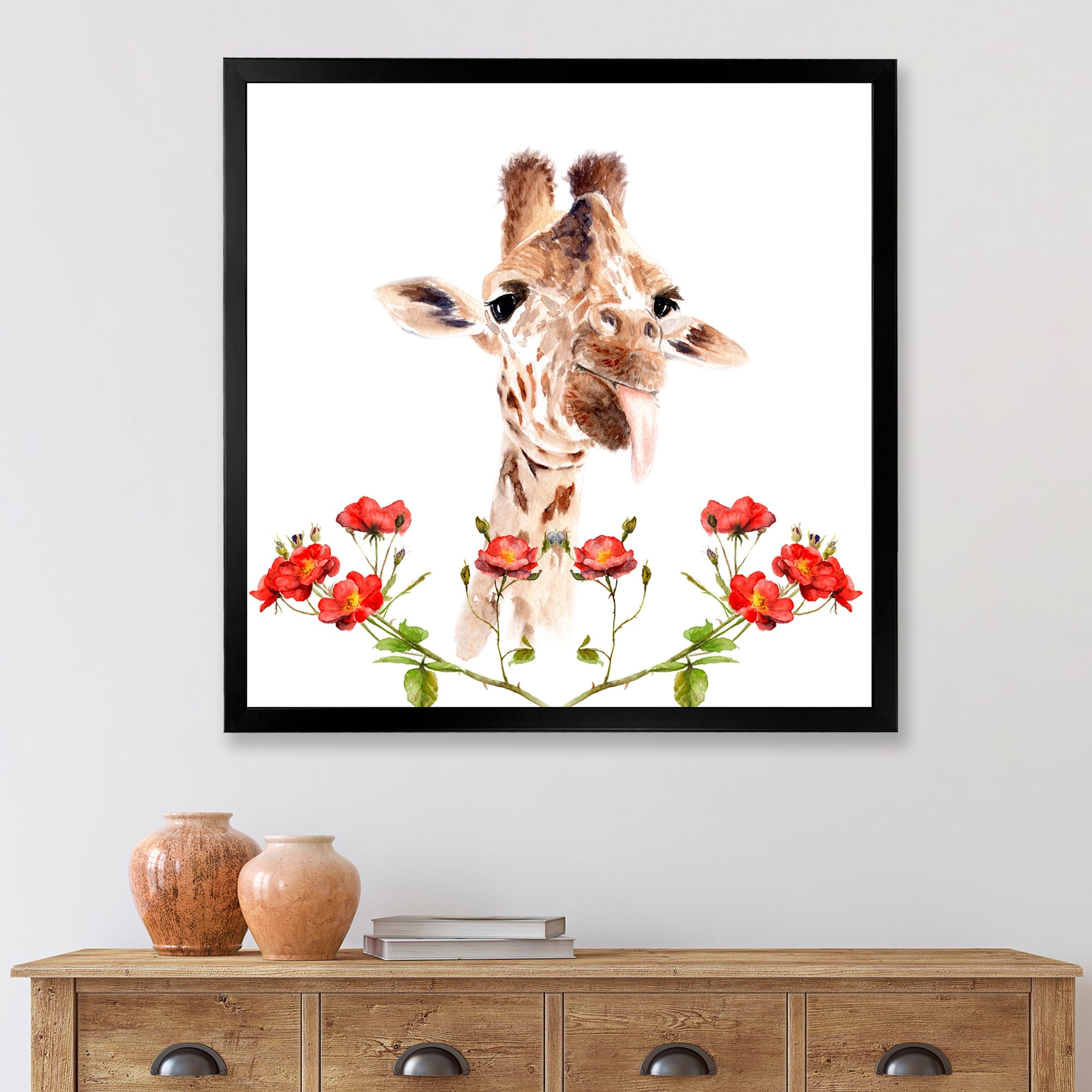 Designart "Portrait of a Giraffe With Flowers II" Farmhouse Framed Art Print