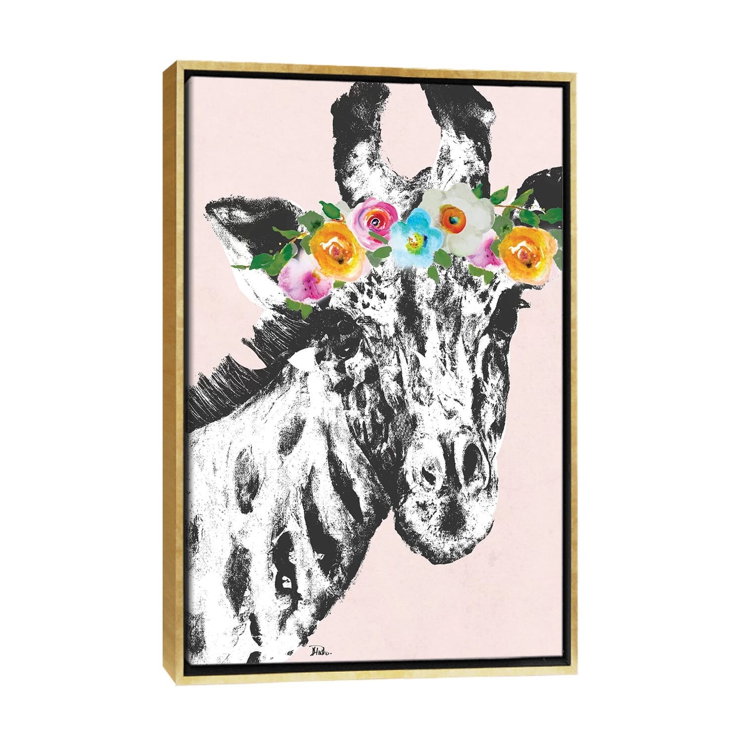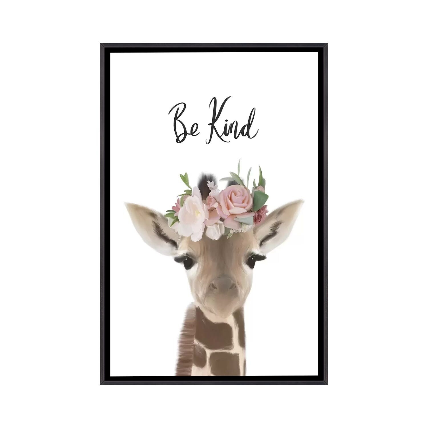 iCanvas "Floral Giraffe Be Kind" by Leah Straatsma Framed