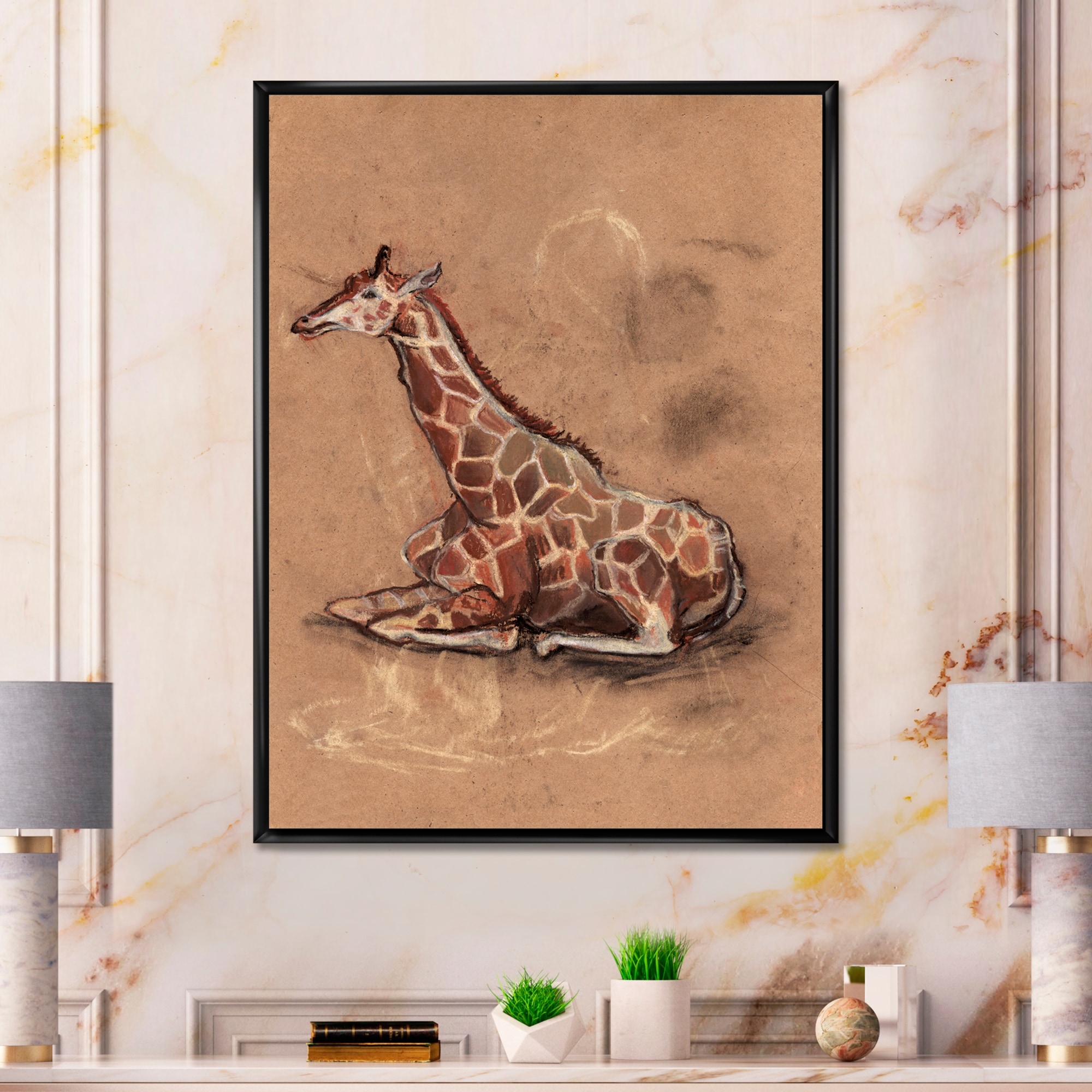 Designart "VIntage Giraffe on Brown" Traditional Framed Canvas Wall Art Print