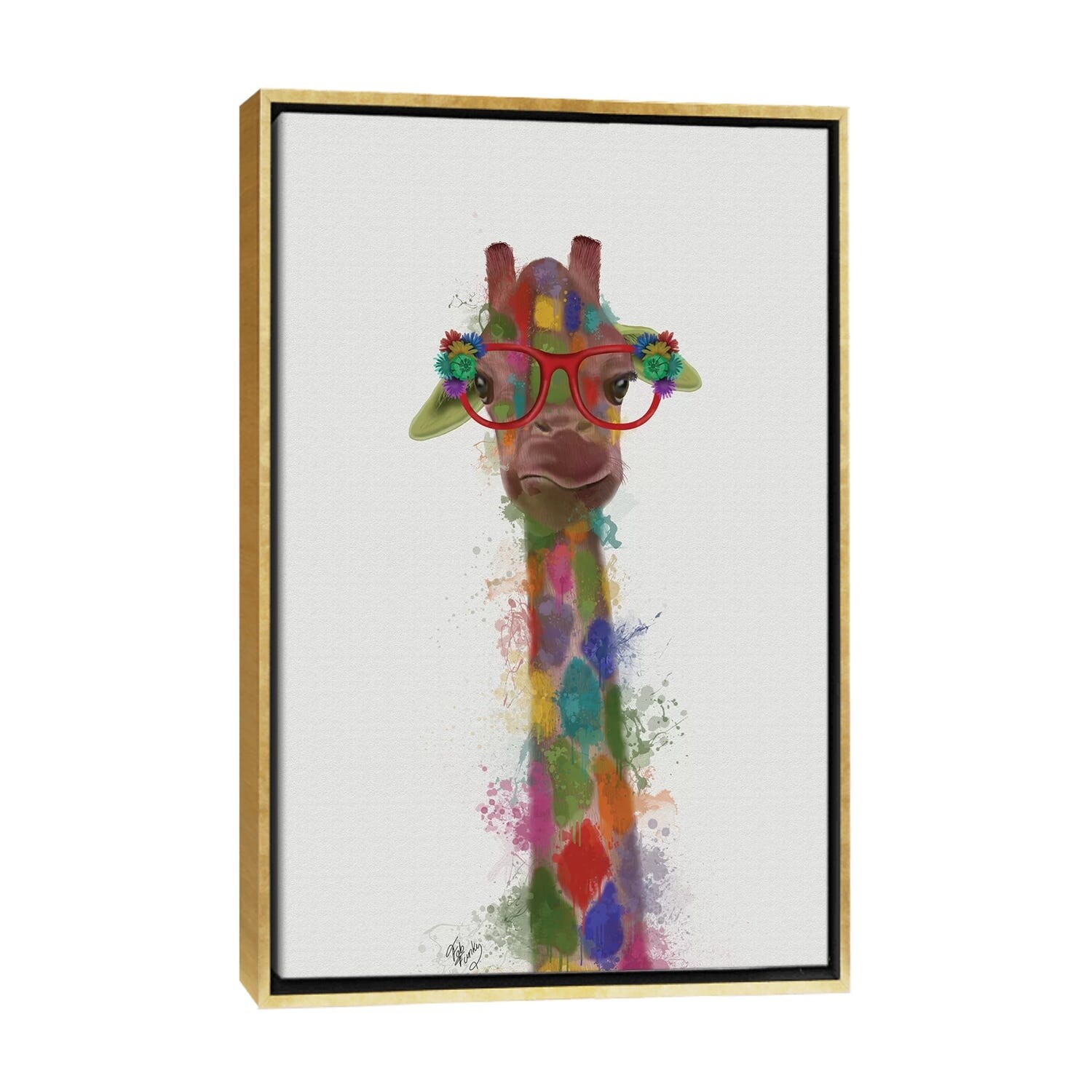iCanvas "Rainbow Splash Giraffe III" by Fab Funky Framed