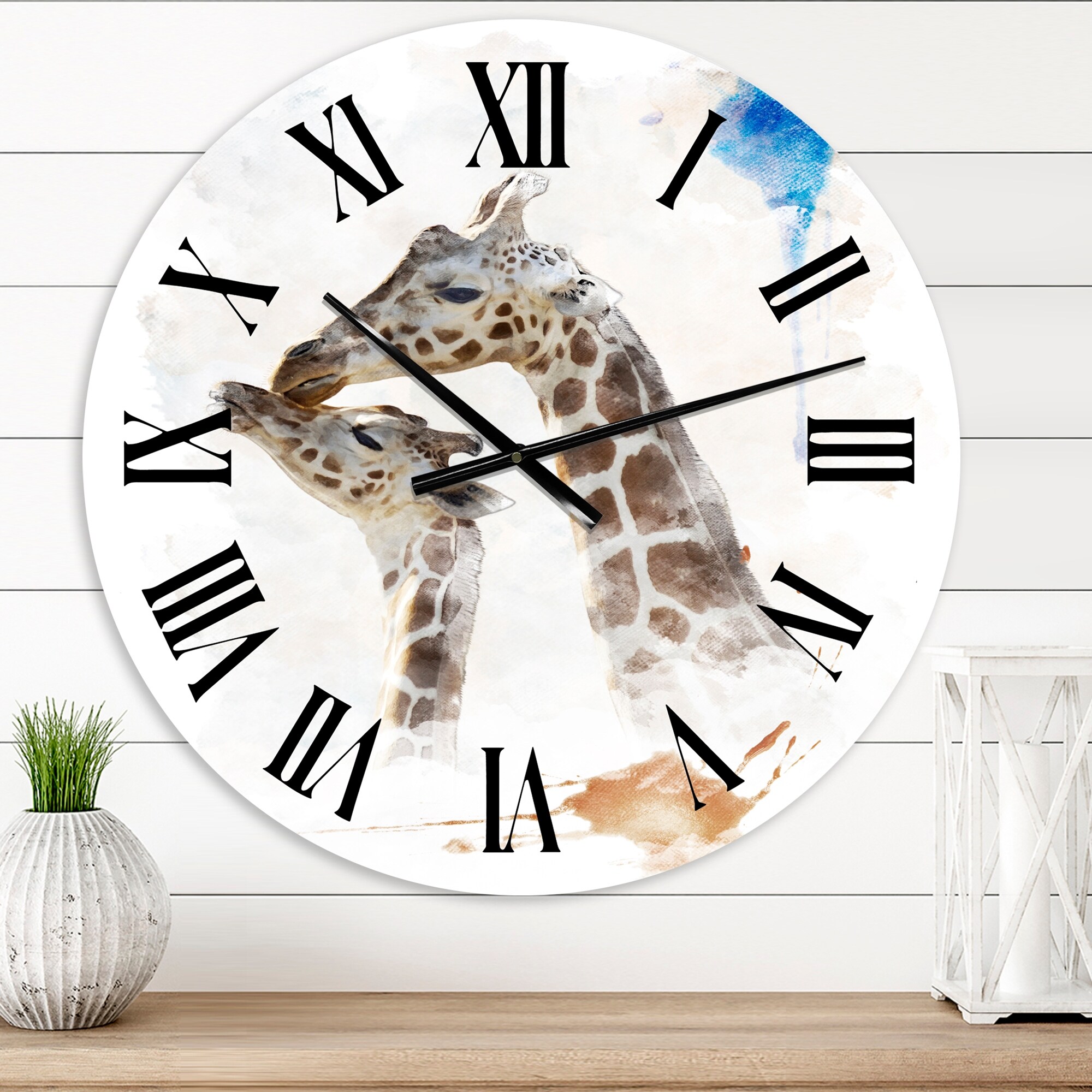 Designart 'Portrait of a Giraffe and Child' Farmhouse wall clock