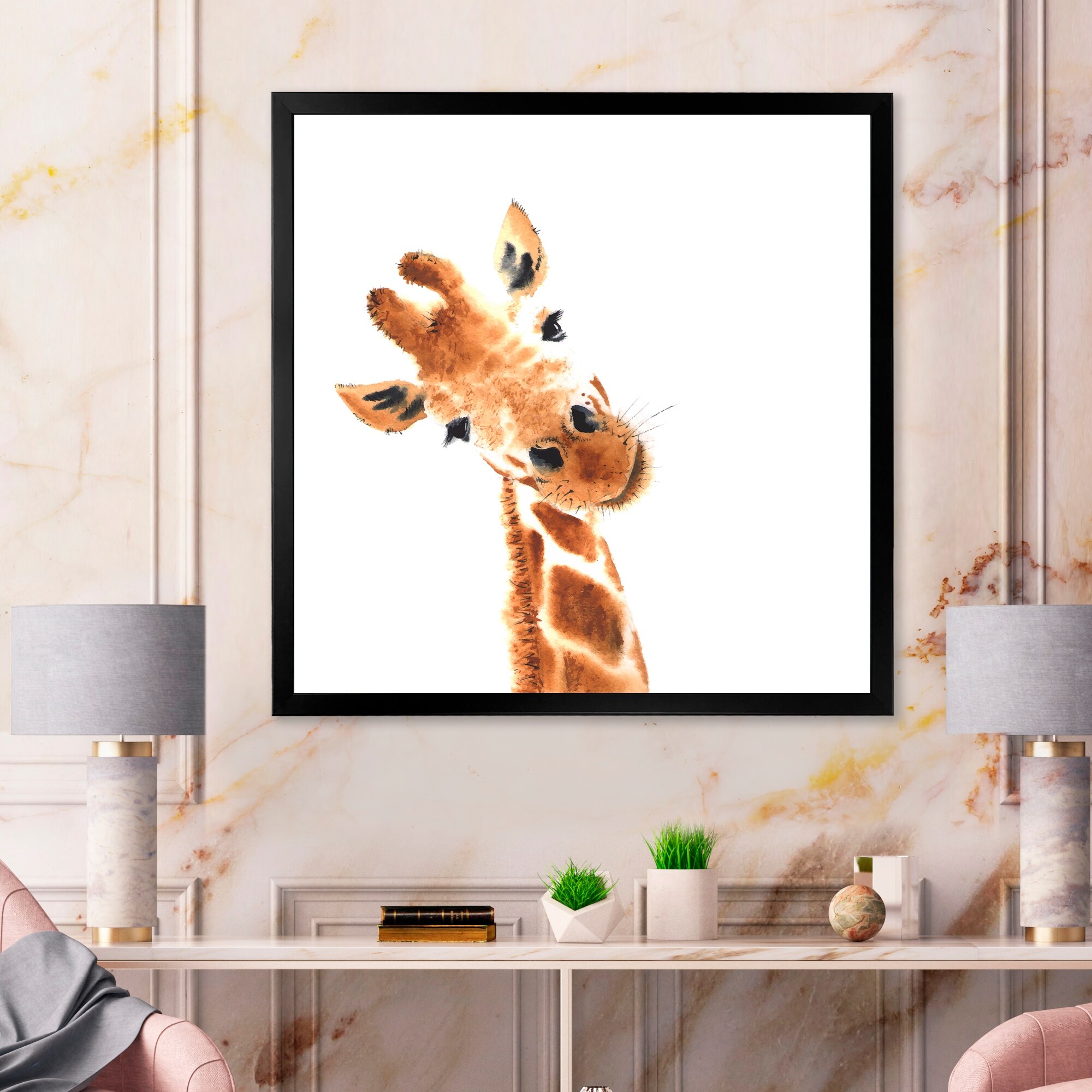 Designart "Close Up Portrait of a Giraffe IV" Farmhouse Framed Art Print