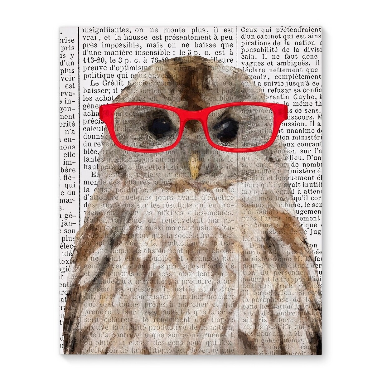 OWL with RED GLASSES Canvas Art by Kavka Designs
