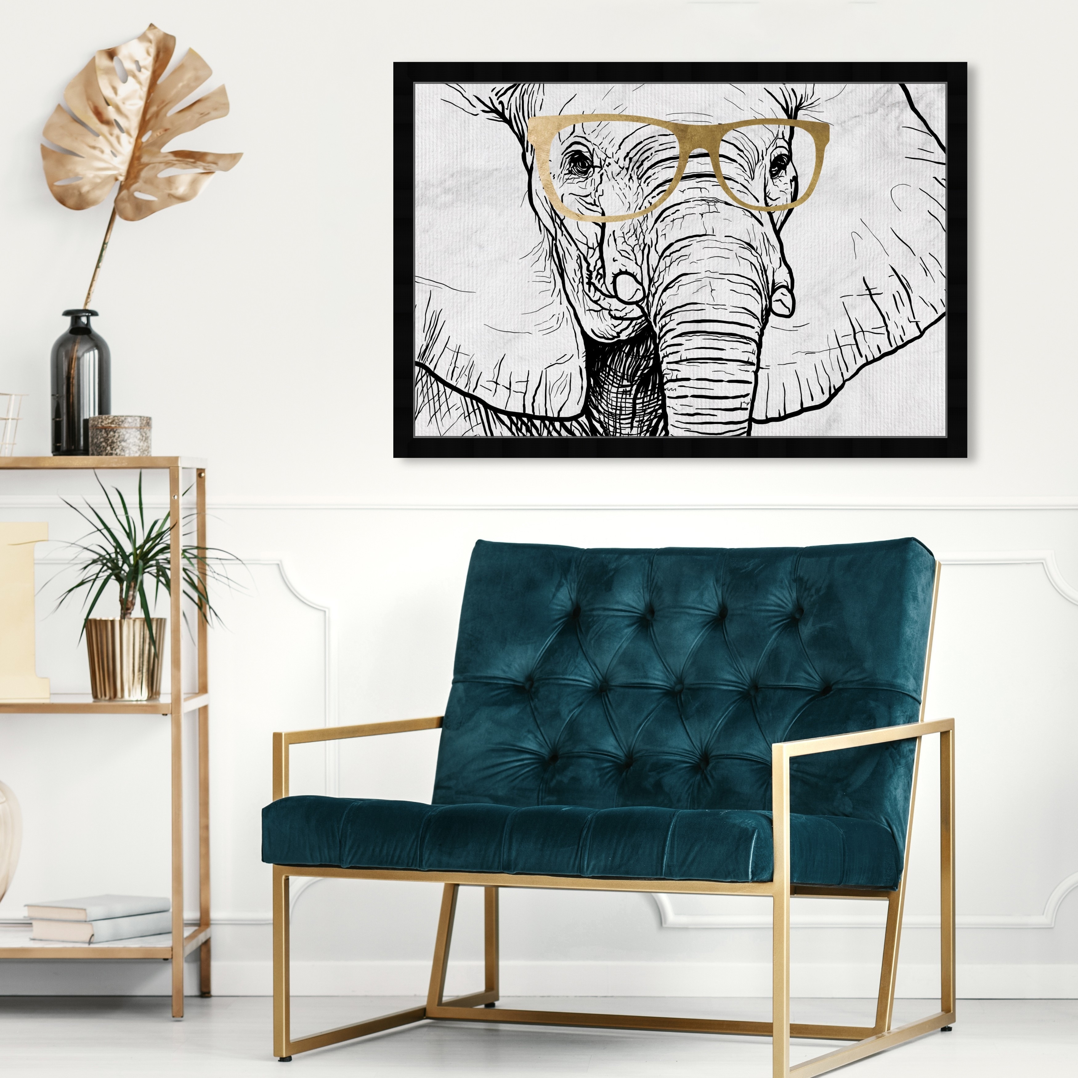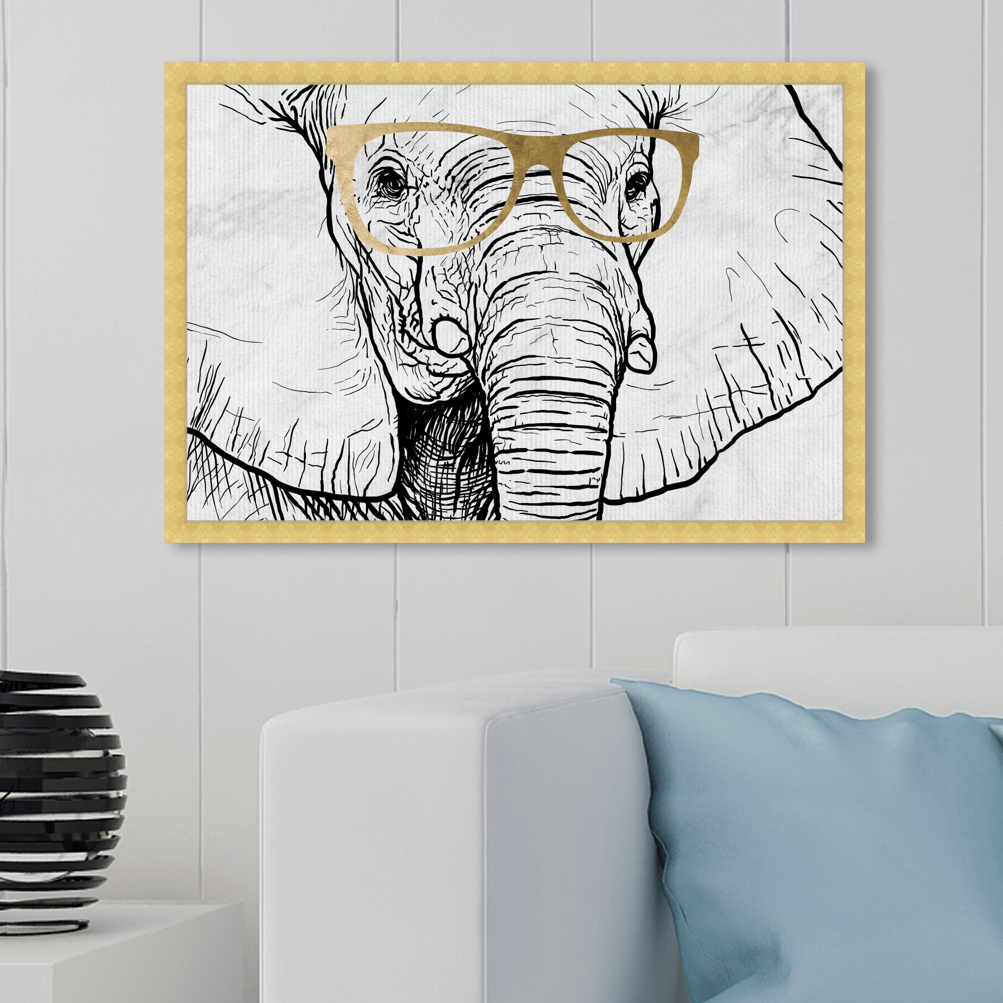 Oliver Gal 'Elephant and Gold Glasses' Animals Wall Art Framed Print Zoo and Wild Animals - White, Gold