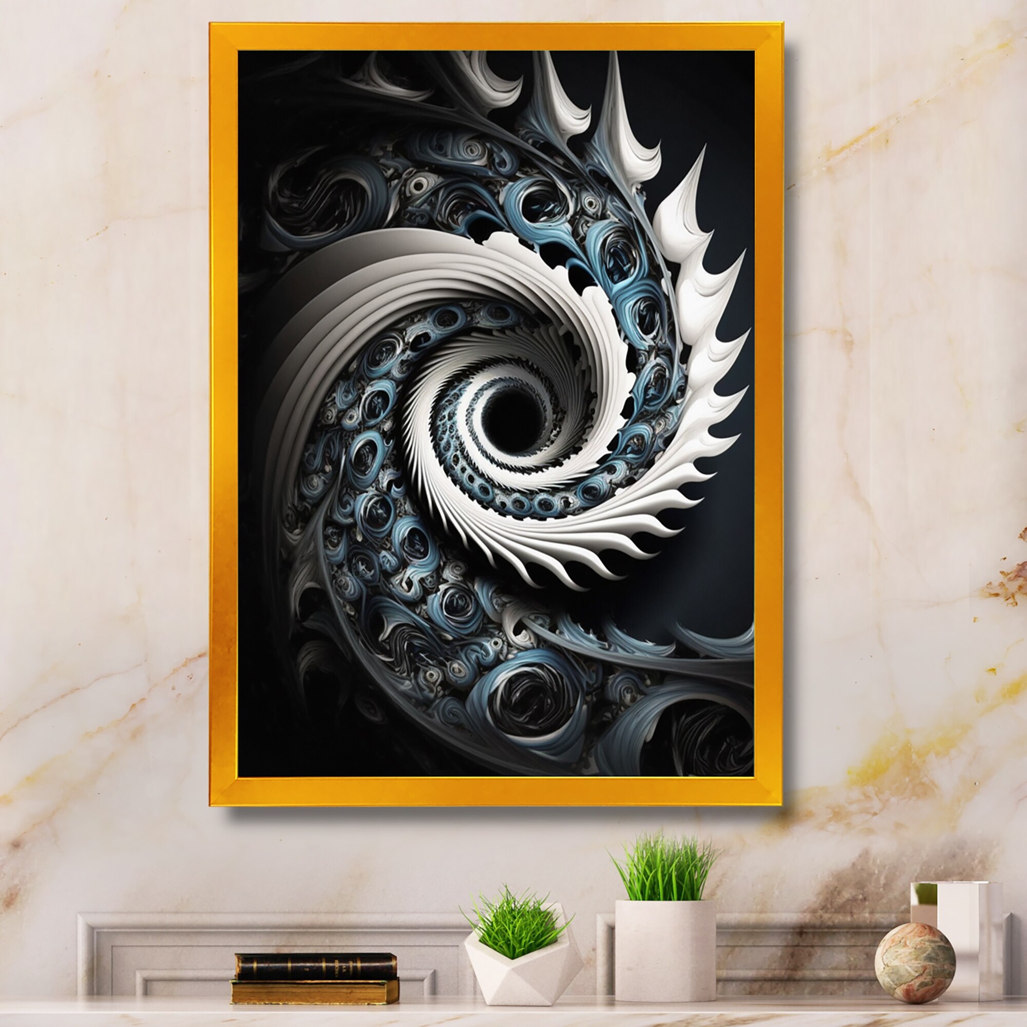 Designart "Blue And White Stained Liquid Glass I" Modern Framed Art Print