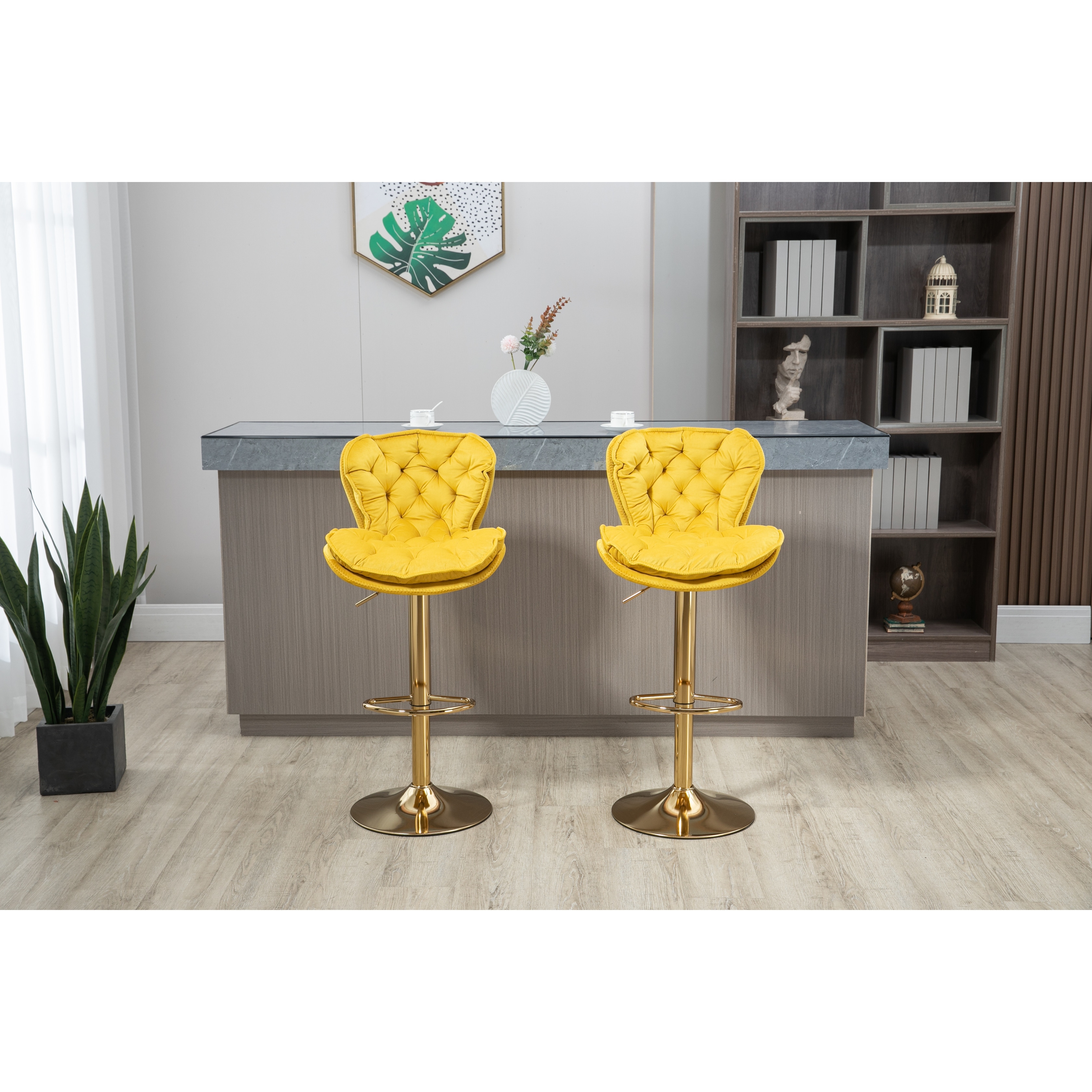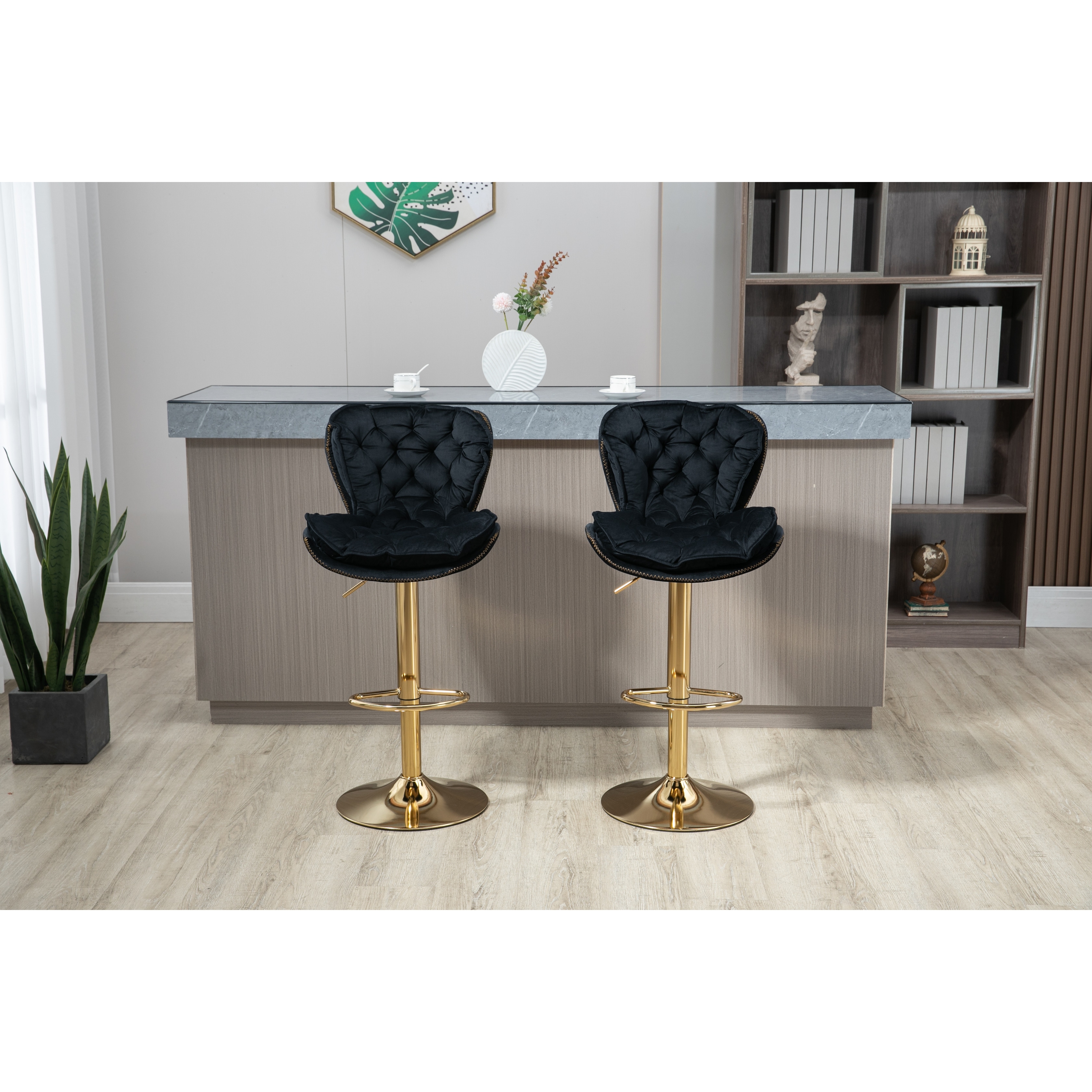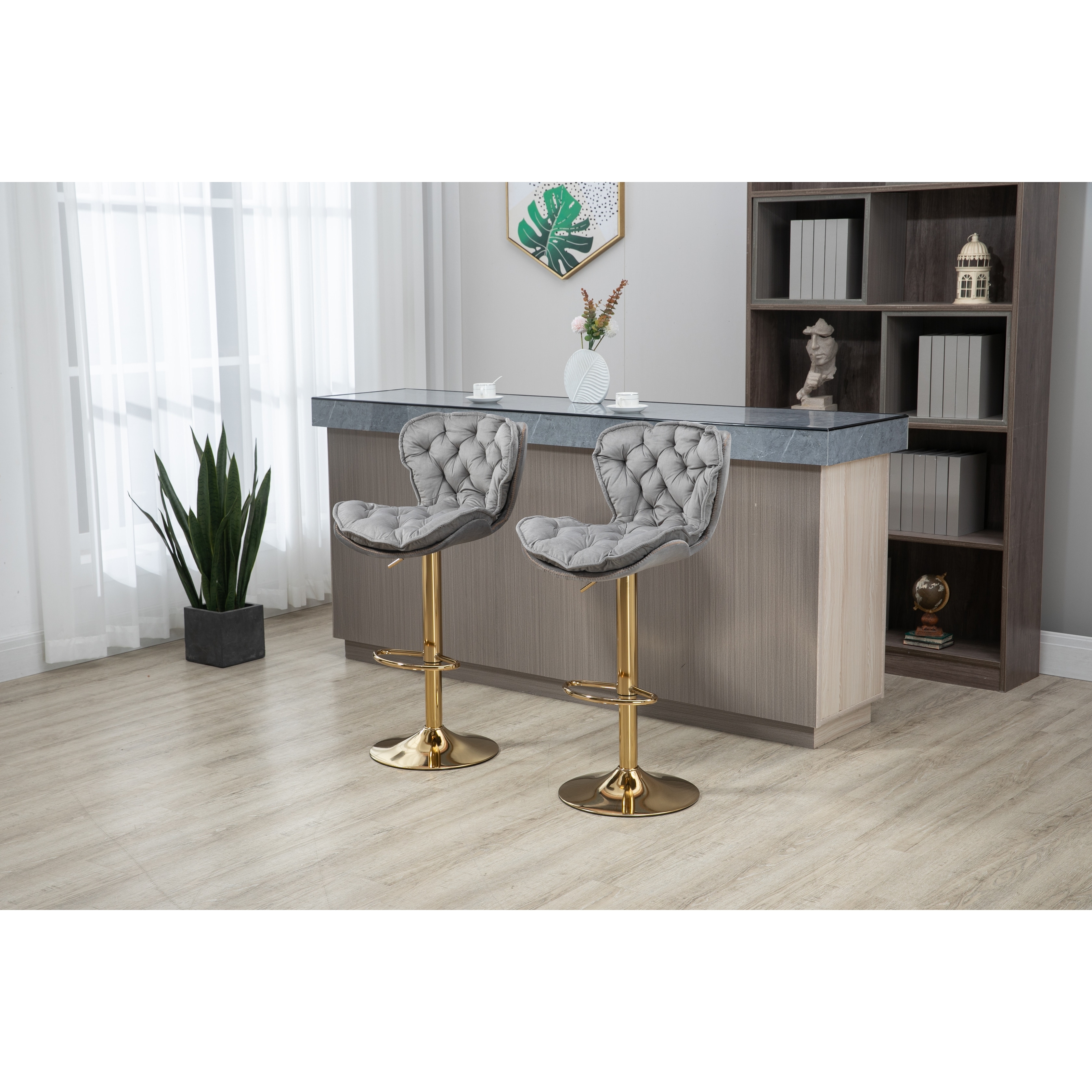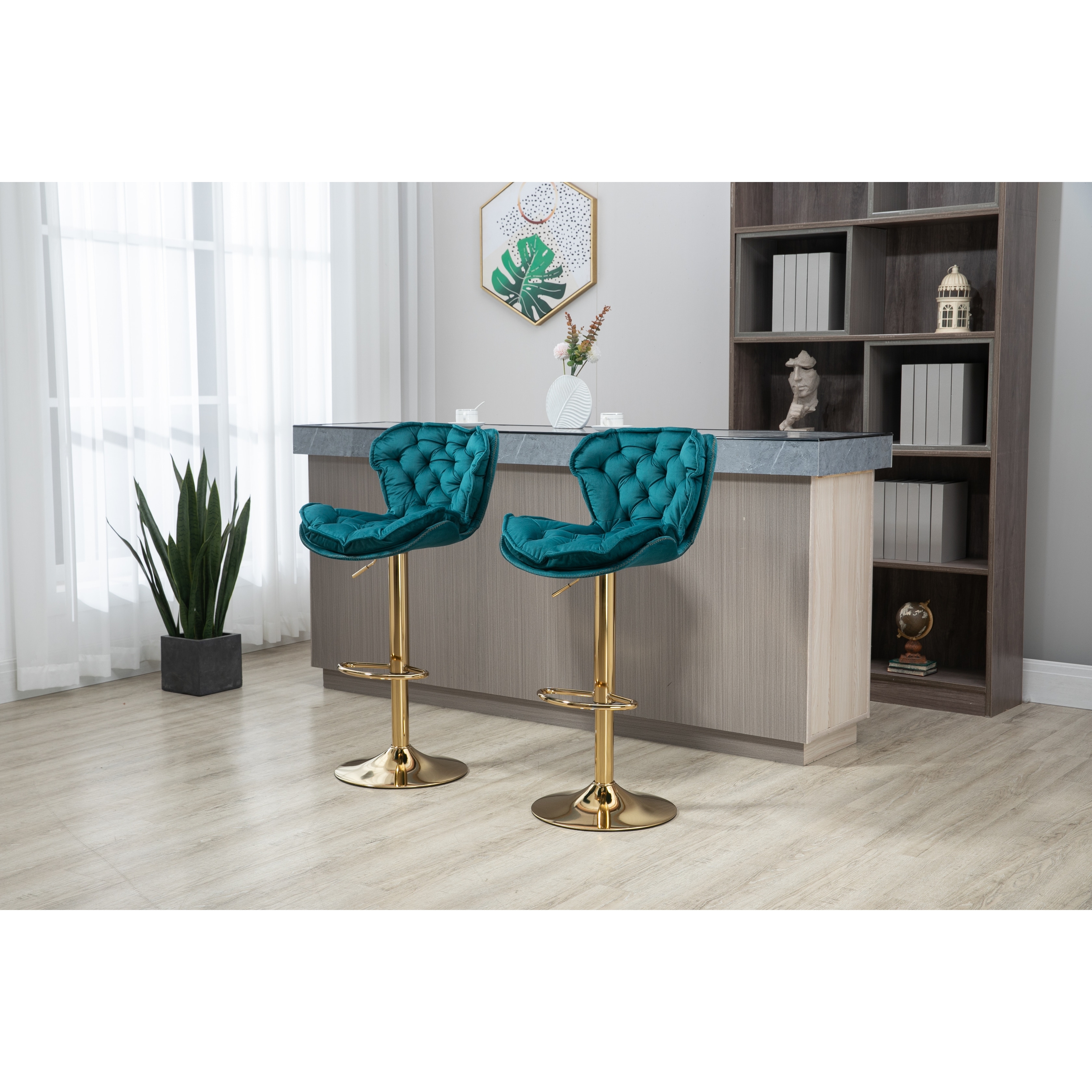 21.65" W Velvet Upholstered 2PC Barstools, Hight Chairs with Tufted Cushion, Gold Metal Base and Footrest