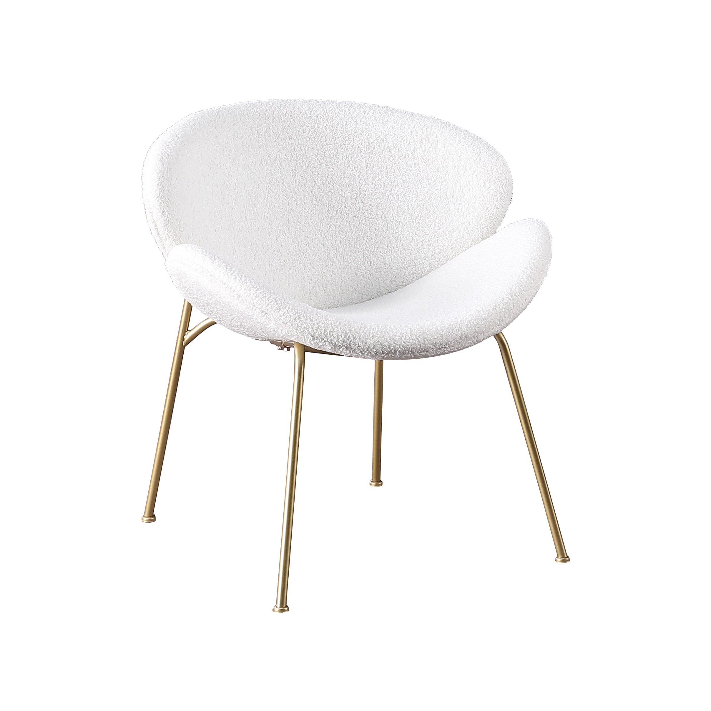 White Modern Velvet Accent Chair with Arms and Gold Metal Legs