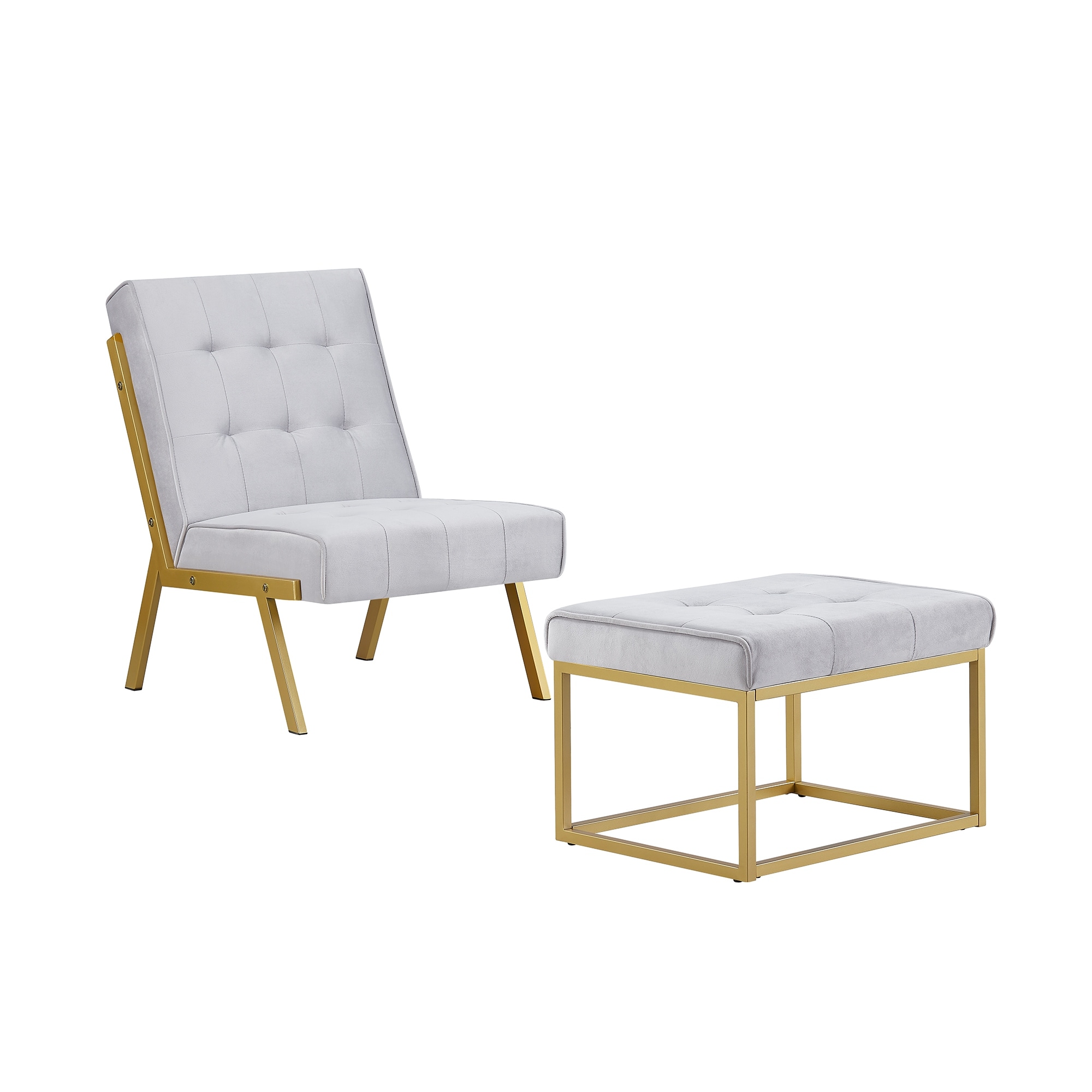 Gold Metal Frame Velvet Upholstery Chair with Ottoman