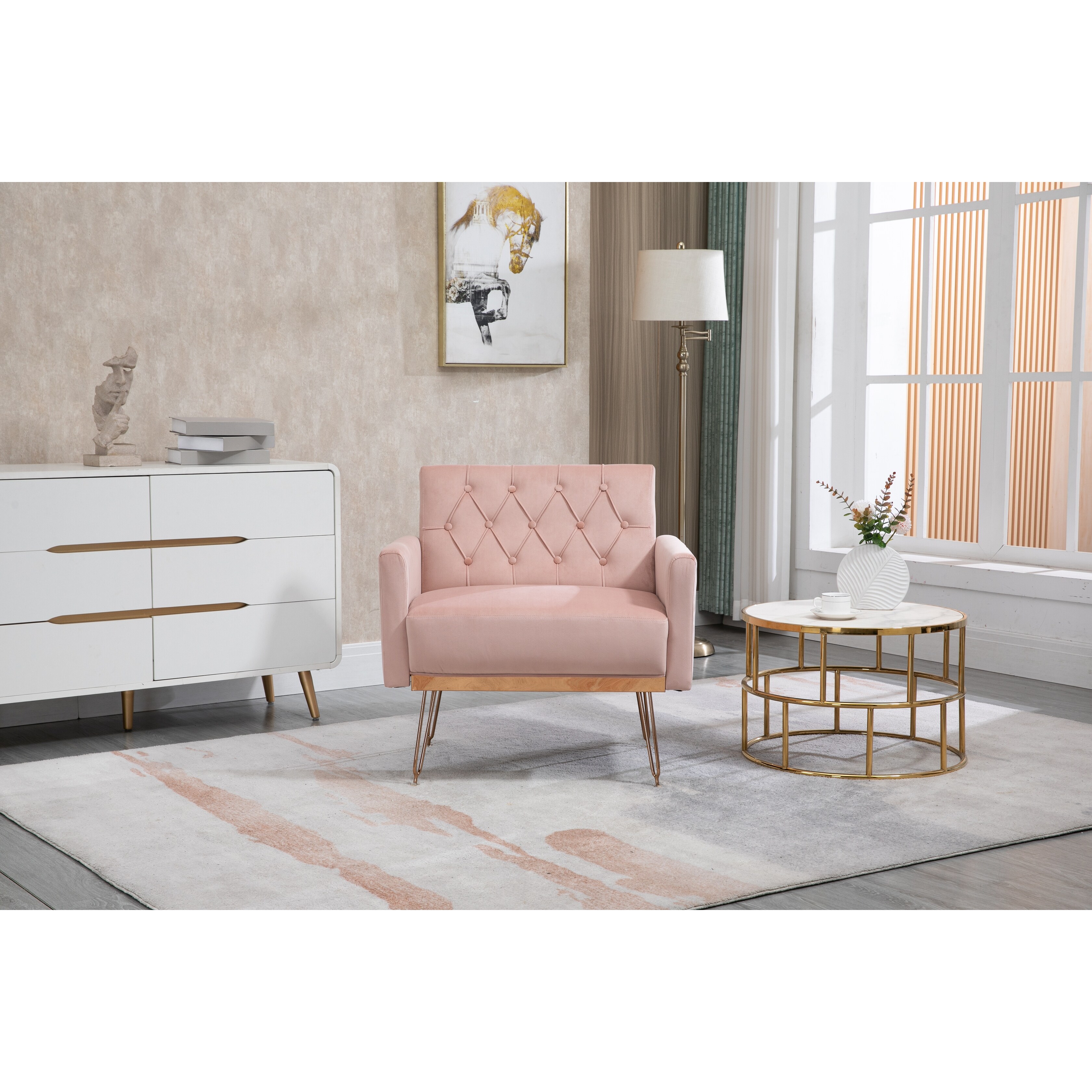 31.1" Velvet Fabric Upholstered Accent Chair, Arm Chair with Button Tufted Back, Comefortable Cushion and Rose Gold Metal Legs