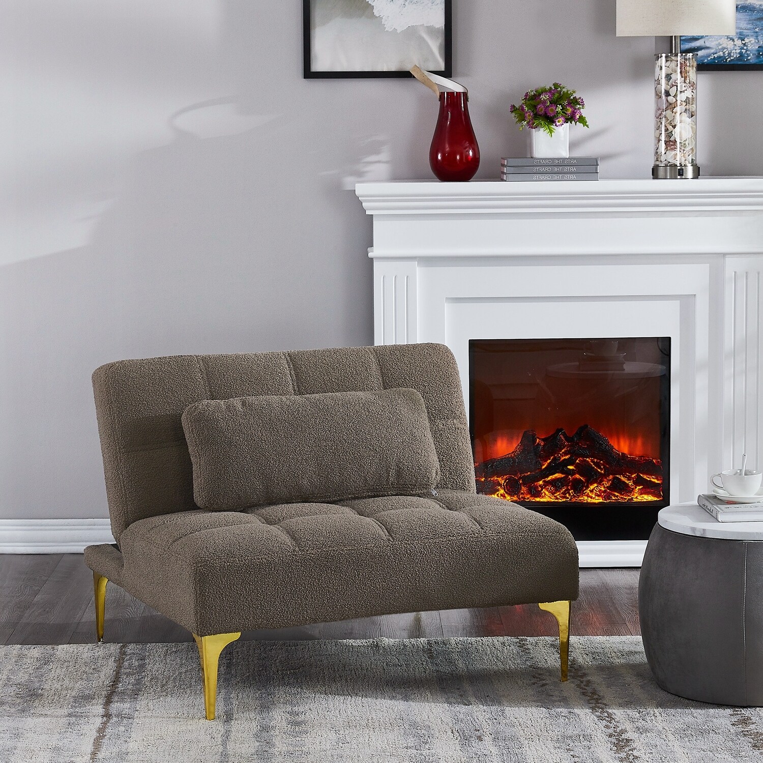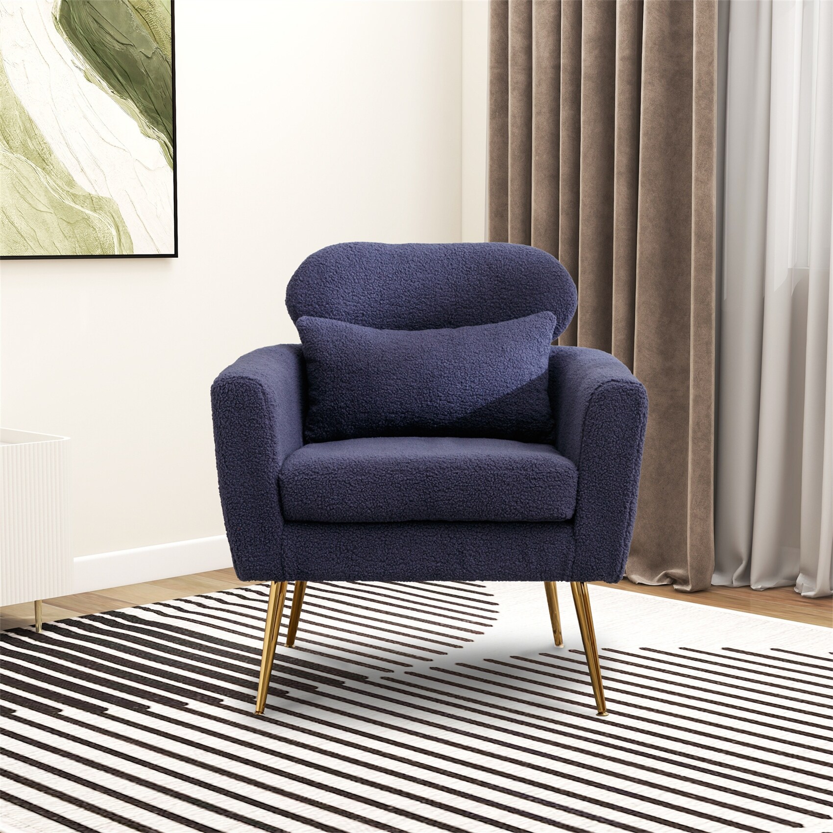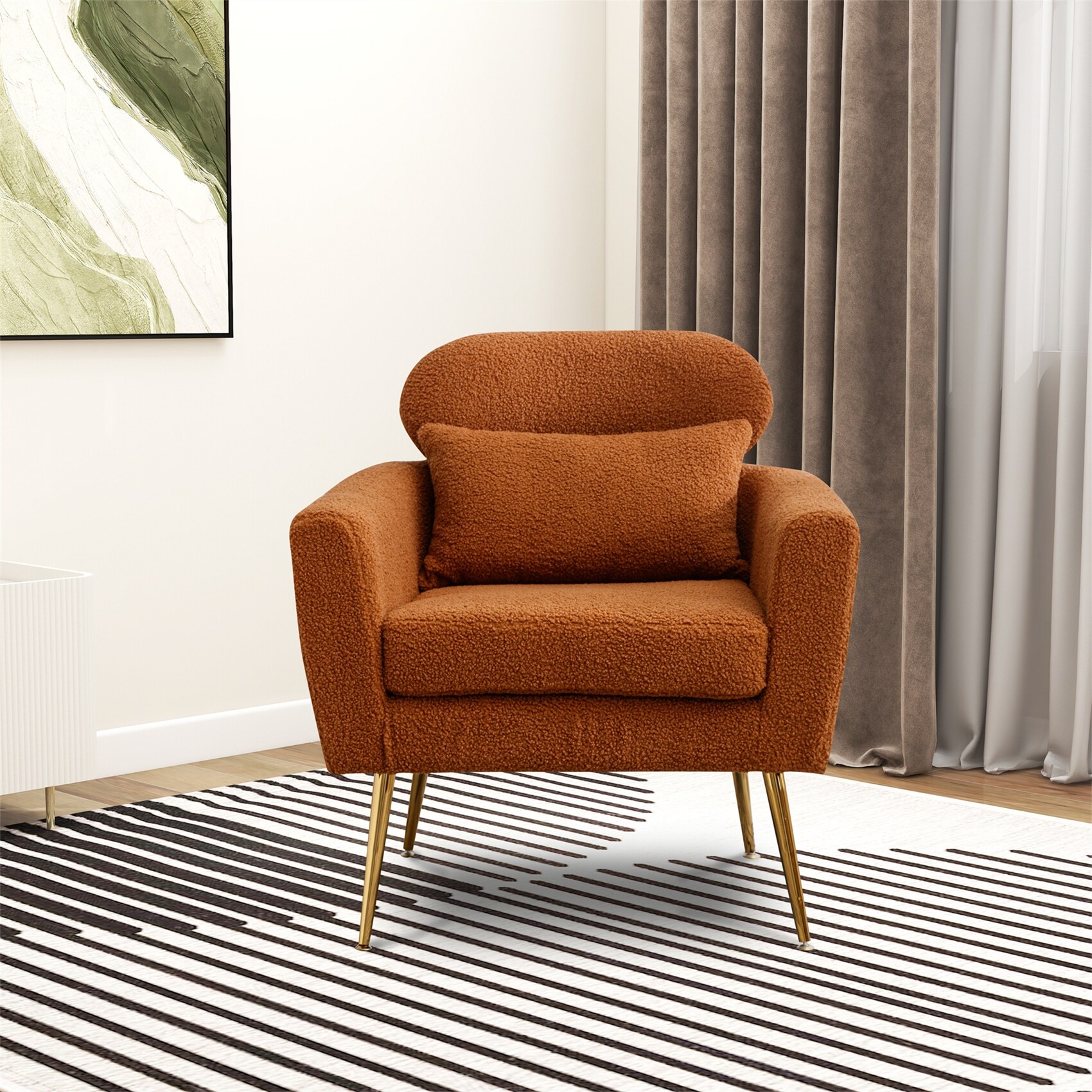 Modern Upholstered Accent Chair with Gold Metal Leg and Throw Pillow