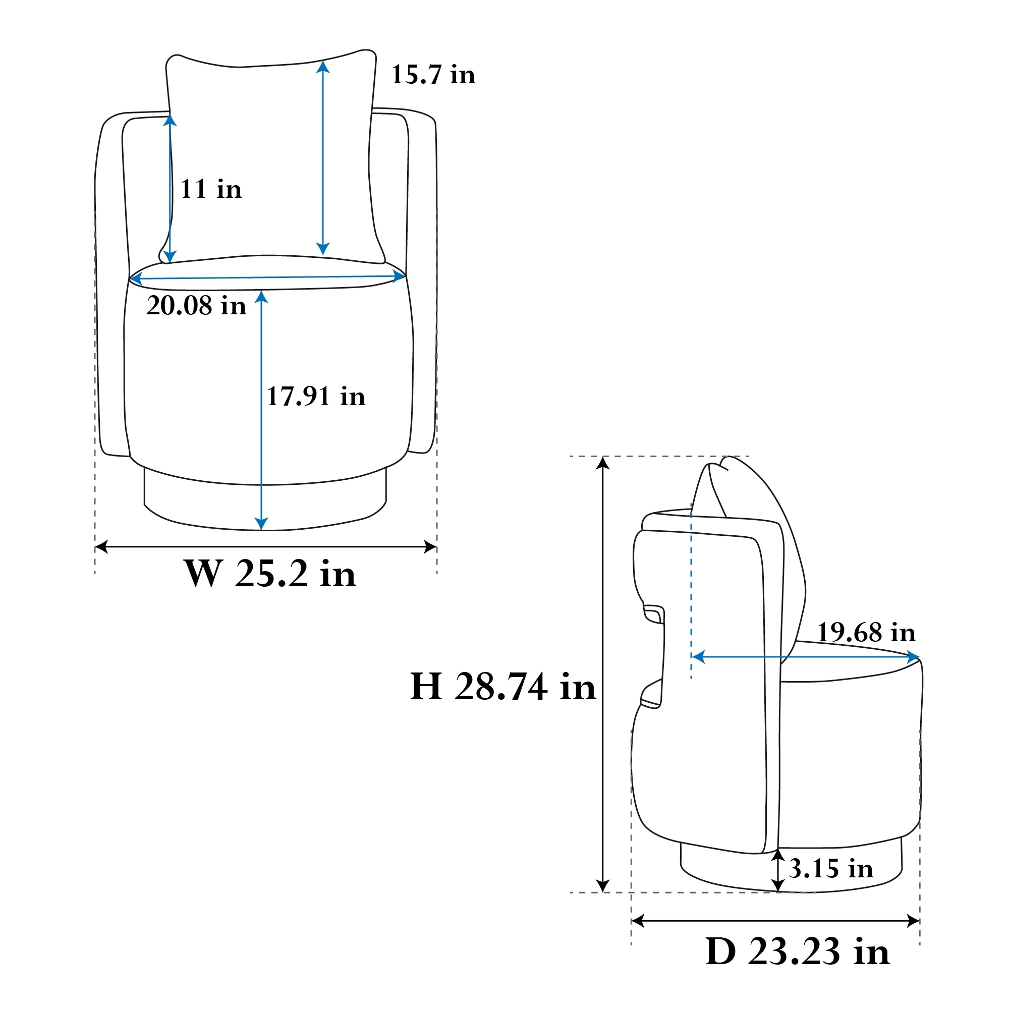 Modern 25.2'' Wide Swivel Accent Barrel Chair, Curved Tufted Back with Gold Metal Base, Upholstered Lounge Chair with Pillow