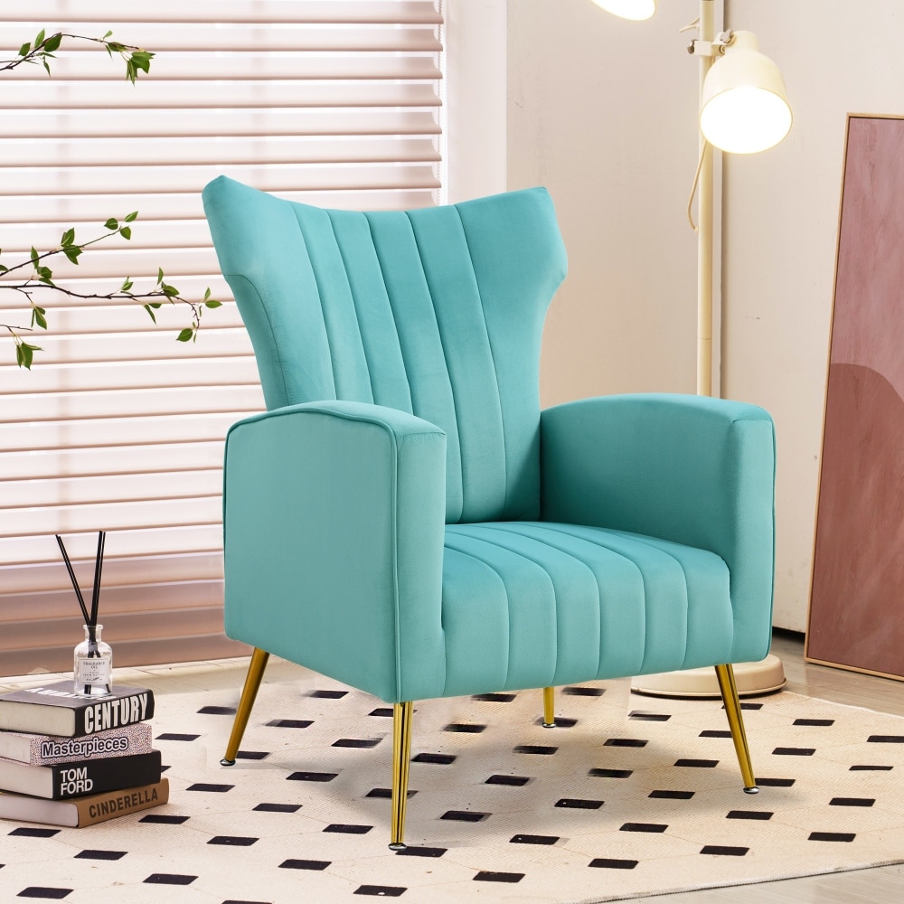 Modern Velvet Accent Chair, Wingback Reading Chair with Gold Metal Legs