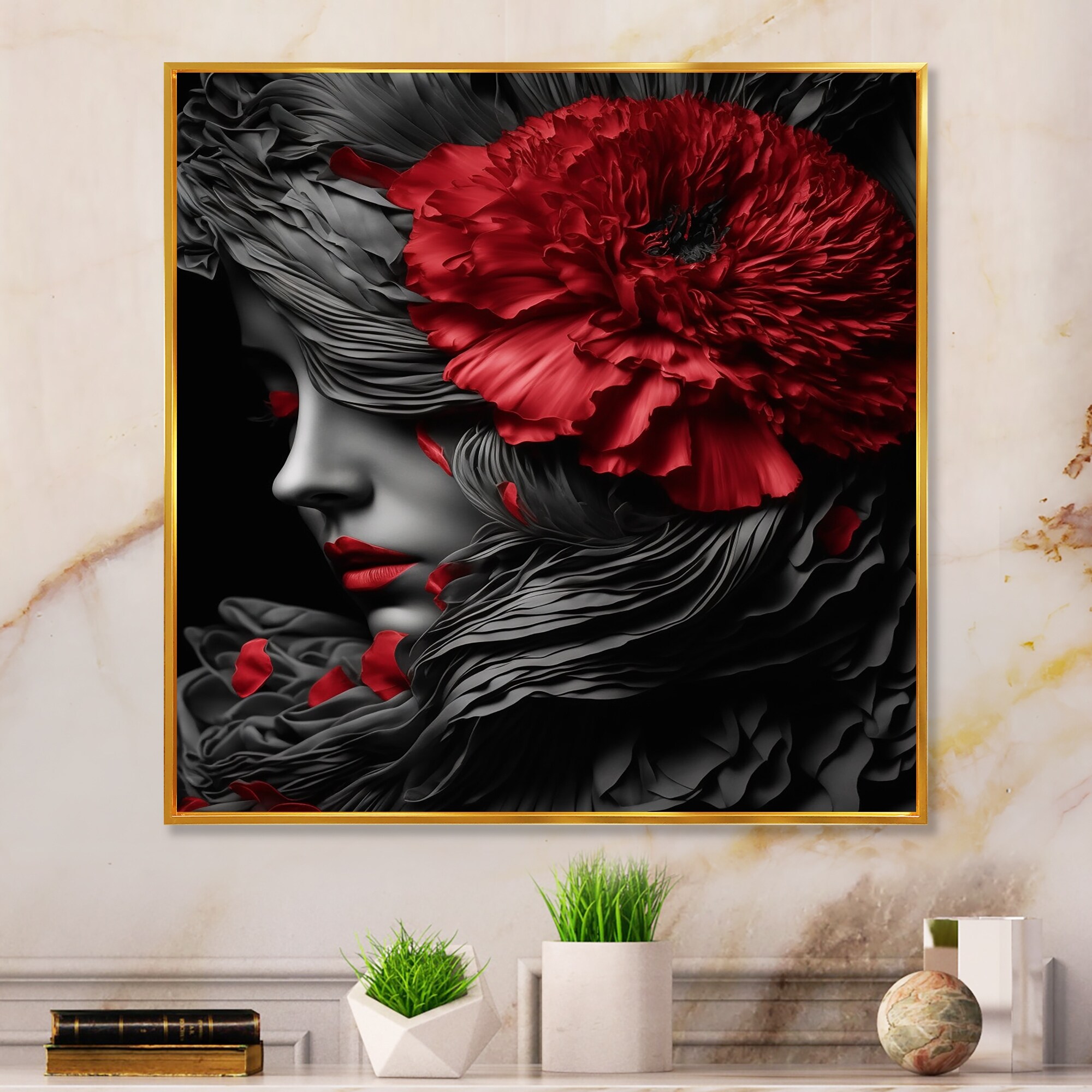 Designart "Vintage Grace I" Fashion Woman Framed Canvas Wall Art Print