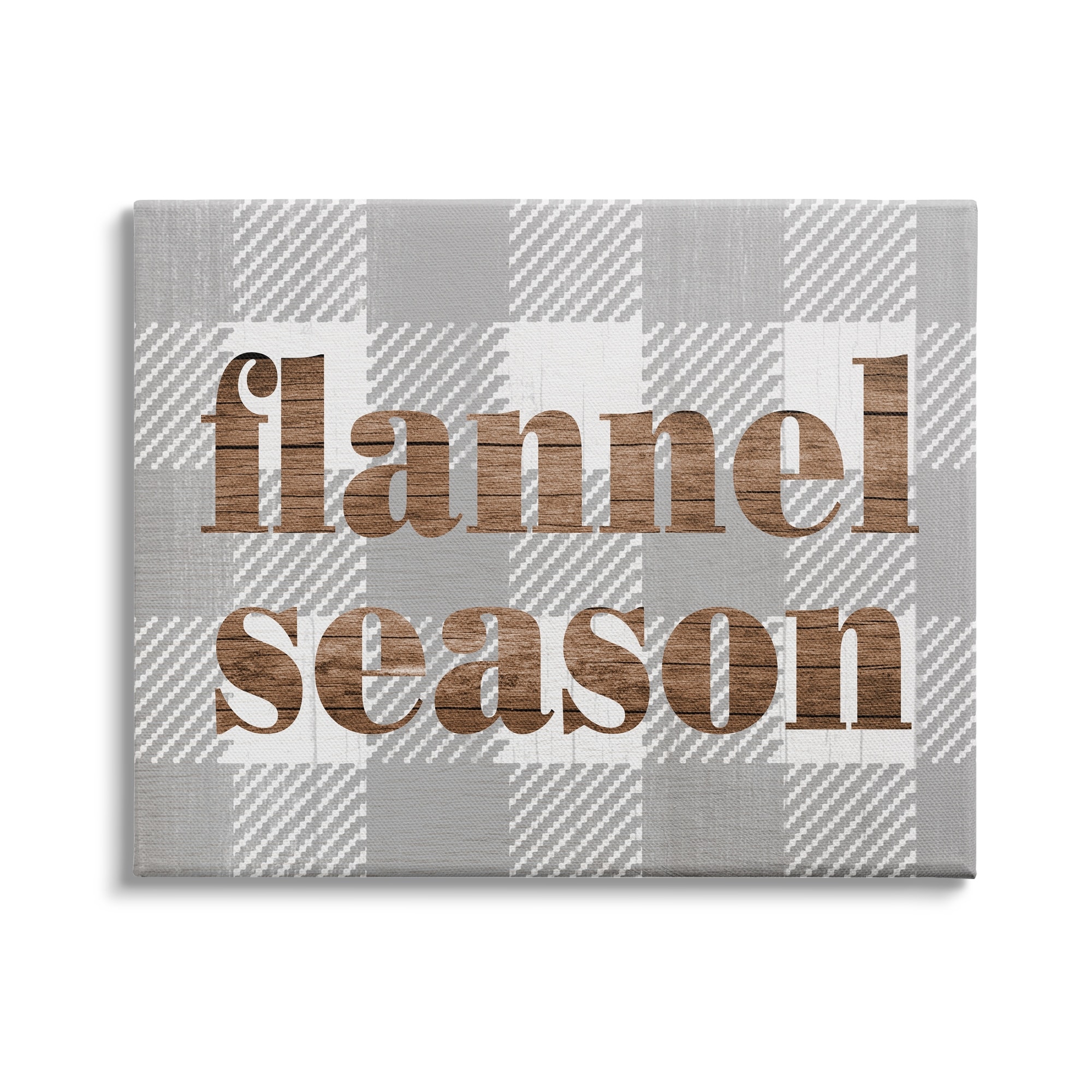 Stupell Industries Flannel Season Text Grain Pattern Grey Checkered Plaid Canvas Wall Art