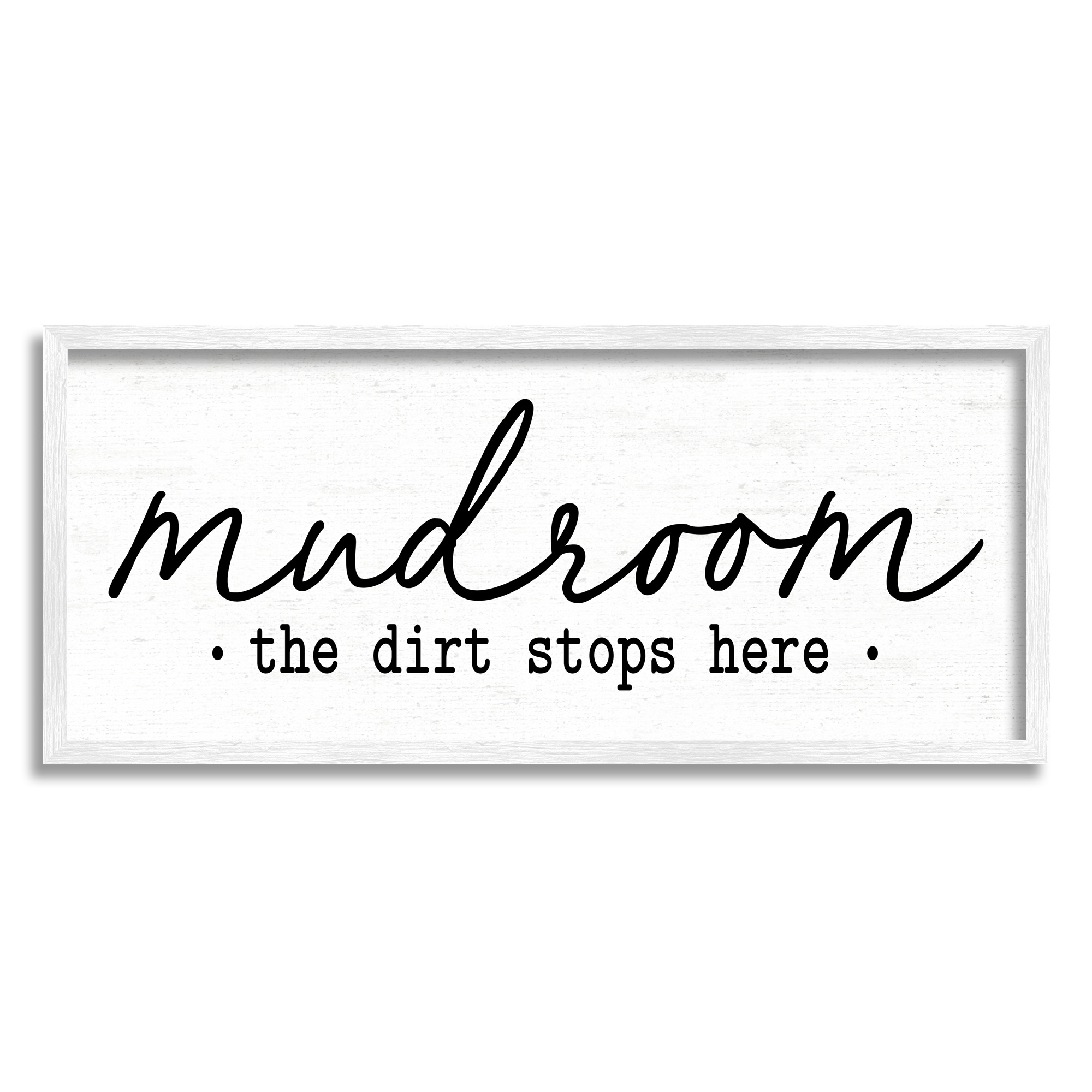 Stupell Industries Dirt Stops Here Mudroom Sign Rustic Grain Pattern Framed Wall Art, Design by Lettered and Lined - White