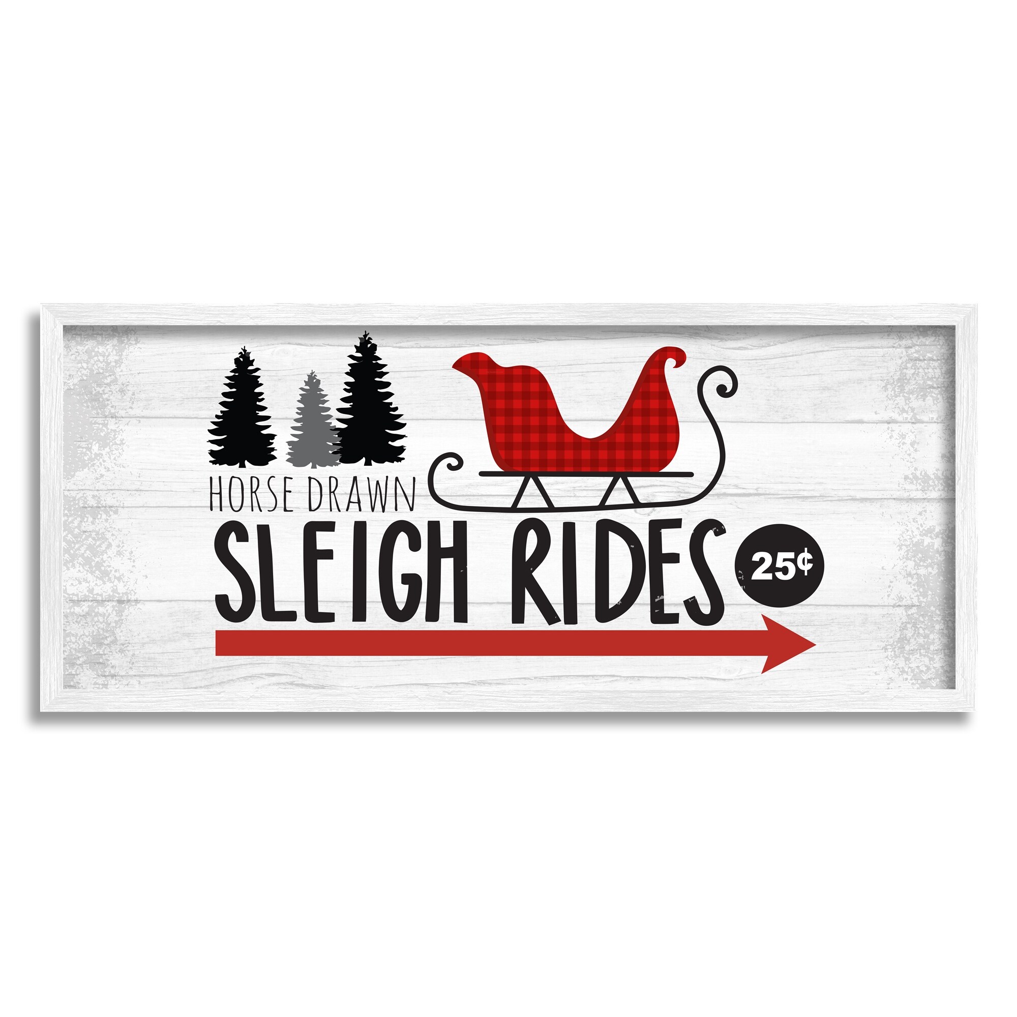 Stupell Industries Sleigh Rides Rustic Grain Pattern Holiday Signage Framed Wall Art - Red
