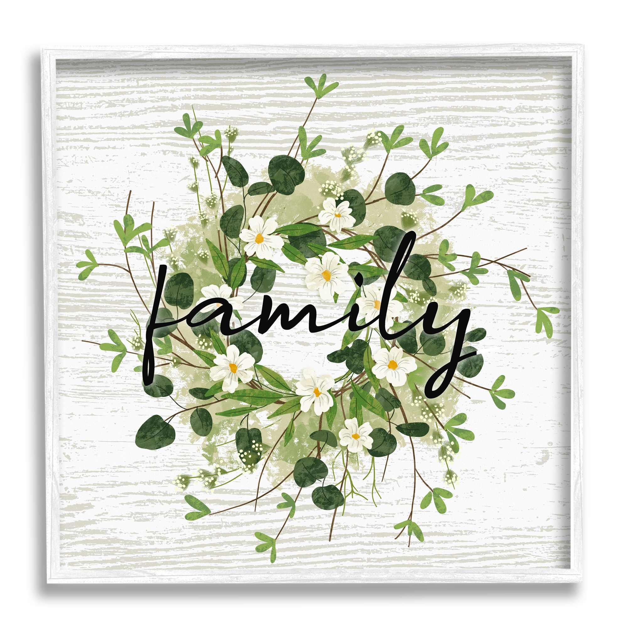Stupell Rustic Wreath Family Calligraphy Country Grain Pattern Framed Wall Art, Design by Ziwei Li - Green