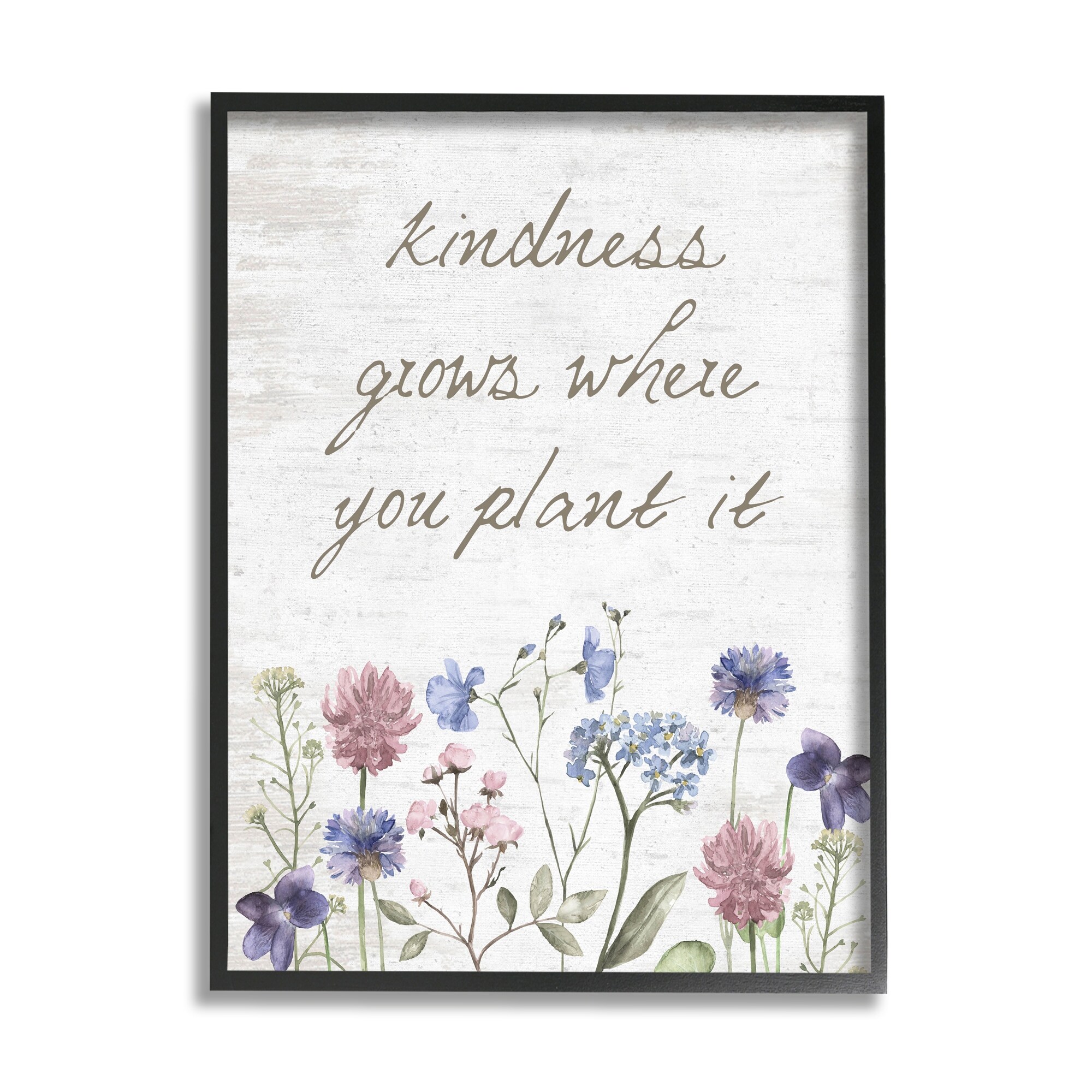 Stupell Industries Kindness Grows Blooming Florals Rustic Grain Pattern Framed Wall Art, Design by Lettered and Lined